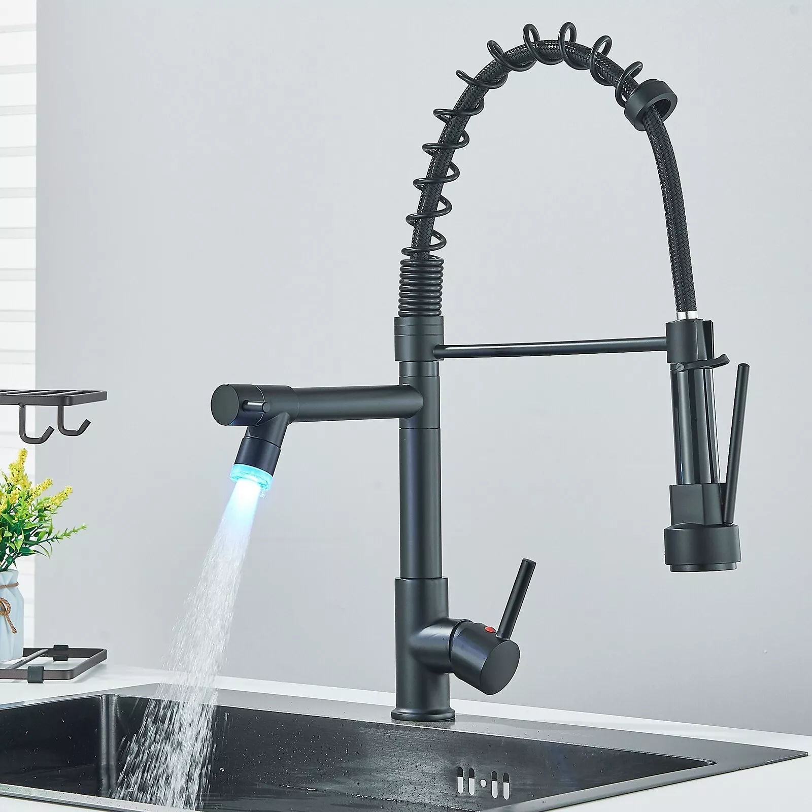 WMF-8235GNZMLP-BN – Hybrid Metal Deck Kitchen Sink Faucet, 360 Degree Swivel, High Spout, Double Handle with Side Spray