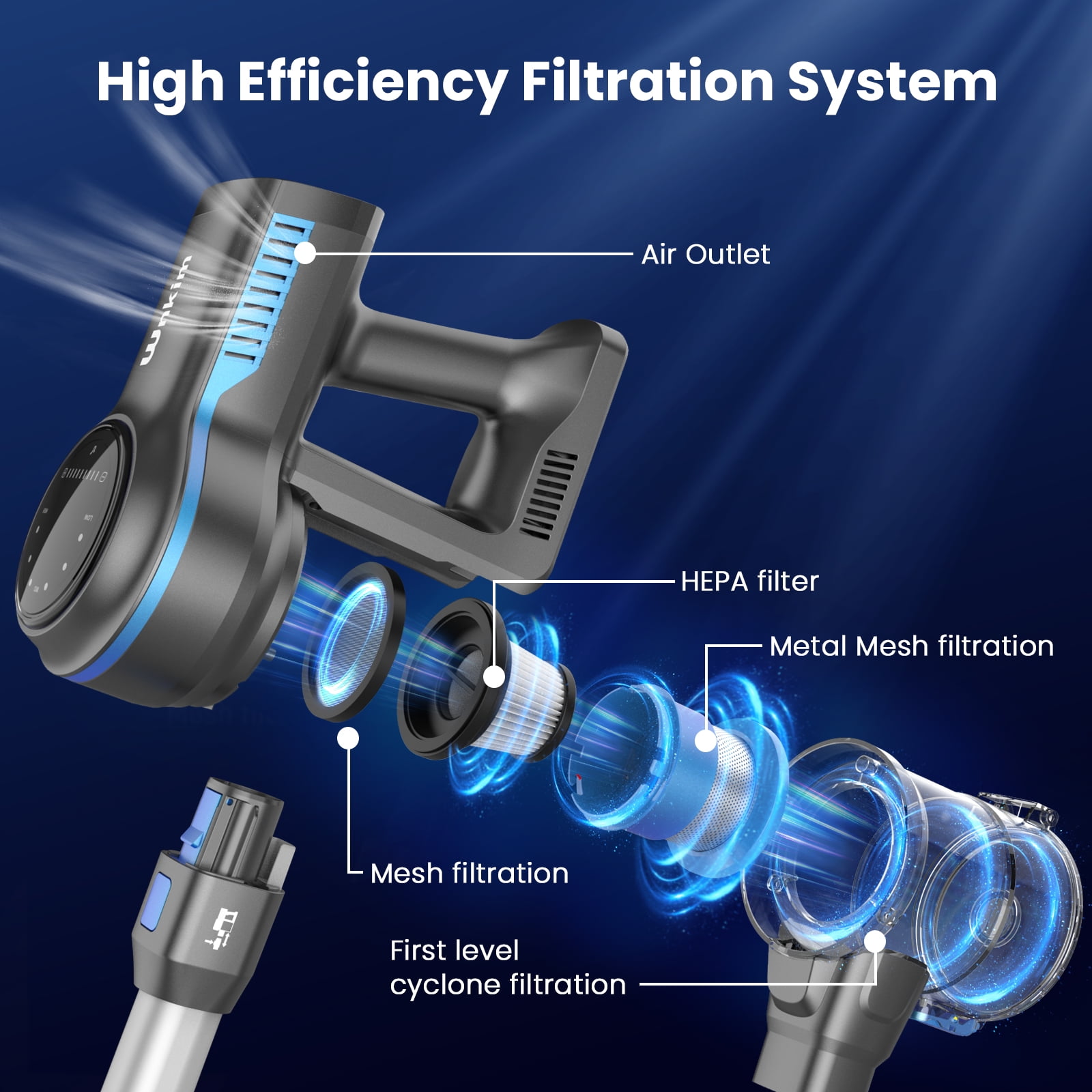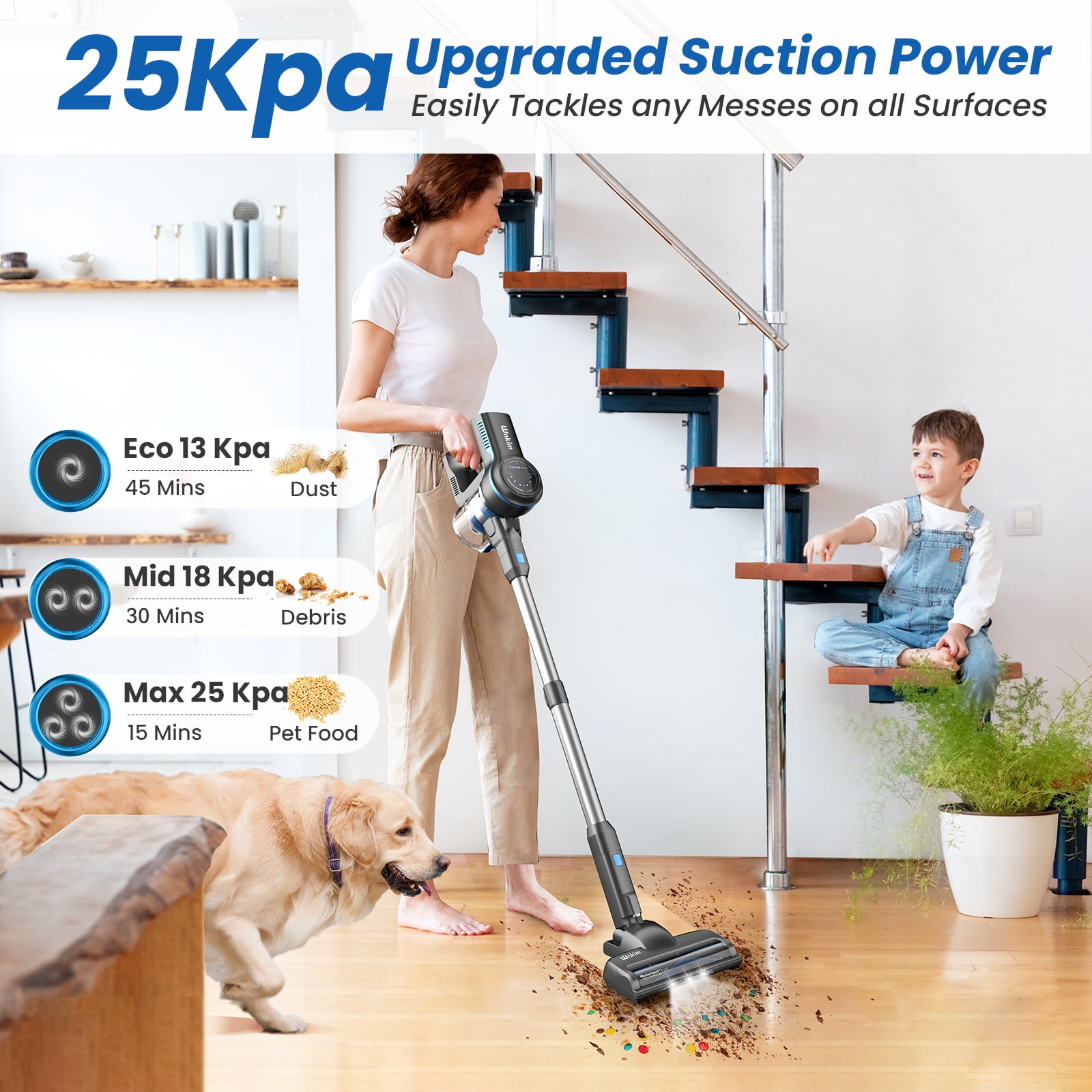 Wnkim Cordless Stick Vacuum Cleaner, 25Kpa, HEPA Wet/Dry Vacuum Cleaner for Hardwood Pet Hair Carpet