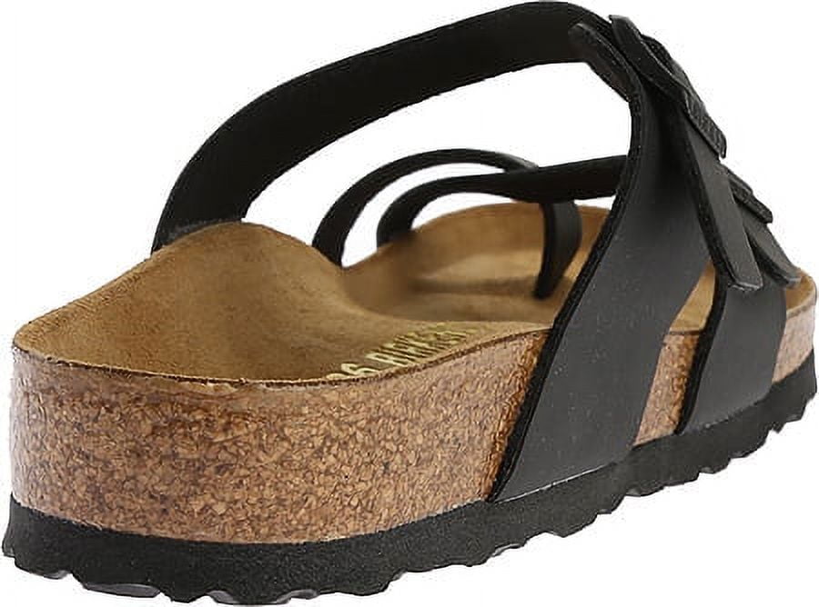 The Birkenstock Mayari Birko Flor is an essential toe loop sandal with classic Birkenstock features. Crafted in synthetic Birko-Flor, these footbed sandals’ leather-like straps have adjustable buckle closures and a soft backing. Suede-lined contoured cork footbed is ergonomically designed with pronounced arch support, a deep heel cup, and a roomy toe box backed by an EVA sole for shock absorption. With such advanced comfort features, you won’t have to sacrifice style for comfort in these Birkenstock sandals.