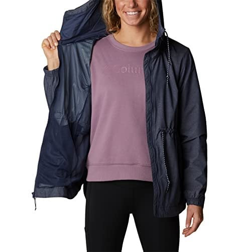 WATERPROOF RAINCOAT: Youll love our Columbia Lillian Ridge Shell featuring a nylon polyester blend fabric with a mesh lining that offers comfortable wet-weather protection EVERYDAY JACKET: When the weather is on the edge a bit cool, a bit windy, a bit wet, this is a universal jacket that will get you through TAILORED STYLE: With a shirttail hem and a comfortable cut, you can tailor the look and fit with the adjustable cinch at the waist, reducing drafts while adding a touch of style HANDY FEATURES: This women’s rain coat features a convenient drawcord adjustable hood, drawcord adjustable waist, partial elastic cuff, drop tail, shirttail hem, snaps at side seams, and hand pockets with snap closures BUILT TO LAST: Columbias attention to detail is what sets our apparel apart. Specifying only the highest quality materials, expert stitching and craftsmanship. This is a long-lasting jacket you will enjoy for seasons to come.