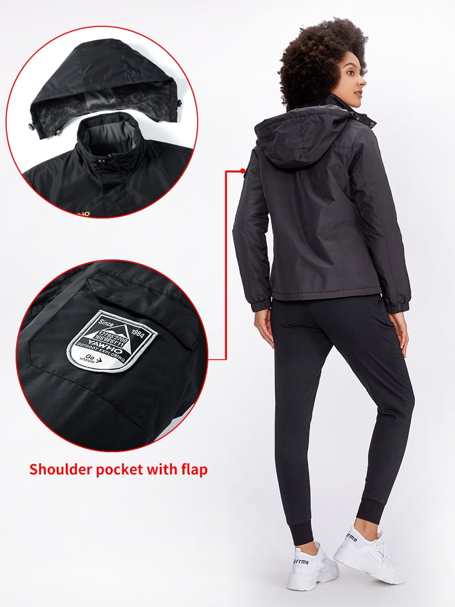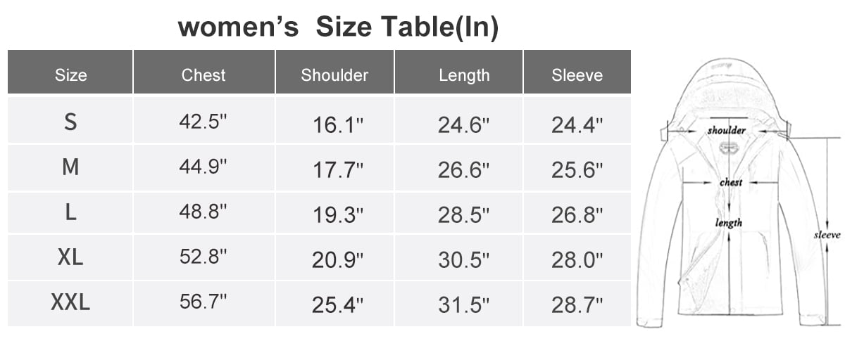 Size notes: Jacket offers a standard fit. Please choose by US size Warm Fabric: Professional water repellent coated, Fleece lining and durable fabric with polyester fibre which provides the best heat retention. Relaxed-fit style with quick-dry material. Waterproof: Professional water repellent jacket.The outer fabric is waterproof and quick dry. All the zipper design can effectively resisting the water or rain, also can fights for bad weather, always keep your body dry and comfortable. Windproof: 1, Adjustable hook & loop fastener cuffs and stretchable glove with thumb hole help seal in warmth. 2, Inside windproof snap skirt, internal drawcord hem, detachable and adjustable storm hood help to keep wind out. 3, Wear resisting soft shell is highly wind resistant. Multi Pockets:3 chest pockets and 1 Shoulder pocket with flap , 1 chest waterproof zippered pocket, great for cellphone or money, 2 big internal pockets , suitable for wallet, keys, passpor etc. Application: This windbreaker ski jacket is an ideal outfit for downhill skiing, snowboarding, snowsports, hiking, rock climbing and other winter outdoor sports.