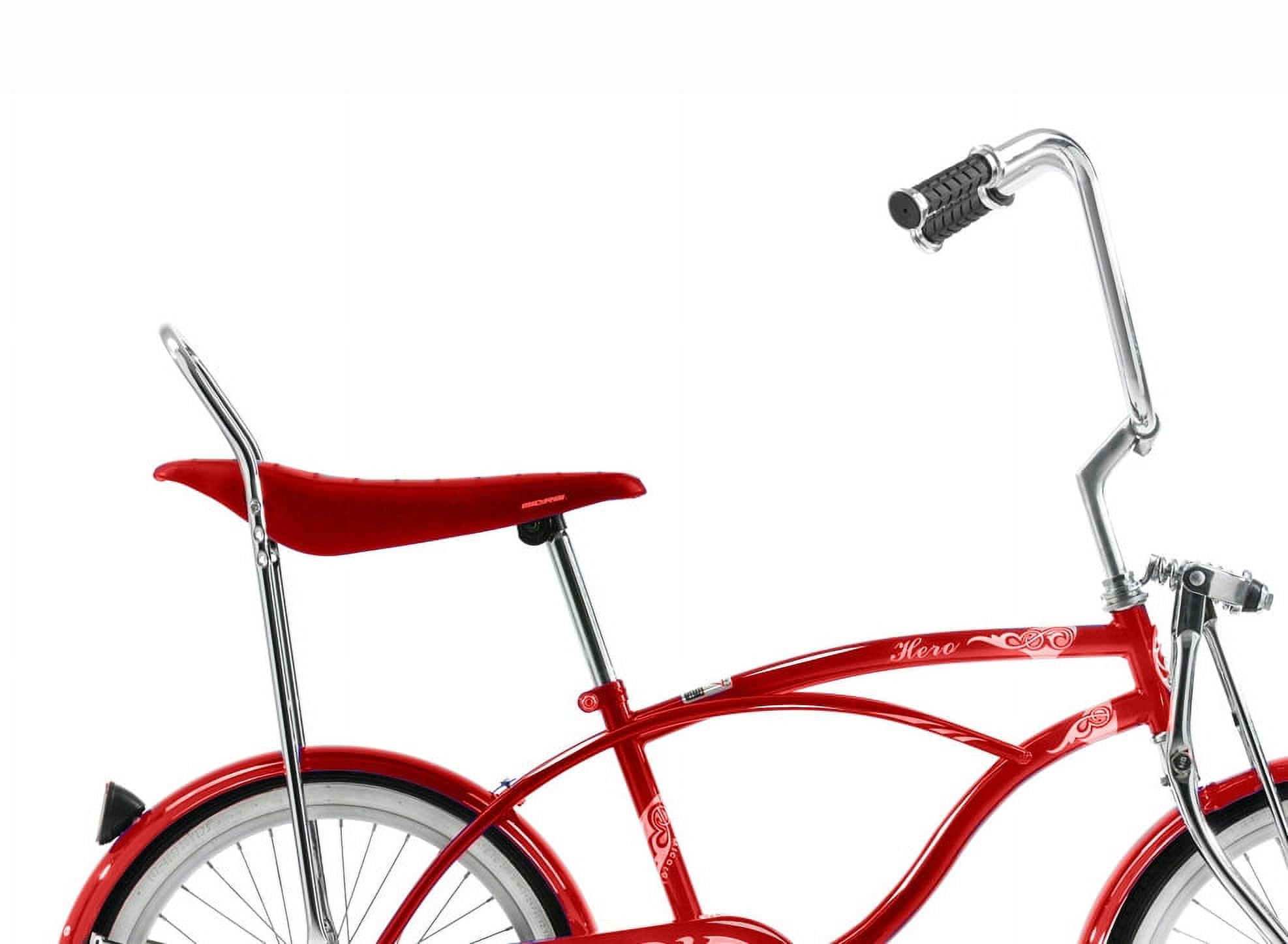 Wonder Wheels 20 In. Beach Cruiser Lowrider Coaster Brake Single Speed Bicycle, Bike With Banana Seat Stainless Steel Spokes One Piece Crank Alloy Rims 36 H – Red