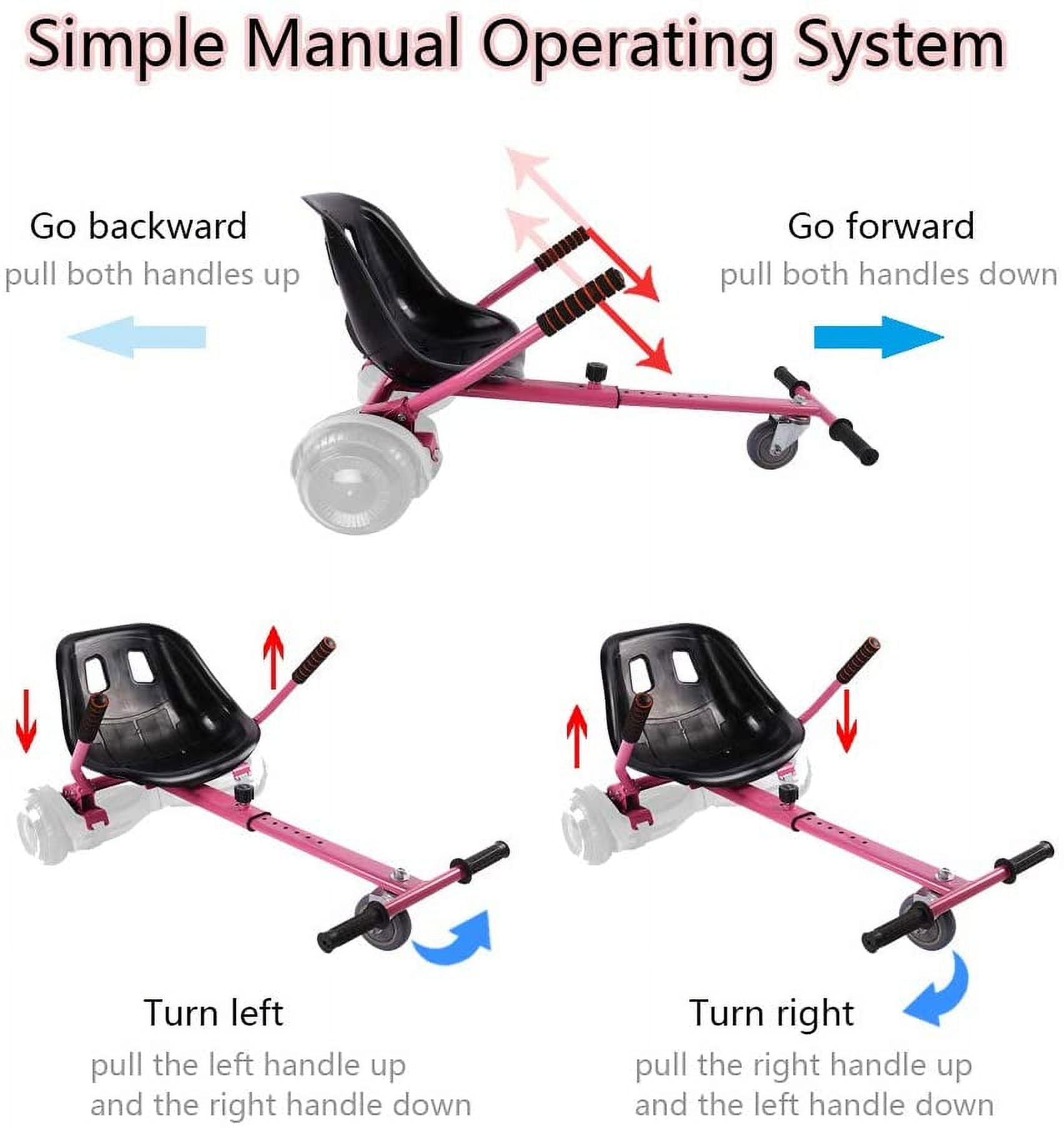 Max load:200 lbs User age:13 years old Kart Equipment ONLY – Attention: Balance Board Not Included. Hover-Rider Accessorie Seat for Two Wheel Hover-Rider 6″ and 10″ Only Easy to install, takes only about a minute to transform your Hover-Rider into Electric Go Kart Perfect to make you enjoy the happiness with your Hover-Rider BoardKart Equipment – Balance Board Not Included, the length is adjustable, cruise like a GO-KART PLEASE NOTE: Balance Board Not Included
