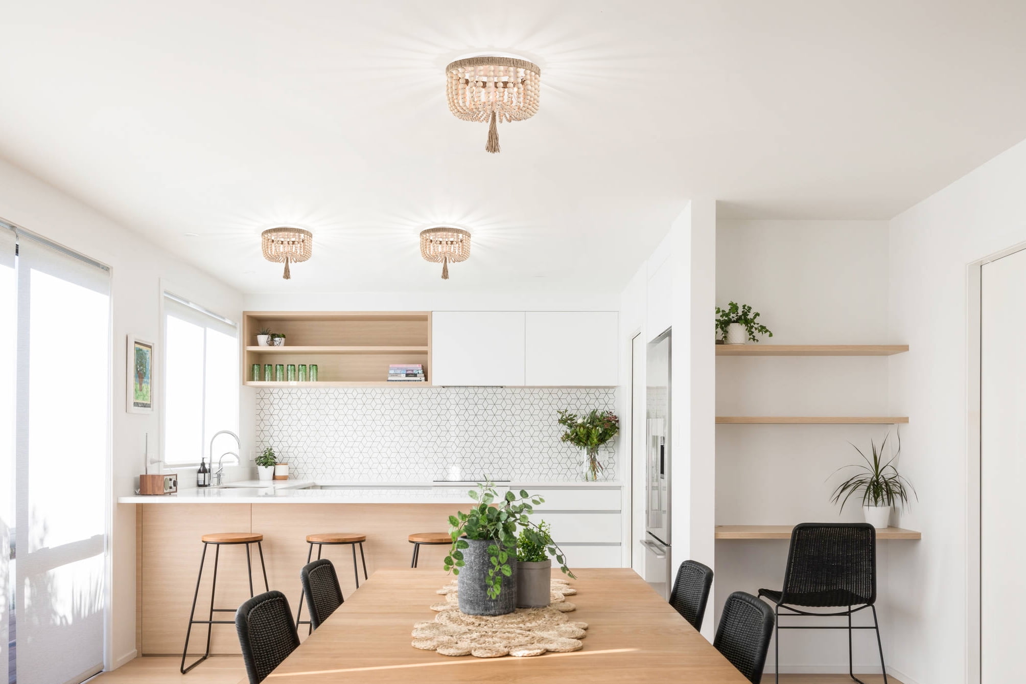 LaLuLa 3-Light bedroom flush mount beaded chandelier with warm-tone solid wood beads painted by hand, heavy-duty metal backplate, which meets the sustainability standards with rust-proof, fade-proof. So that the bohemia style of this dining room chandeliers can be maintained as much as possible. The infinitely graceful look of the wood bead light work well with your existing décor from rustic farmhouse to modern contemporary, lend vibrancy to your space and increase the value of your home. Hardwired design provides a cleaner, organized look, all the required mounting hardware and instructions are included in the package, just follow the instructions for a quick installation without additional steps. You will find it so easy to install this wall sconce light fixture. Good service: if you have any question about boho light fixtures ceiling, feel free to let us know and we will give the best solution within 12 hours. Premium Material: Wood Beads, Hemp Rope, Metal Dimmable: Fully dimmable with compatible dimmer switch Bulbs Specifications: Requires 3 x E12 bulbs (bulbs not included), compatible with LED, Edison, Incandescent, Compact Fluorescent etc. Fixture Dimension: 12.6 inches in diameter x 10.8 inches high