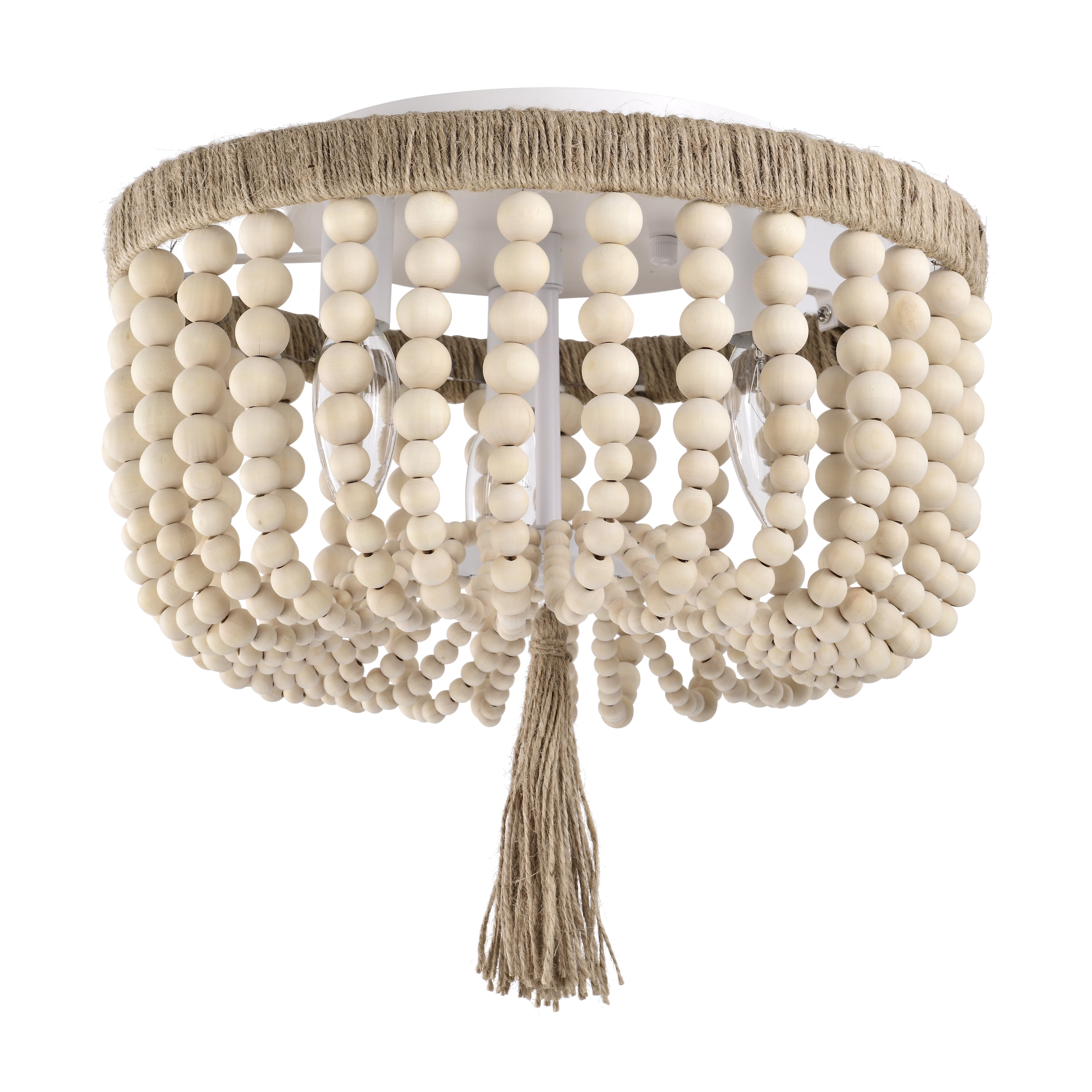 Wood Bead Chandelier Flush Mount Ceiling Light Fixture 3-Light Boho Light Fixtures Ceiling Farmhouse Chandeliers for Bedroom Dining Room