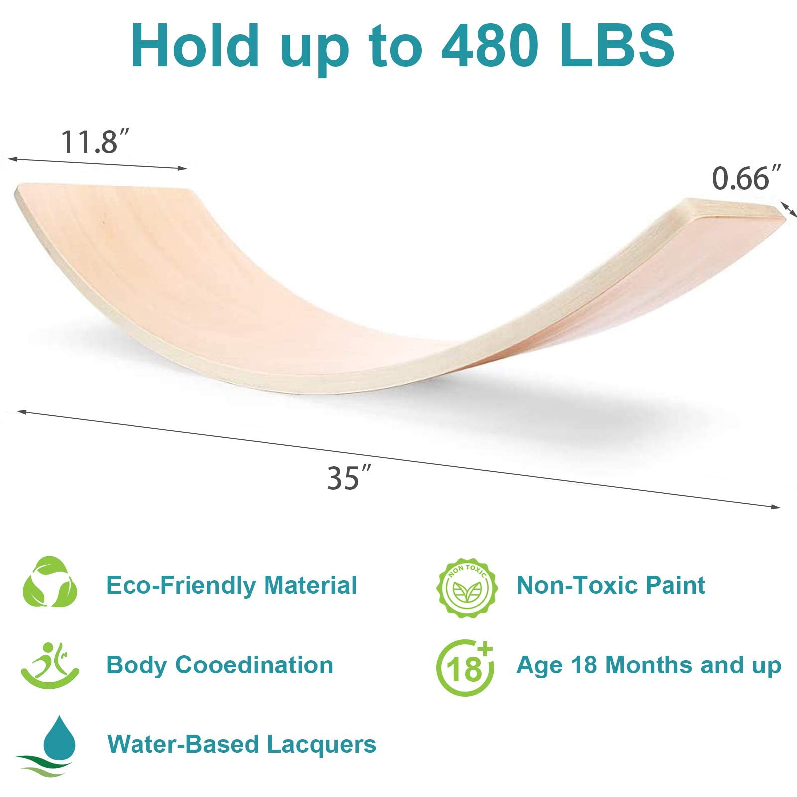 WOOD CITY Wooden Wobble Balance Board 35 Inch Natural Wood Child Balance Board, Natural Color Made from highquality natural wood, ensuring durability and safety for all users Measures 35 inches long, 118 inches wide, and 066 inches thick, with a height of 6 inches at the highest point Supports up to 480 lbs, making it suitable for both children and adults Encourages openended play, allowing for various imaginative uses such as a swing, bridge, or lounge chair Stimulates the vestibular system, promoting balance and posture development