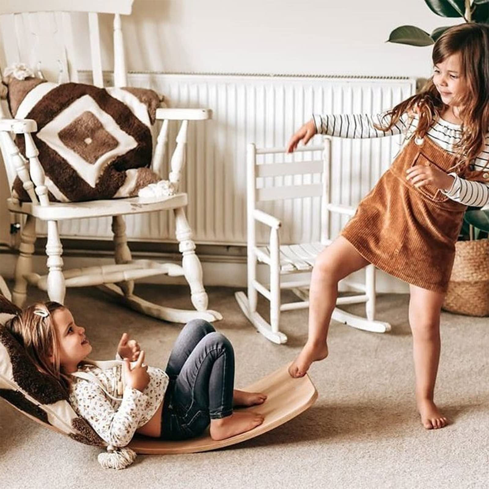 ???? UNLIMITED WAYS TO PLAY: The Wooden Balance Board is whatever you imagine it to be – a swing, a bridge, a shop, a cabin, a stepping stone, a racetrack, a lounge chair, fitness equipment, a puppet, a small football goal, a teeter popper or a tunnel. ???? DEVELOP MULTIPLE SKILLS: It stimulates the vestibular system, which is of great importance for general development and learning. It supports the muscles responsible for the correct posture develops the sense of balance. ???? BOTH FOR KIDS AND ADULTS: The board is a wooden toy that grows with the child and is also very suitable for adults. To get fit, stretch your back (as a seat aid) in yoga exercises, to train balance or just because it’s fun. It’s possible to do a wide range of exercises on the wooden board. ???? TRUE QUALITY ASSURANCE: Highest quality natural real wood,ecologically friendly lacquers. The wood has unique coloring, texture, grain, and mineral patterns in the outer layer, which make each board one of a kind. ???? SIZE & WEIGHT: Measures 35 inches long, 11.8 inches wide, 0.66 inches thick and 6 inches tall at the highest point. This durable piece of Montessori furniture is a solid heirloom item that can be used for many years of adventure.It can safely hold up to 480lbs so that friends can join the fun too. ???? EXCELLENT AFTER-SALES SERVICE: We guarantee that you will like this practical kids balance board. We will provide you with the best service. The warranty period is TWO years. If you have any questions, please feel free to contact us.