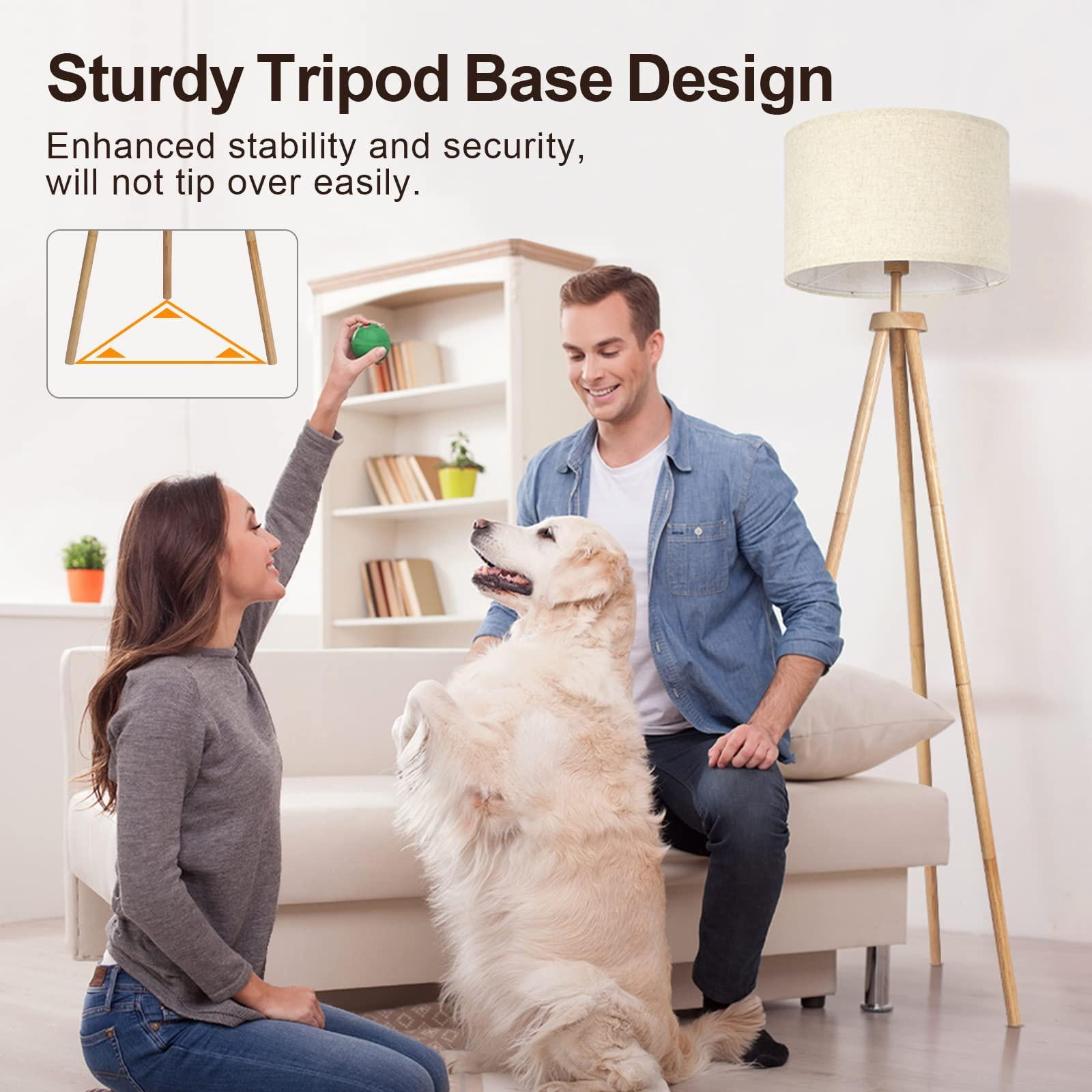 Wood Tripod Floor Lamp, Dimmable Standing Lamp Tall for Living Room, Bedroom, Office