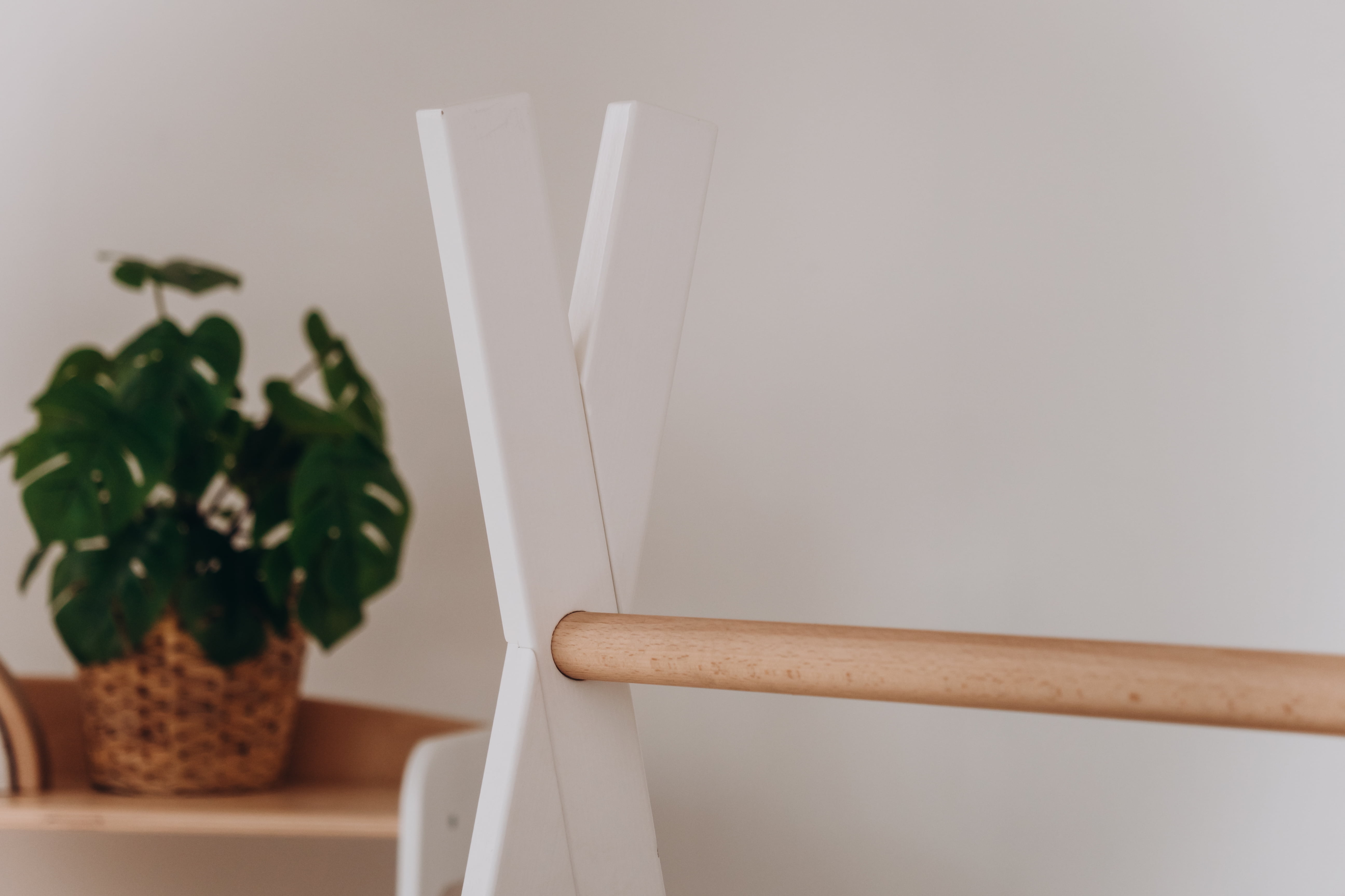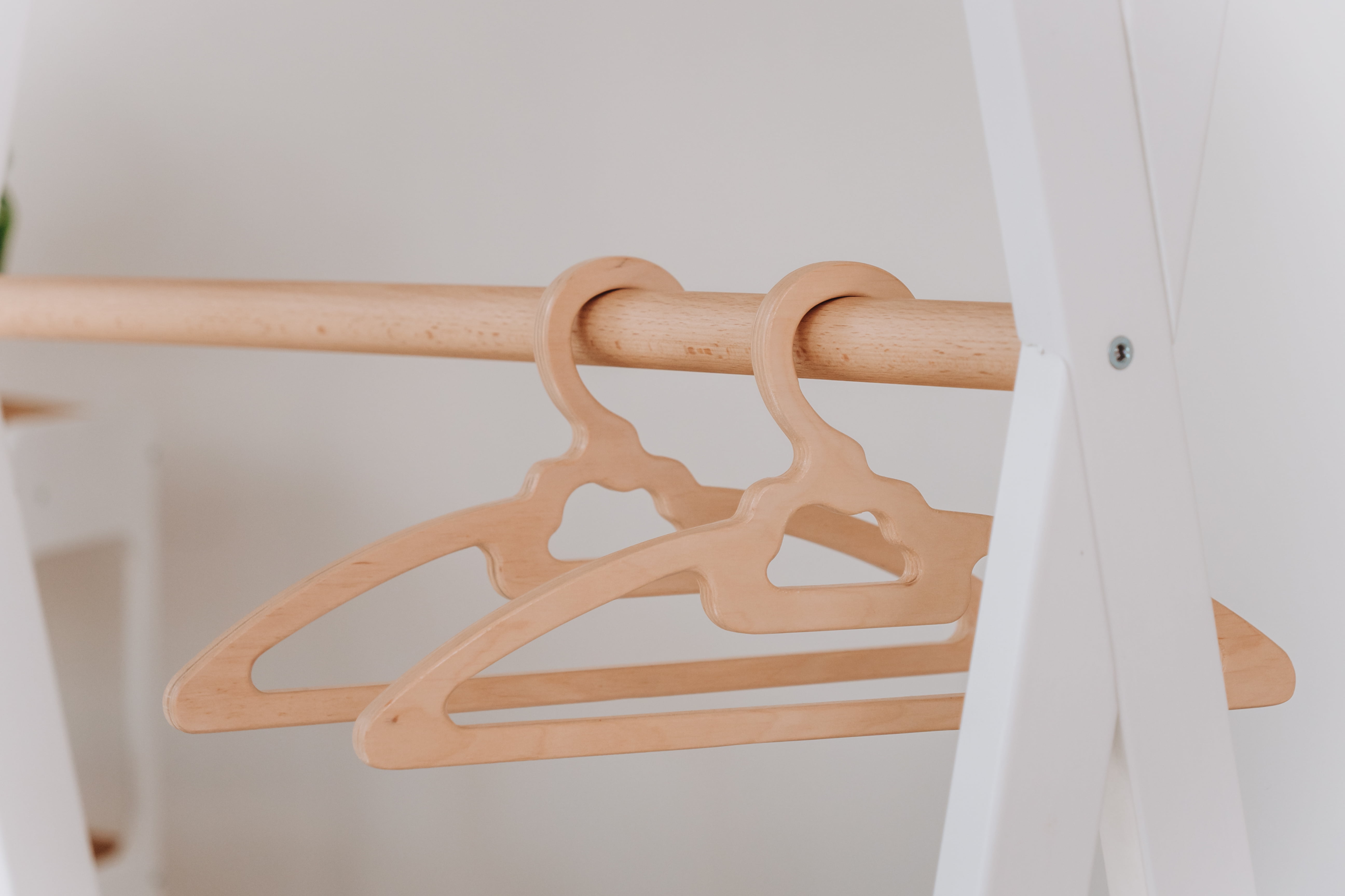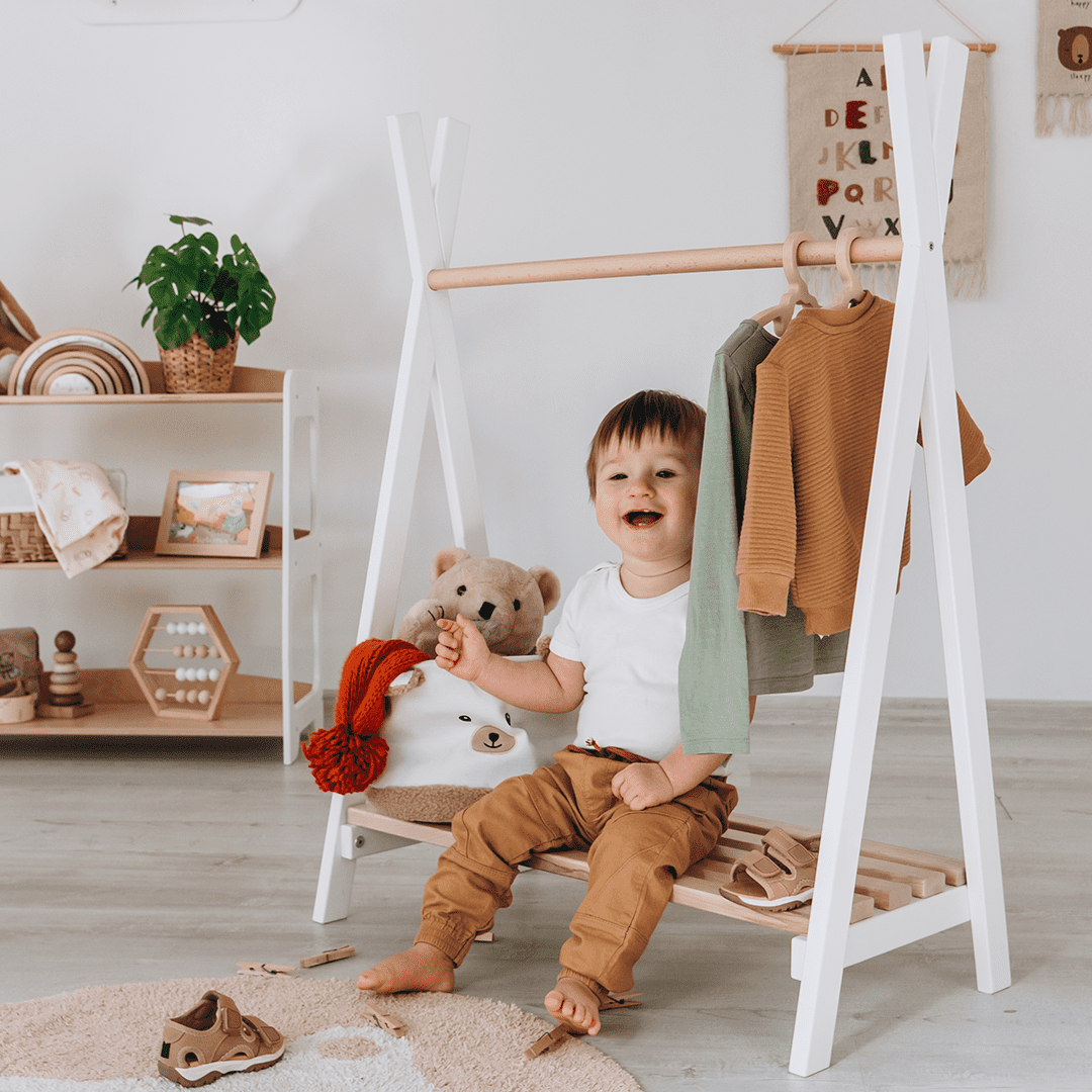 WoodandHearts Teepee Stand, Montessori Clothes Rack for Toddlers, White and Natural wood