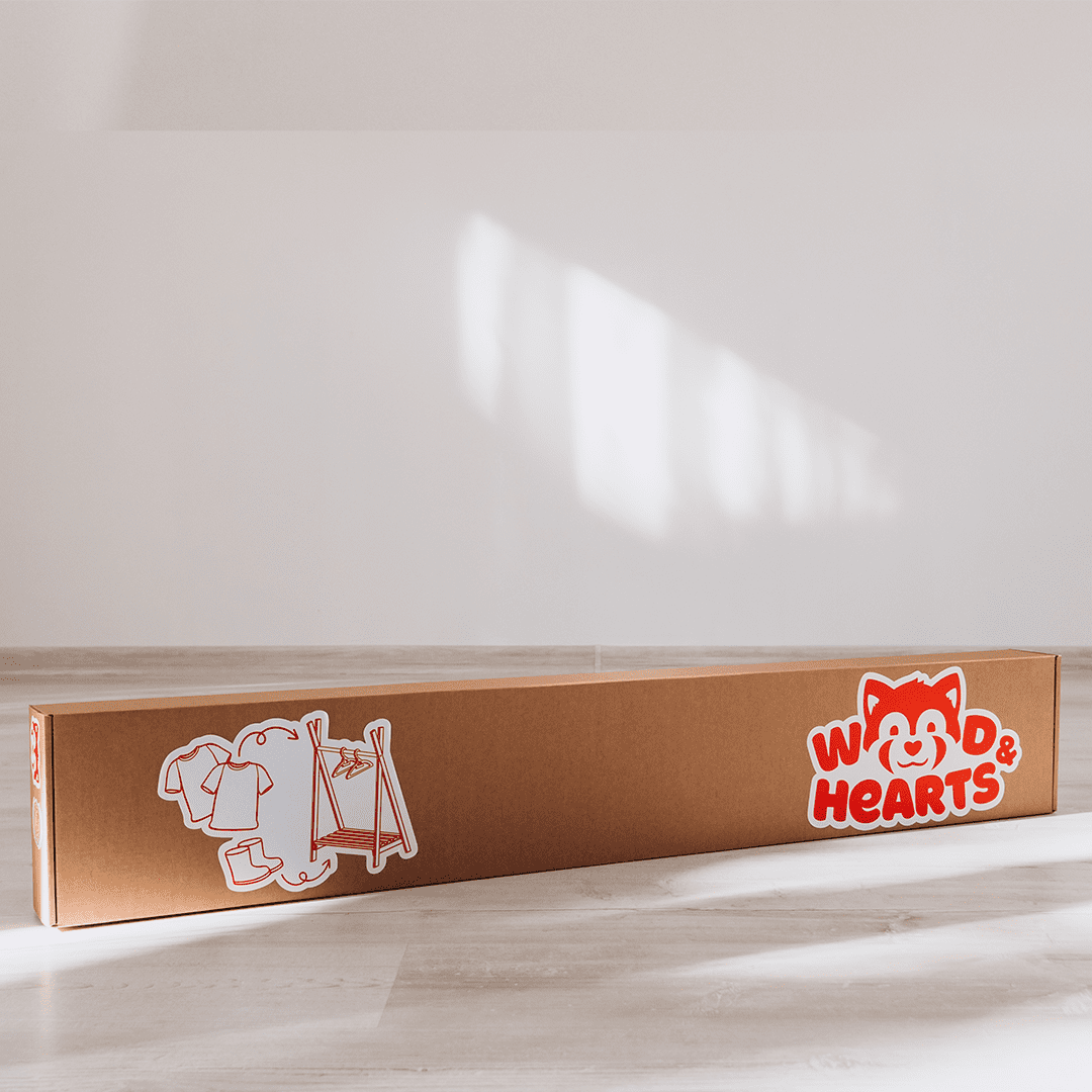 High-quality Materials: Constructed from smooth-finished, long-lasting, environmentally safe wood. Built to last through years of use. Child-Friendly Design: Encourages independence by being simple to use and safe for kids. WoodandHearts clothing rack helps children learn to organize their belongings. Stylish and useful: Practical storage combined with an attractive design that complements any decor style. Adaptable Use: Excellent for arranging accessories, shoes, and clothing.