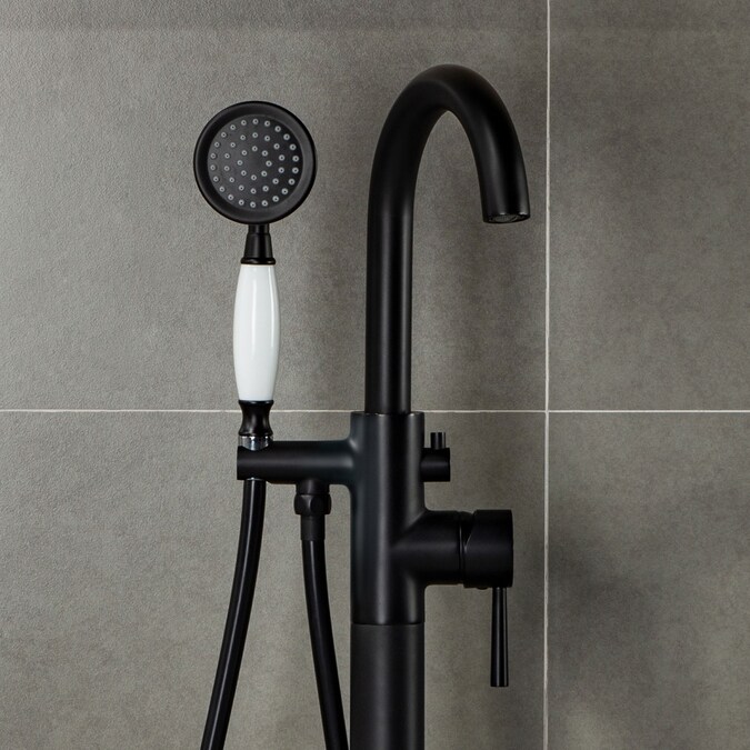 - Package includes bathtub faucet (crafted from high quality brass), brass tube, hand shower with 60-in double spiral stainless steel hose, 35-in Hot and Cold water inlet hoses, metal tripod with mounting hardware, base cover and installation instruction