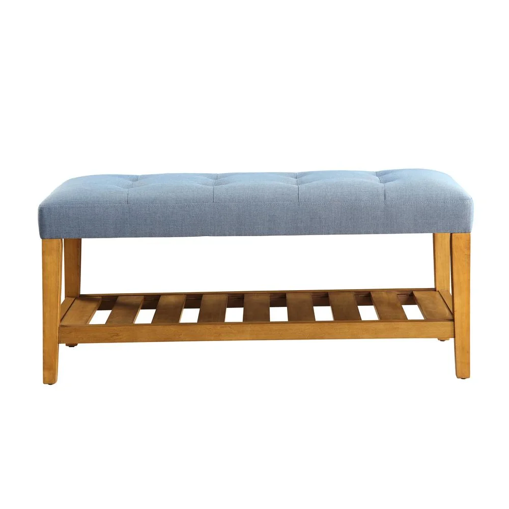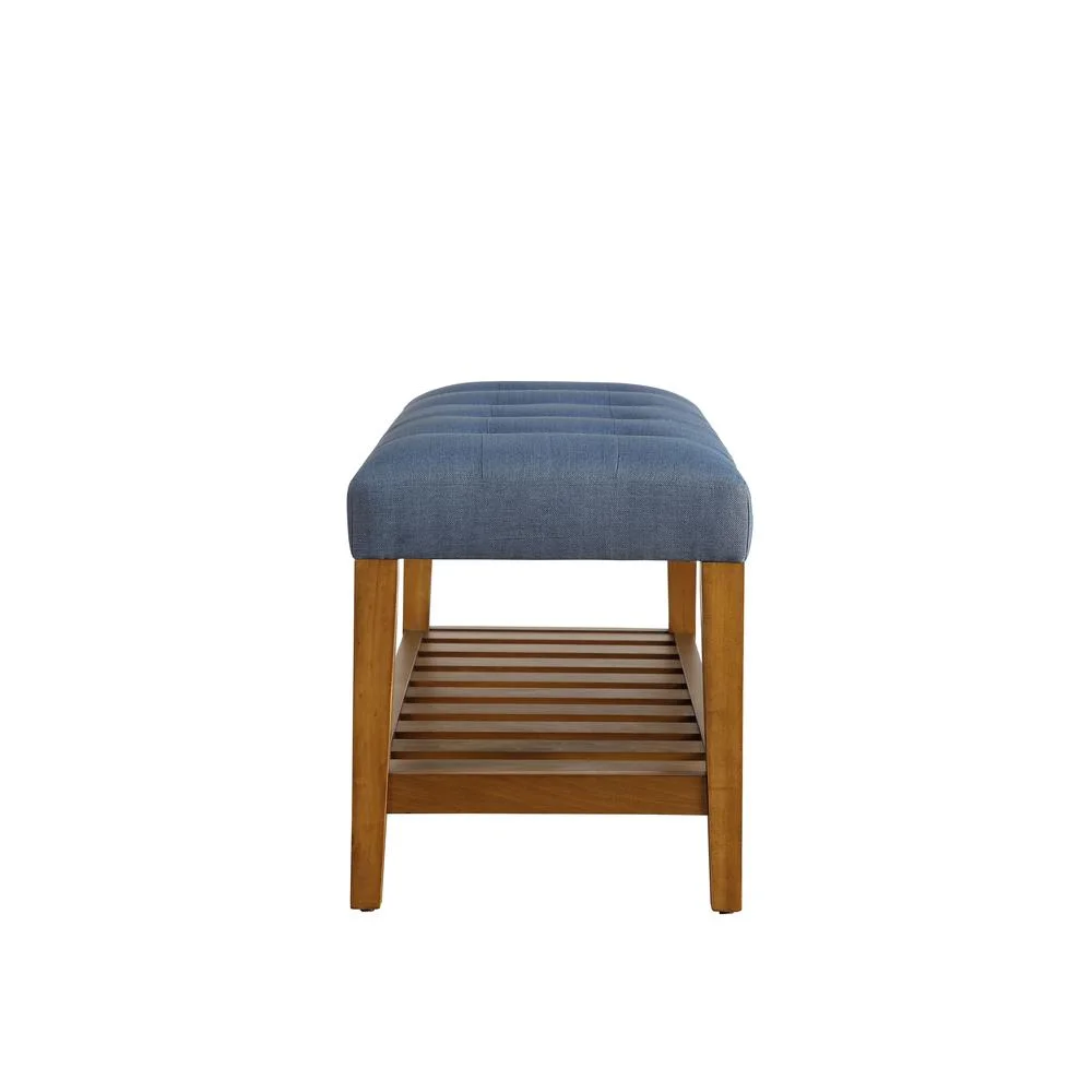 ACME Charla Wood and Fabric Bench in Blue and Oak