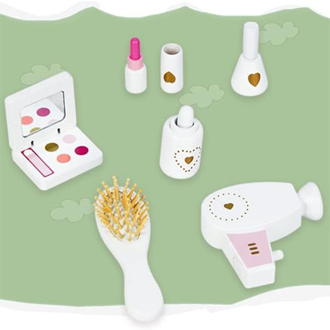 Beautiful Designed Kids Vanity: This vanity table and chair set is built with top-quality materials and designed for safety. Rounded edges, non-toxic paint, and sturdy construction ensure your child’s playtime is both safe and enjoyable for years to come. Best gift for littler girls age 3 and up. Stylish and Inspiring Design: Introduce your little princess to the world of glamour with our beautifully designed Kids Vanity Table and Chair Set. The chic design, featuring delicate curves, and a lovely pastel color palette, is perfect for inspiring creativity and self-expression in your child’s room. Encourages Creativity and Independence: Our Kids Vanity Table and Chair Set is more than just a beautiful piece of furniture; it’s a space where your child can explore their imagination, experiment with different looks, and develop a sense of self. It’s the perfect addition to foster independence and self-confidence. Storage Drawer and Makeup Tools: The WoodenEdu vanity set is easy to assemble. It offers ample space for your child to store all accessories, combs, hair dryers, lipstick, nail polish, etc. The built-in mirror also adds a touch of sophistication and encourages proper grooming habits. Perfect Gift for Little Girls: Every girls has a princess dream to make up or dress up pretty. Whether you’re looking for a birthday present, a holiday gift, or a special surprise for your little princess, our vanity set is the ideal choice.