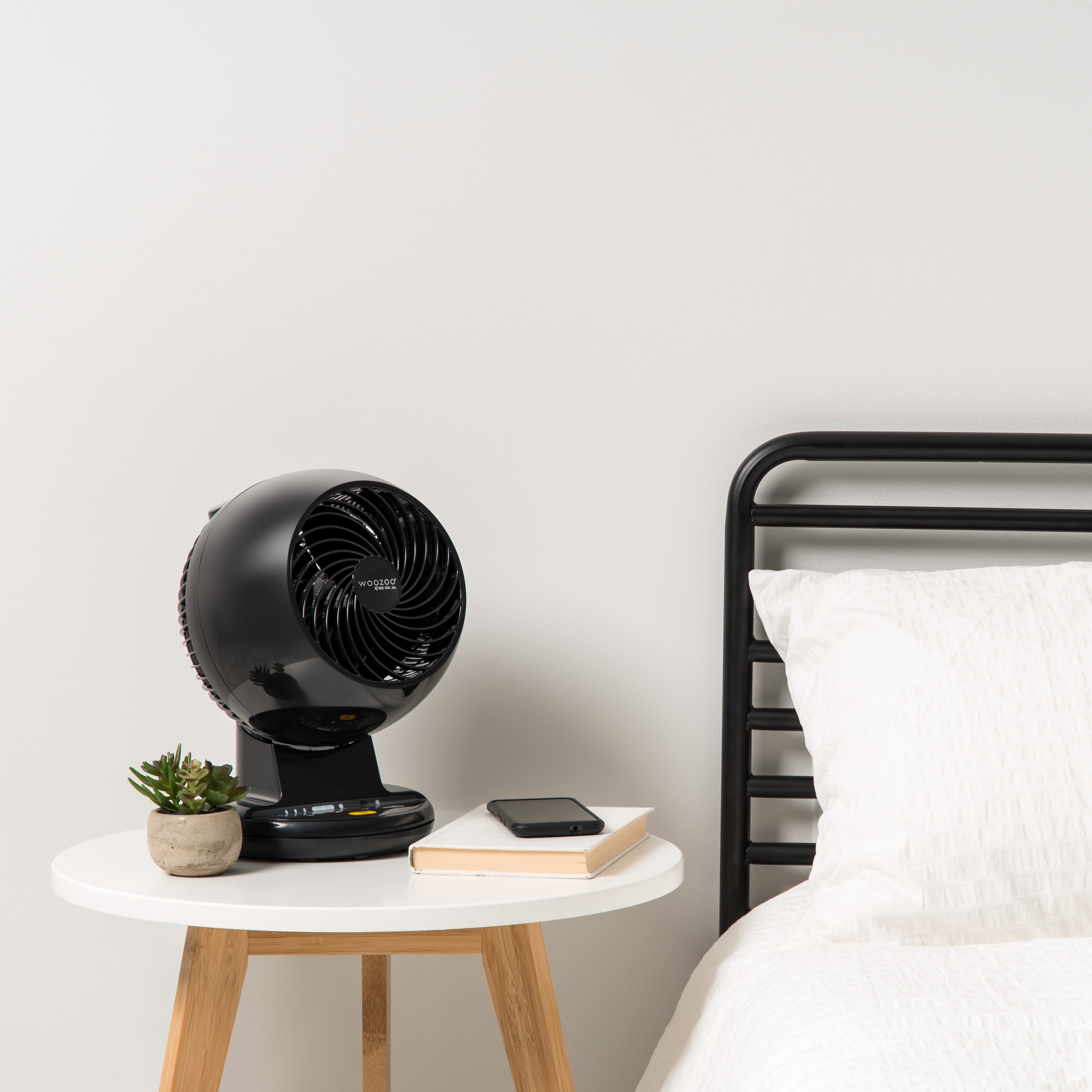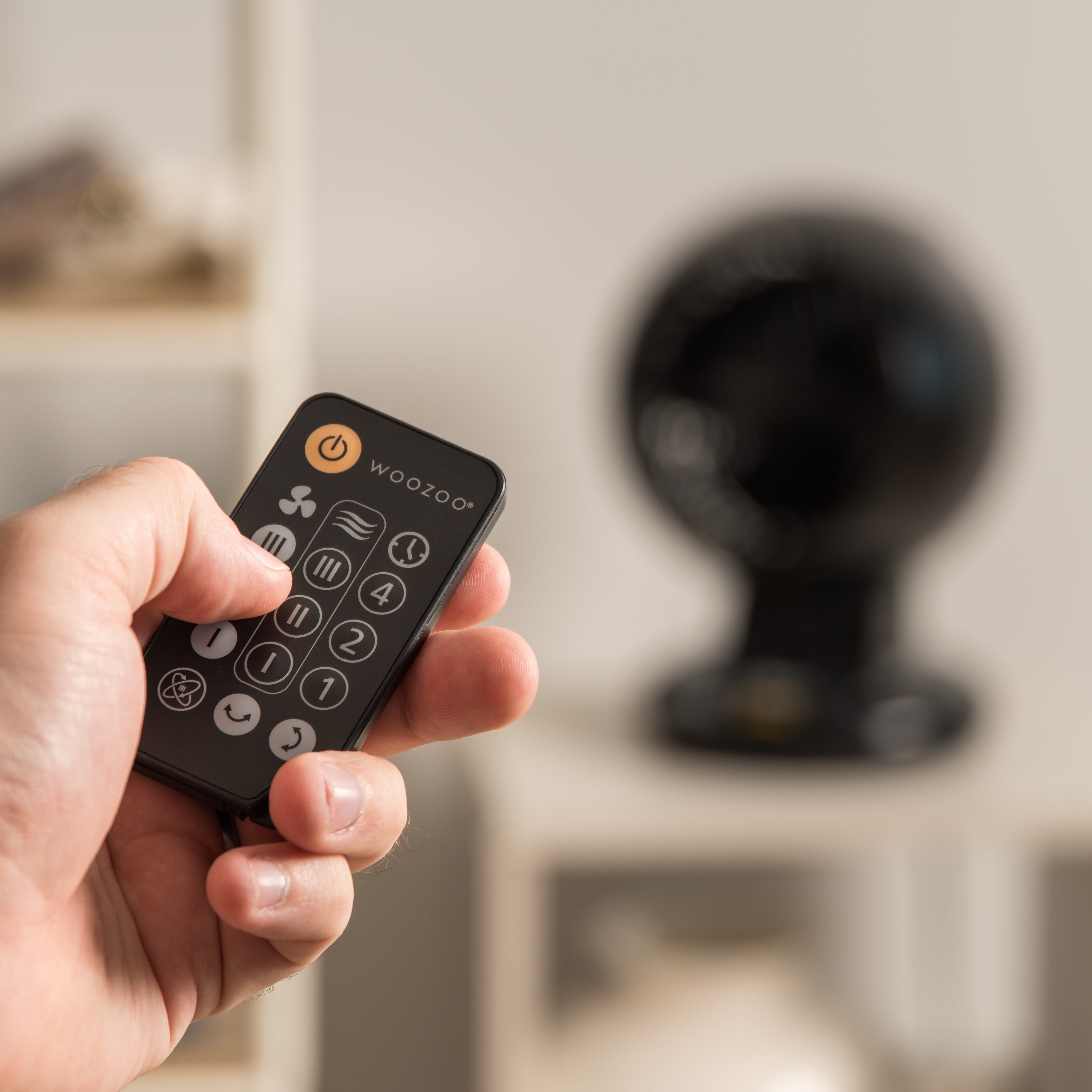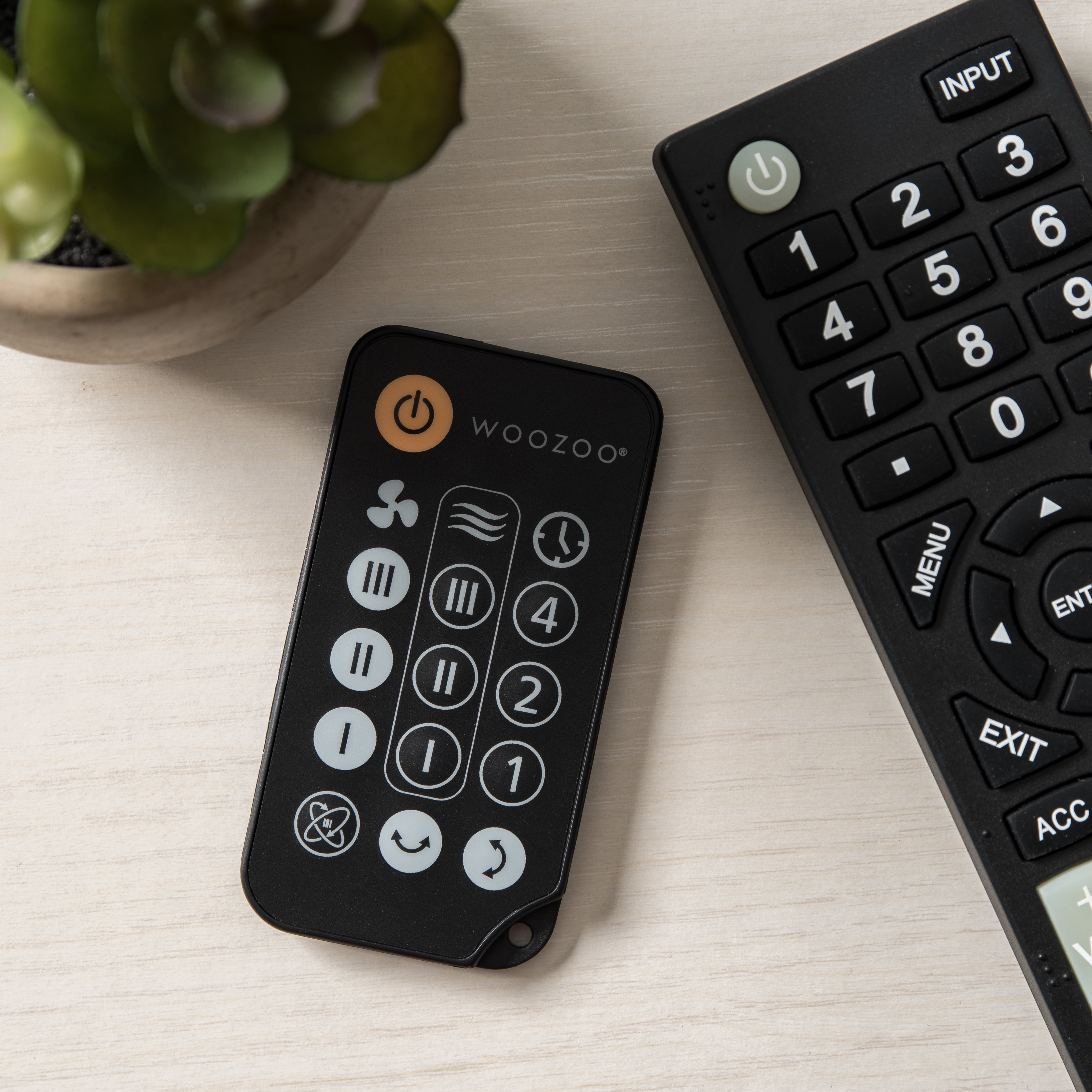 Maximize air flow in your house, office, or dorm with this Woozoo Remote Controlled Personal Oscillating Fan. The powerful yet compact unit comes with a remote to let you control your desired settings from across the room. Three speed settings let you adjust air flow to your desired strength, and optional natural breeze setting imitates the feeling of the outdoors. The whole room fan oscillates left and right, up and down, or all directions together. Enjoy extra-quiet cooling on the circulator’s virtually silent ‘low’ setting, and make use of the optional 1, 2, and 4 hour auto-off timer settings. Desktop fan provides up to 157 ft² area coverage, and the 70 inch cord makes it easy to reach the outlet. This is just another way that IRIS USA provides solutions for everyday living.