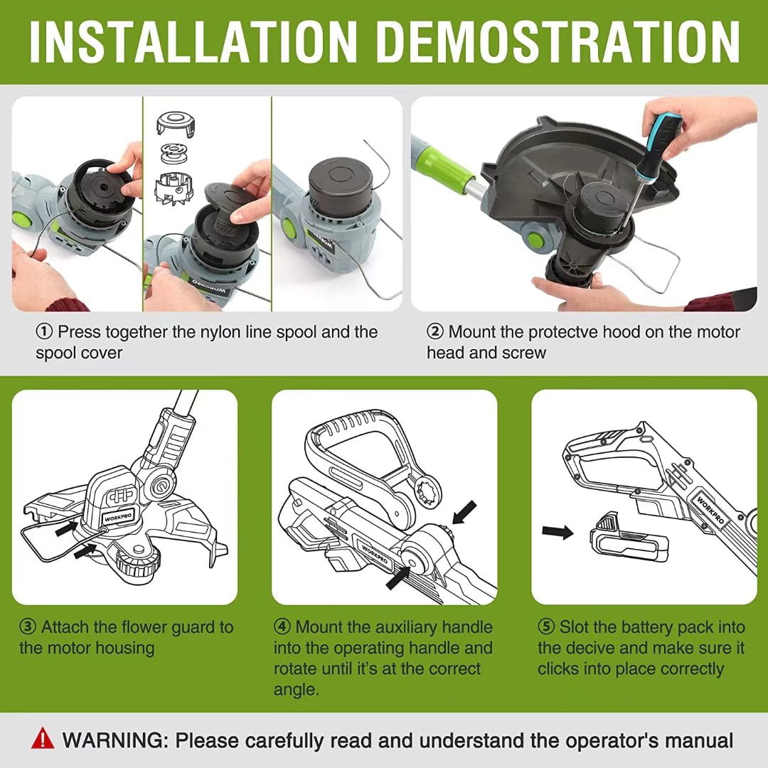 WORKPRO 20V Cordless String Trimmer/Edger, 12-inch, Power Tool with 2Ah Lithium-Ion Battery, 1 Hour Quick Charger, 16.4ft Trimmer Line Included, for Garden