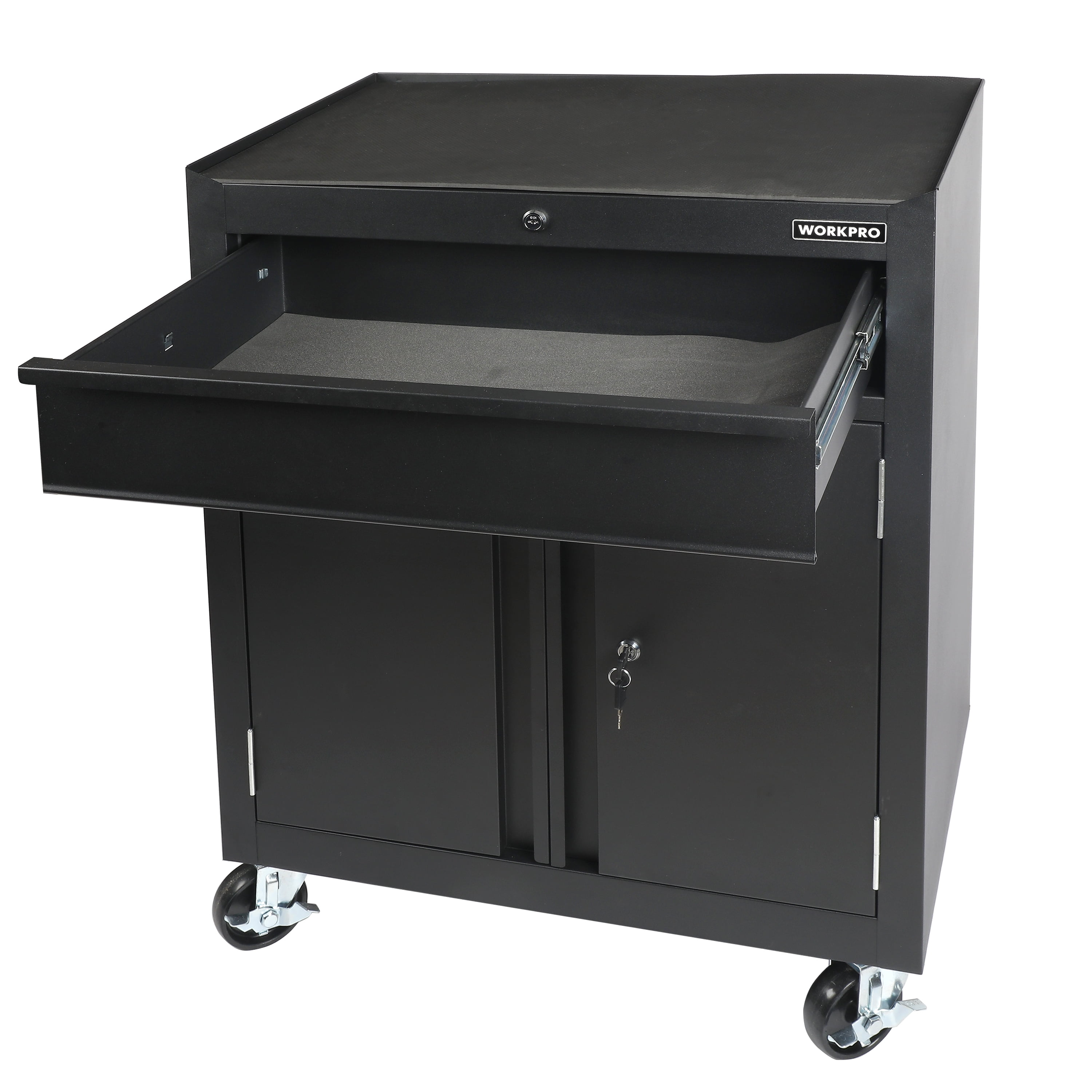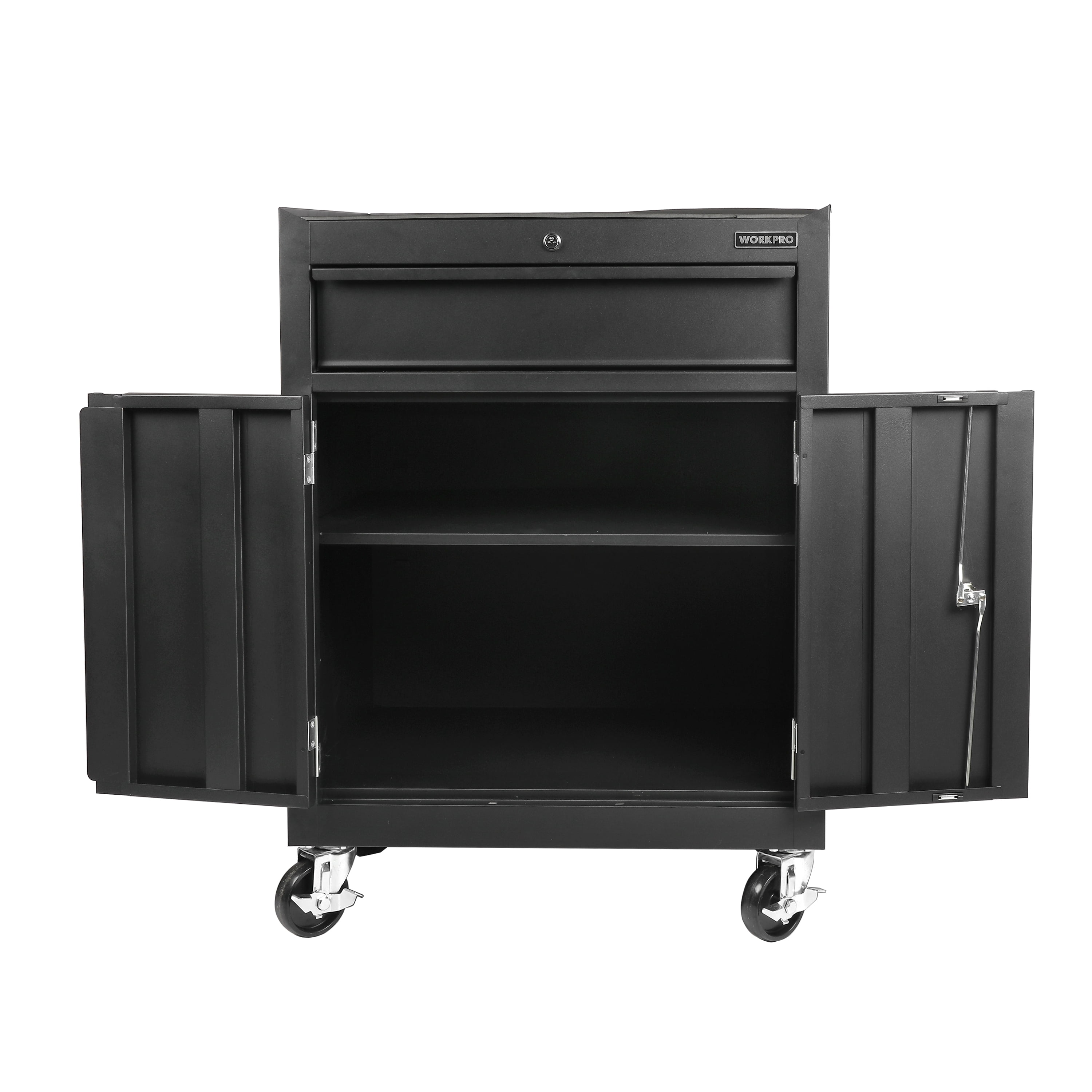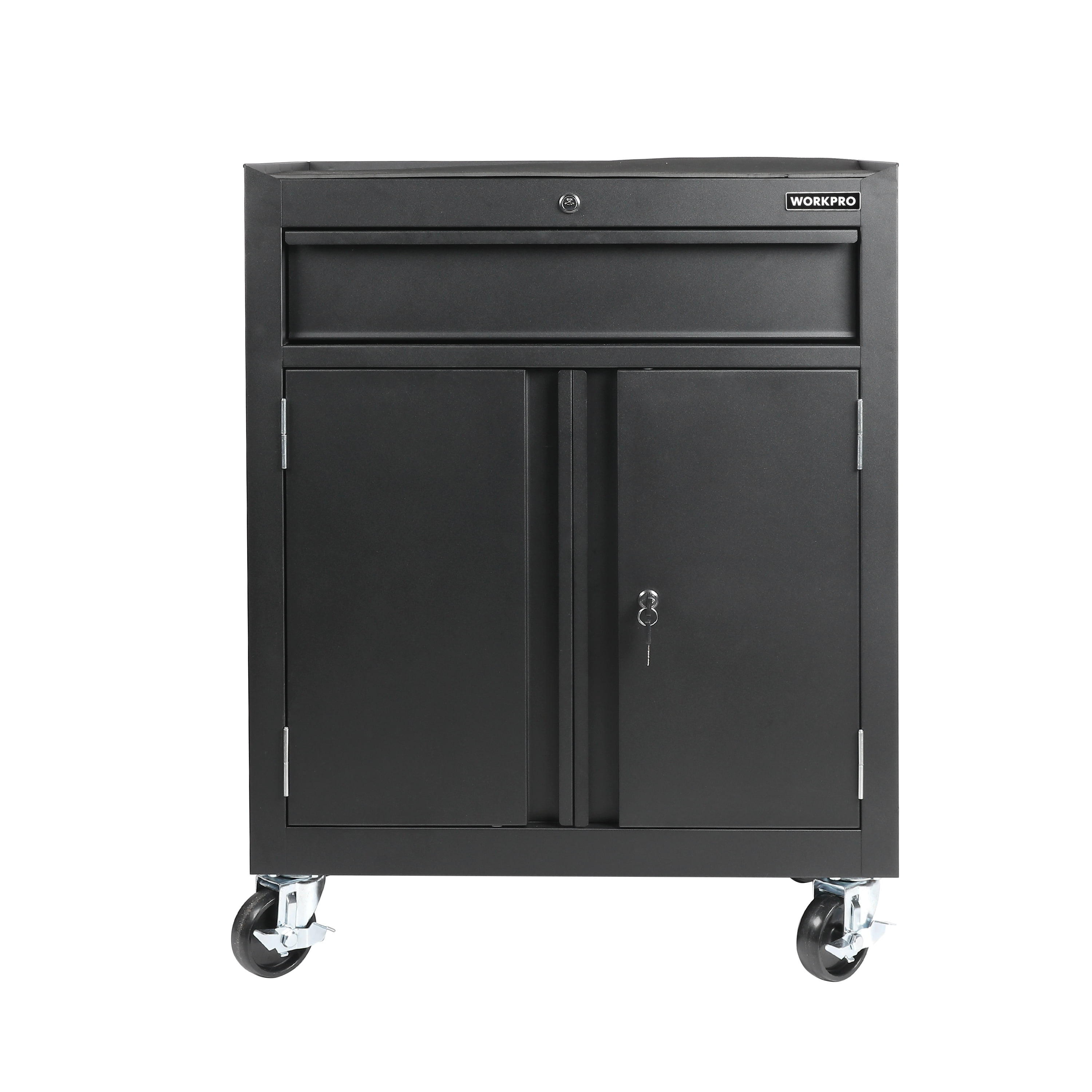 WORKPRO 28-inch 2-Shelf Rolling Garage Storage Cabinet, Lockable, Black