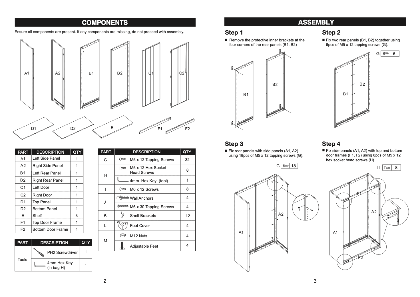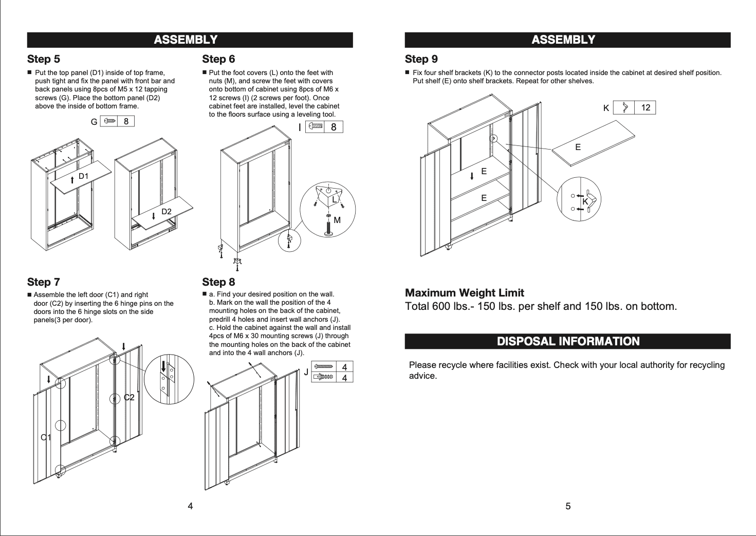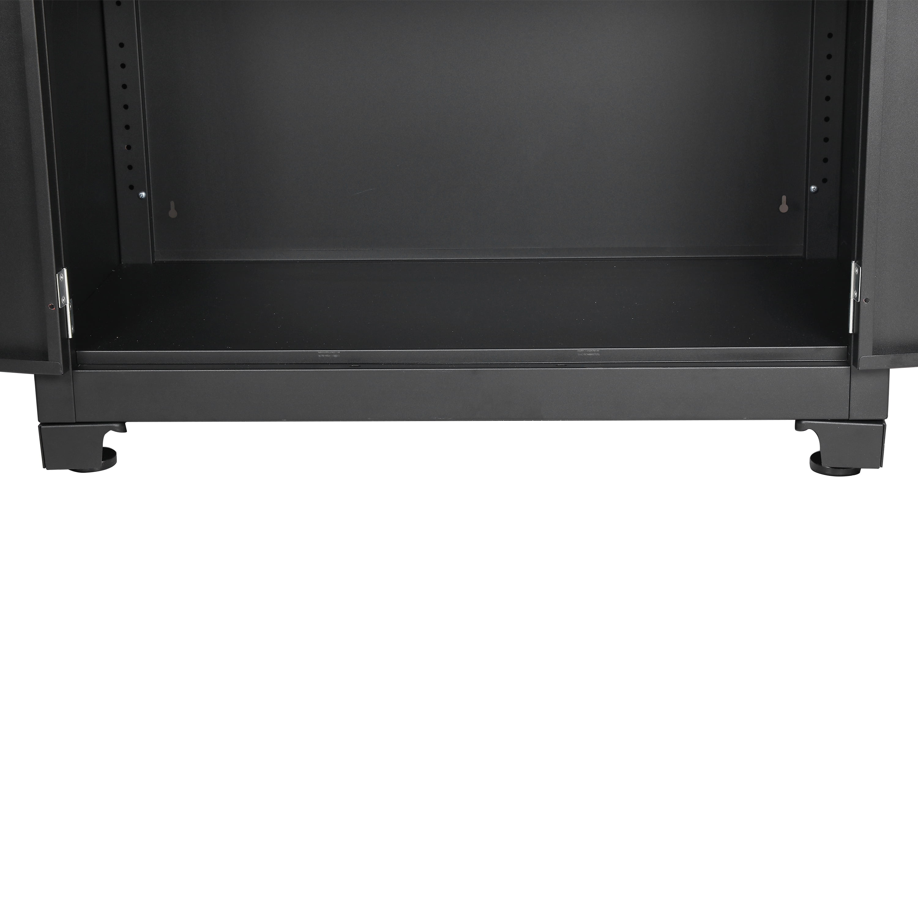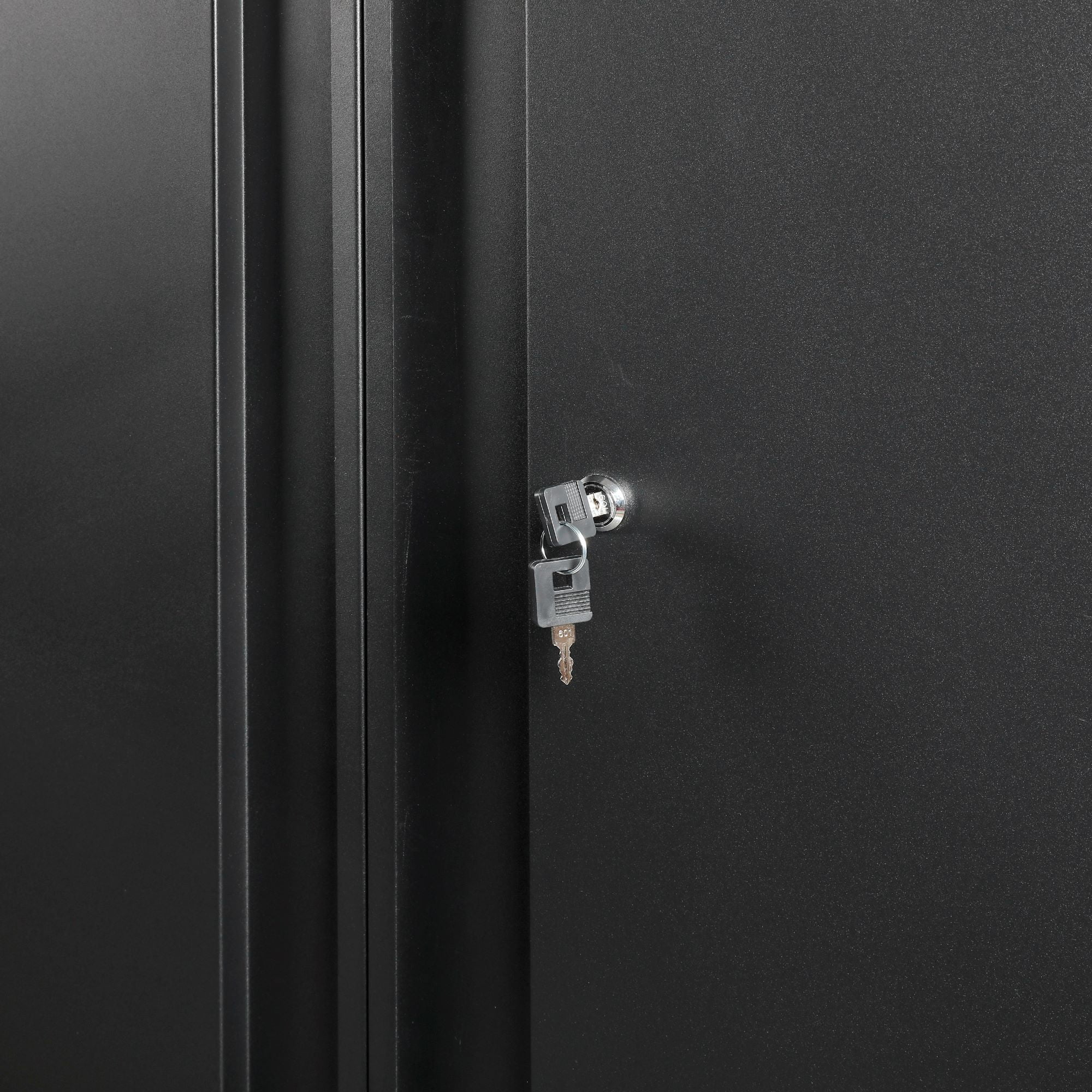 WORKPRO 48-inch Heavy-Duty Garage Storage Cabinet, 3 Shelves, Black, Metal Heavy-Duty Metal Garage Storage Cabinet Powder-Coated Steel Adjustable Feet for Uneven Surfaces 2-Point Locking System with 2 Keys 3 Adjustable Shelves Shelf Weight Capacity: 150 lbs. Each Total Weight Capacity: 600 lbs. Dimensions: 48 in. W x 72 in. H x 18 in. D Color: Black Finish: Black, Powder Coated