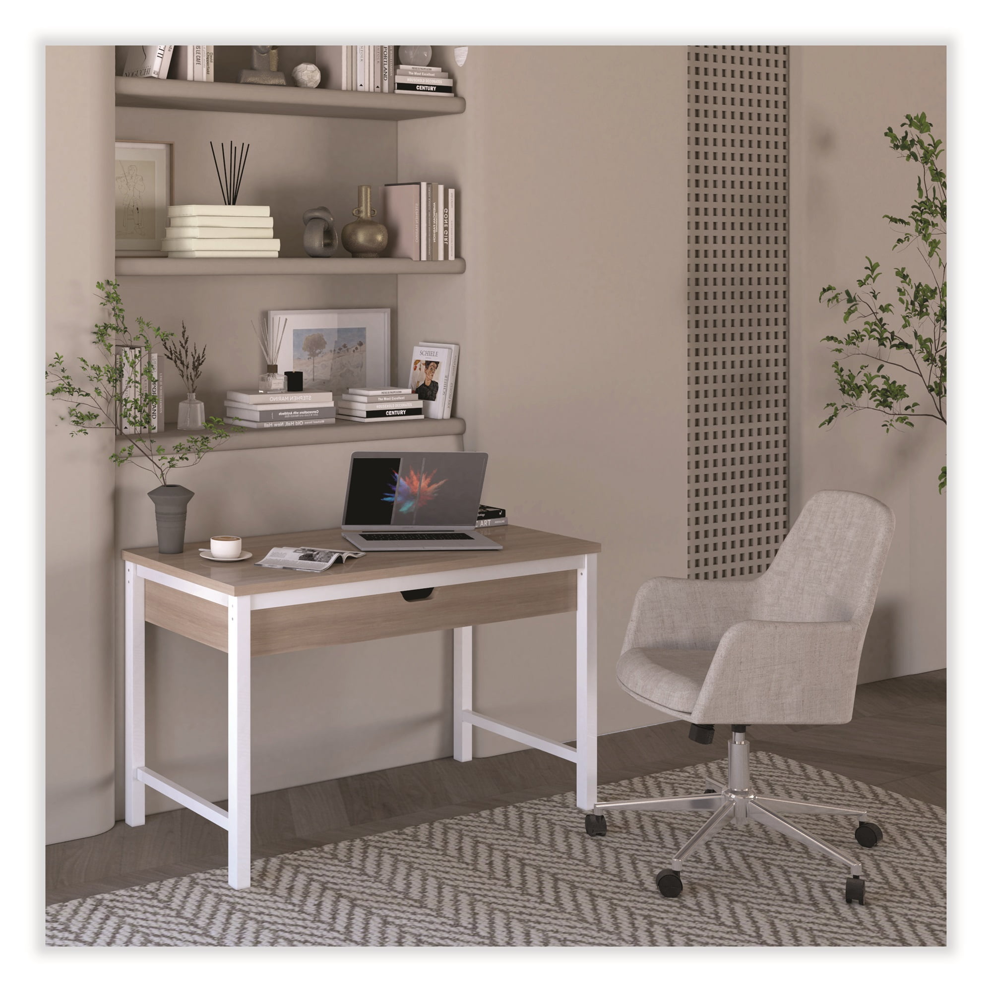 Workspace by Alera Modern Writing Desk, 47.24 x 23.62 x 29.92, Beigewood/White