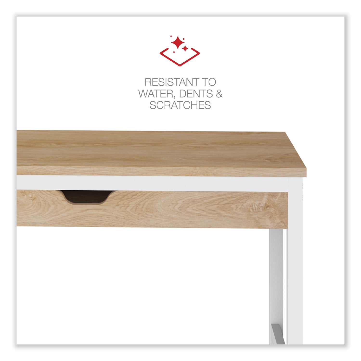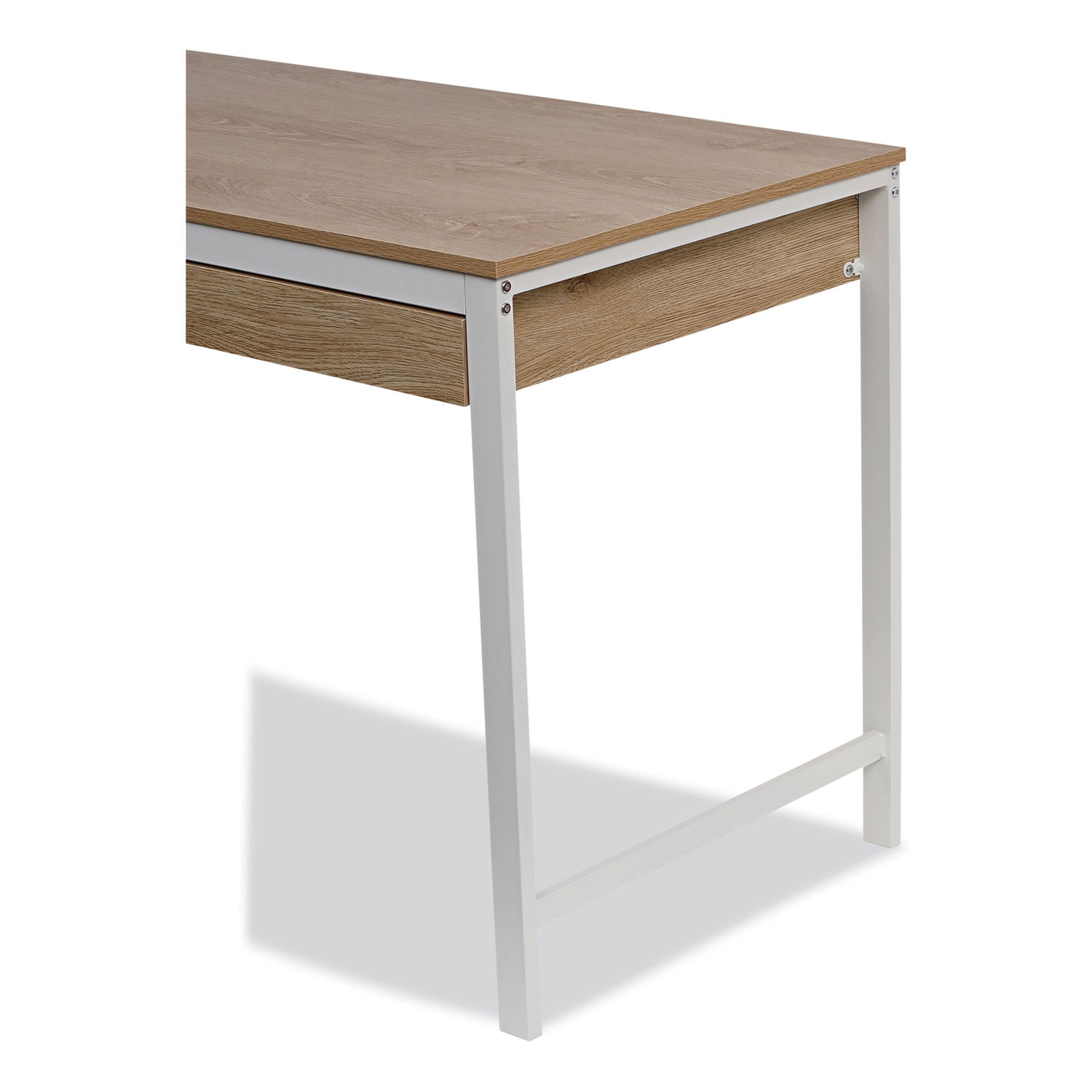 Modern Workspace by Alera writing desk with large drawer for storage is ideal for working or studying. Constructed with a smooth, laminate wood top with durable, steel legs. The wide work surface is ideal for managing multiple tasks at once. The simplistic, multi-function design can be used as a desk or console table. The open design has a light, airy feel, and coordinates with most spaces. Finished on all sides for position flexibility. Some assembly is required. Base Material: Steel; CPU Holder/Platform Indicator: No; Color Family: Beige; Drawer Count: 1; Keyboard/Mouse Platform Indicator: No; Overall Depth (Max): 23.62″; Overall Height (Max): 29.92″; Overall Width (Max): 47.24″; Pedestal Count: 0; Shelf Count: 0; Weight (Fully Assembled): 41.78 lb; Worksurface Depth: 23.62″; Worksurface Material: Melamine; Worksurface Shape: Rectangular; Worksurface Thickness: 5.9″; Worksurface Width: 47.24″; Worksurface/Base Color: Beigewood/White Compliance Standards: SOHO Standard. Warranty: Manufacturer’s limited five-year warranty.
