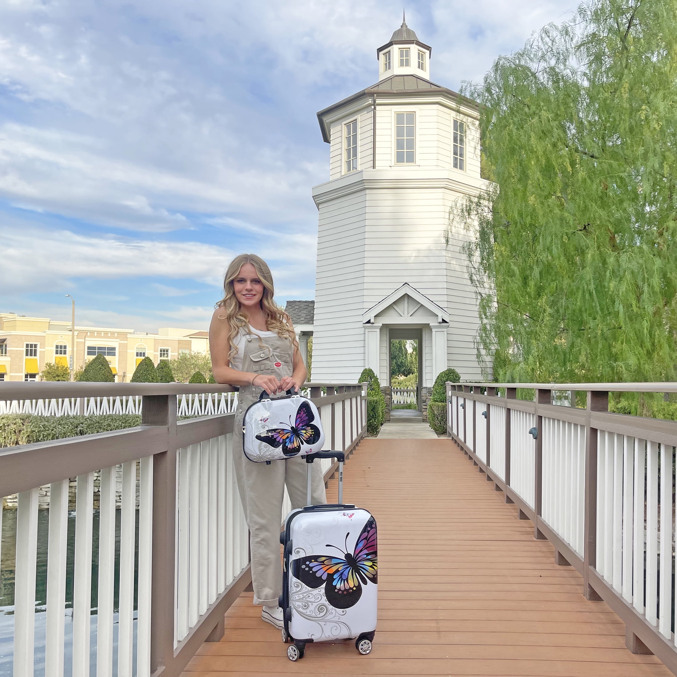 World Traveler Butterfly 2-Piece Hardside Carry-on Spinner Luggage Set (14″ and 20″)