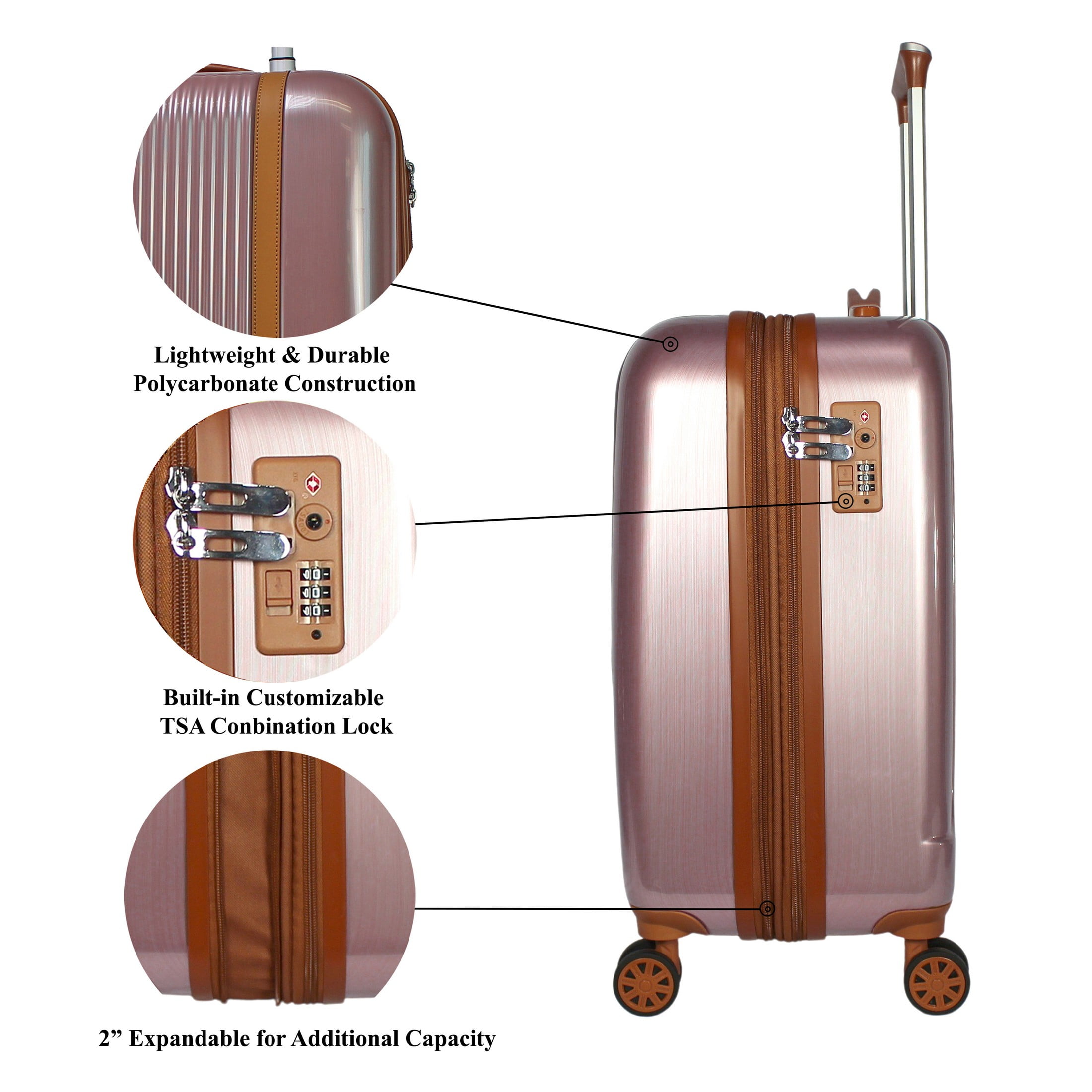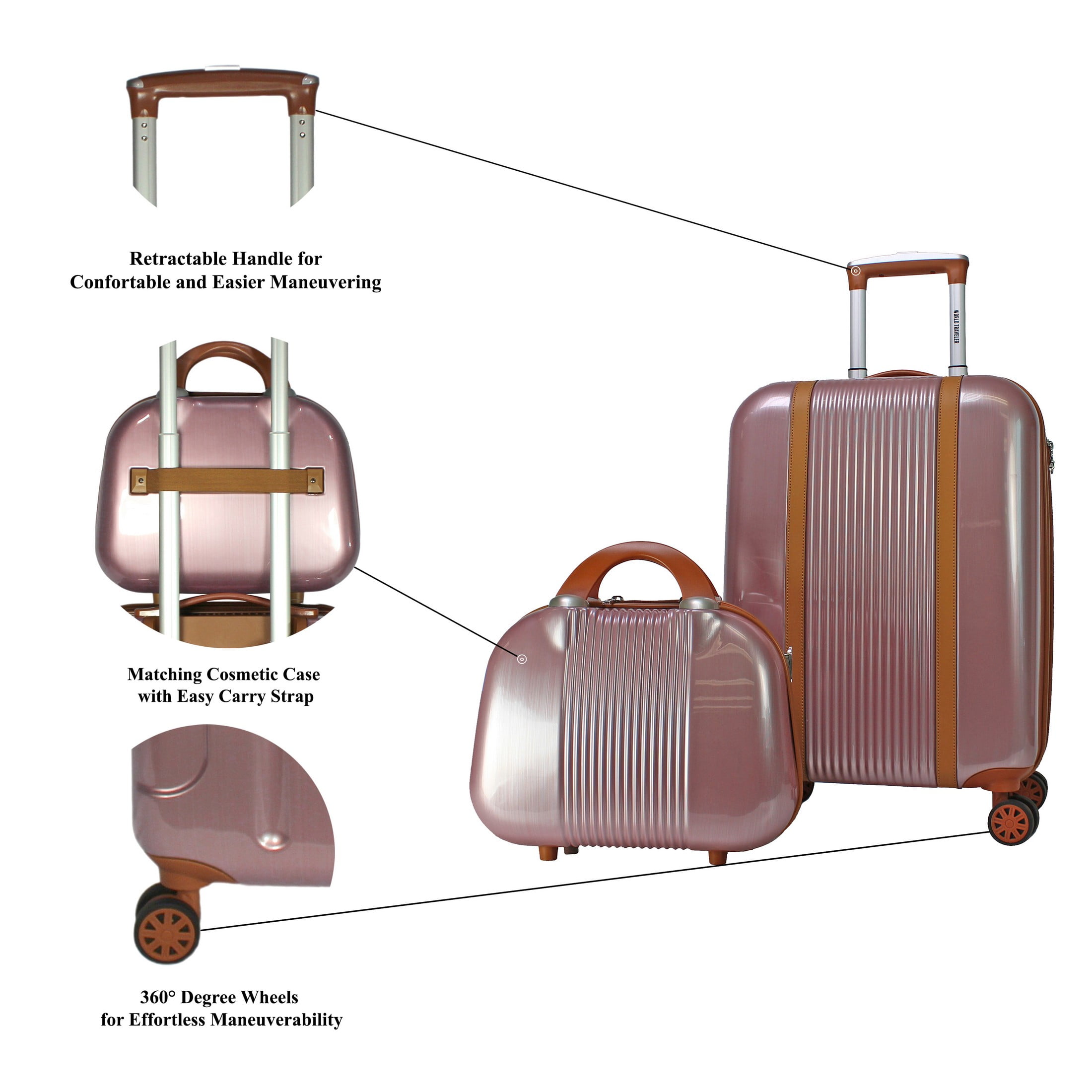 World Traveler Classique Hardside Lightweight Spinner 2-Piece Luggage Set – Rose Gold