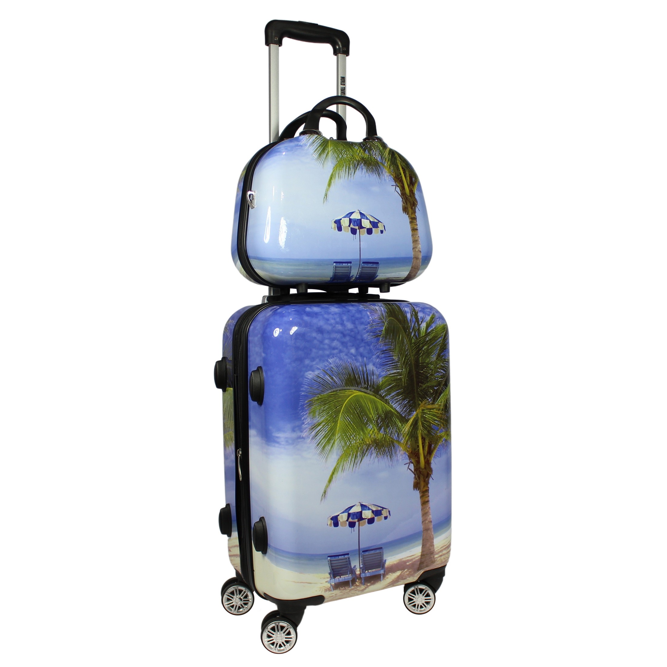 World Traveler Palm Tree Hardside 2-Piece Carry-on Spinner Luggage Set