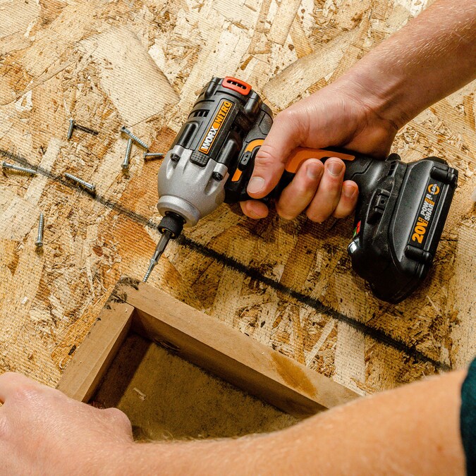 The Worx Nitro WX102L 20V Power Share 0.5” Cordless Drill/Driver with Brushless Motor is built to last, with all-metal gears for performance you can count on during even the most demanding jobs, and an all-metal heavy-duty 1/2″ in. ratcheting chuck which practically eliminates bit slippage. 2-speed gearing and a variable speed trigger allow the user to find the perfect rotation from 0-600 RPM or 0-2000 RPM. And the 20+1 clutch allows for further fine-tuning so you can find just the right setting for each application, with 531 in-lbs. of maximum torque available from this drill/driver. The Worx Nitro WX261L 20V Power Share 3-Speed Cordless Impact Driver with Brushless Motor was designed to be powerful, but with enough functionality to handle all drilling and driving applications. The 3-speed gearbox allows for no-load speeds from 0-920, 0-2050, 0-3000 RPM, so you can find the right speed for each application. The Nitro Impact Driver has an impact rate of 0-4100 BPM (Blows Per Minute), with a max torque of 2100 in-lbs. making this tool ideal for driving large fasteners quickly when building decks or fences, performing rough carpentry, or working on metal framing and assembly. It also excels at driving lag bolts or hanging plywood. Both drills weigh only 3.4 lbs. and are compact to fit into tighter areas. The onboard LED lights illuminate dark workspaces. And the innovative GripZone handles are constructed of micro-textured materials for more comfort during operation.
