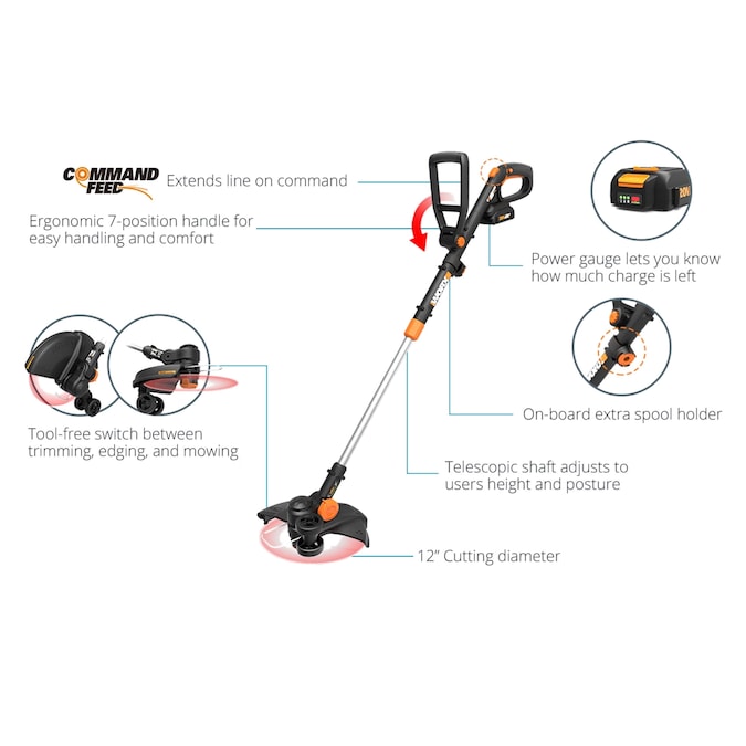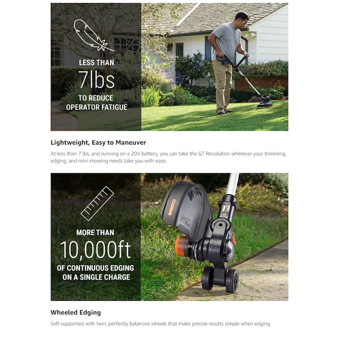 - LONGER AND STRONGER – An entire foot longer than the last version of the WORX GT, with a motor running at 7600 revolutions/min, so you can find the right length, then power through your chores