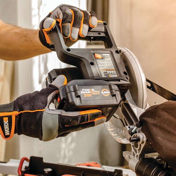 - INCLUDES – Nitro Sliding Compound Miter Saw, (1) 20V 4Ah Power Share PRO Battery (WA3012), 2A Charger (WA3881), 40T TCT blade, work holding lever, work holding wings, dust bag, blade key