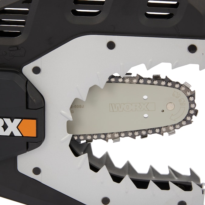 - LIGHT ENOUGH TO USE OVERHEAD – The Worx Jawsaw has an even weight distribution, and the safety jaw guard makes it easy to maneuver around overhead branches