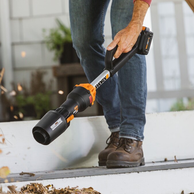 The Worx Power Share 20V leaf jet Blower weighs only 3.7 lbs, but spins out 130 mph of airspeed, at a significant 410 CFM, with 7.3 N of blower force. So you get a stream that is forceful and wide. Worx engineering can take a victory lap with this one. It’s slimmer, easier to operate, more efficient than most leaf blowers on the market, and still churns out enough power to clean larger lawns. Sonic Turbine tech is the main innovation driving all this power out of such a compact design. Air amplifier tech draws more air into the turbine than ever before, allowing it to push more and faster air out the other side. What’s more, this tool runs on a brushless motor, which are more efficient than the motors in leaf blowers from just a few years ago. They use less battery while providing even more power, and have a longer runtime. Plus, they extend the life of the blower overall. Additionally, because this tool is lightweight, you’ll get more done in less time because it’s so simple to blow your lawn clear of leaves of debris. Now nearly anyone in the family can help out with the chores.