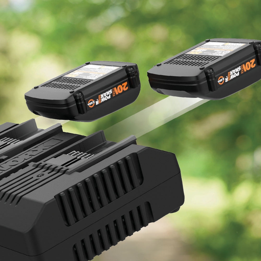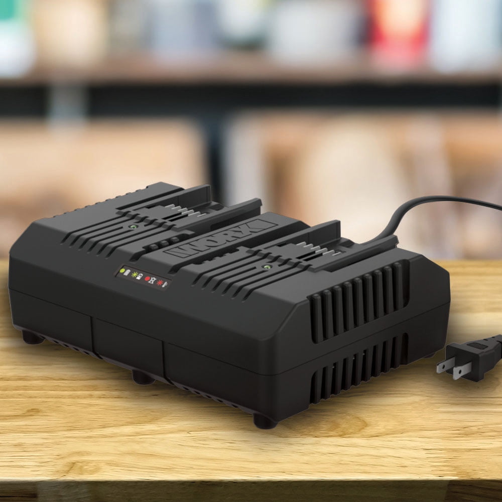 The WORX dual port quick charger is for use with 18/20-Volt Lithium batteries Dual port allows for two charging modes that allows one battery to quickly charge or charge both within 2 hours Long cord provides flexibility to charge your battery in various locations Charge indicators for each battery port Compatible with battery model WA3512.1,WA3520, WA3522, WA3525, WA3544, WA3575, WA3578