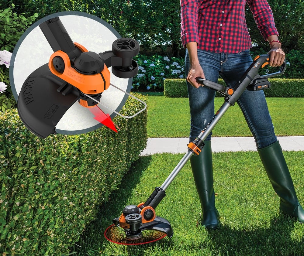 You get two batteries and 2-tools-in-1 when you buy the Worx 12”-20V Grass Trimmer/Edger. Plus, this model comes with a 1-hour quick charger, so you’ll always have more than enough juice to get lots of trimming and edging done, and you can keep your other Worx tools charged and ready to go, too. Switch from an edger to an in-lined wheeled edger with just the turn of the head. The dual rubber wheels keep your edges smoot and straight and make this tool easier to push along than other edgers. It’s only 5.3 lbs, and the adjustable handle and ergonomic grip make this tool comfortable to use all afternoon. The 12” cutting diameter is wide enough to give you smooth, full passes, but it’s not too large so that you can still trim in-between trees and landscaping. A 10-foot spool of the innovative DNA2 DoubleHelix line is included. This string has been engineered with a specially designed aerodynamic, oval shape that reduces drag and slices through grass for a crisp, clean cut. And with over 100 lbs of tensile strength, it lasts longer and performs better than other trimmer string. Not only is this a multi-functional grass trimmer and edger, but because it comes with 2 batteries and a quick charger, you can make it a tool to grow an entire collection around. These batteries power every tool on the Worx Power Share platform, so the next time you buy a cordless Worx tool, you probably won’t need to buy another battery.