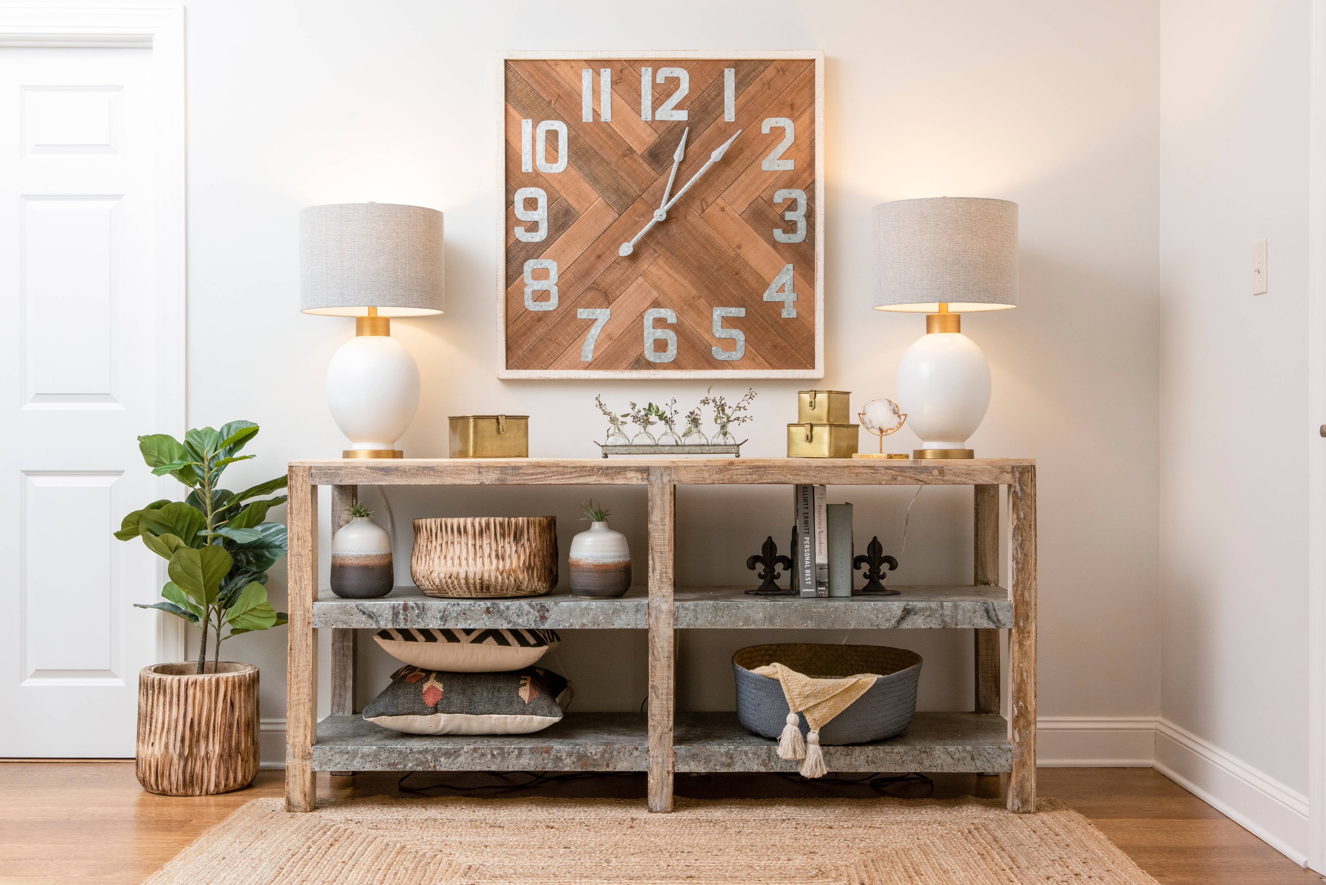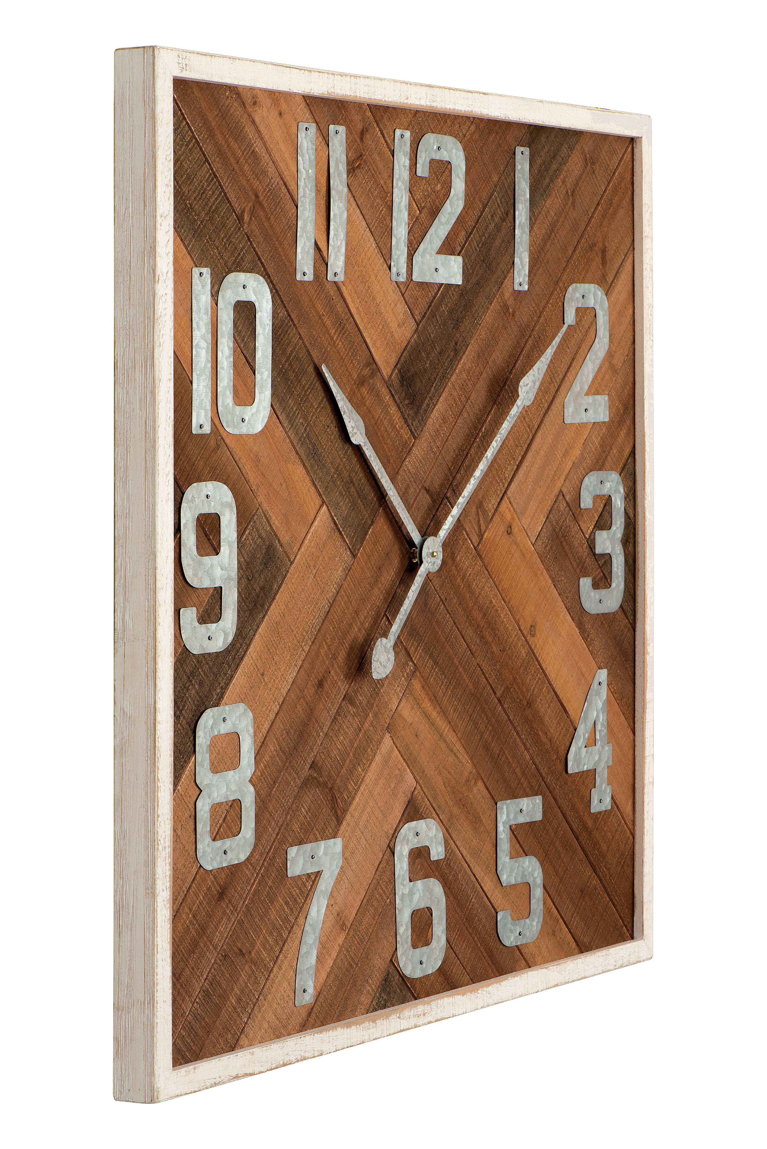 Featuring metal cut numbers over a gorgeous wood face, this Woven Paths Square Stained Wood Wall Clock shows creative individuality. Each number is cut to perfection and attached with matching metal screws. Adding even more character is a combination of light and dark wood pieces to create designs within the face of the clock. For the person who appreciates unique creations, this is a must for their home or office. The Woven Paths collection blends rustic farmhouse style with bohemian accents perfect for any season. This collection makes it easy and affordable to brighten up any room with cozy, vibrant, quality pieces.