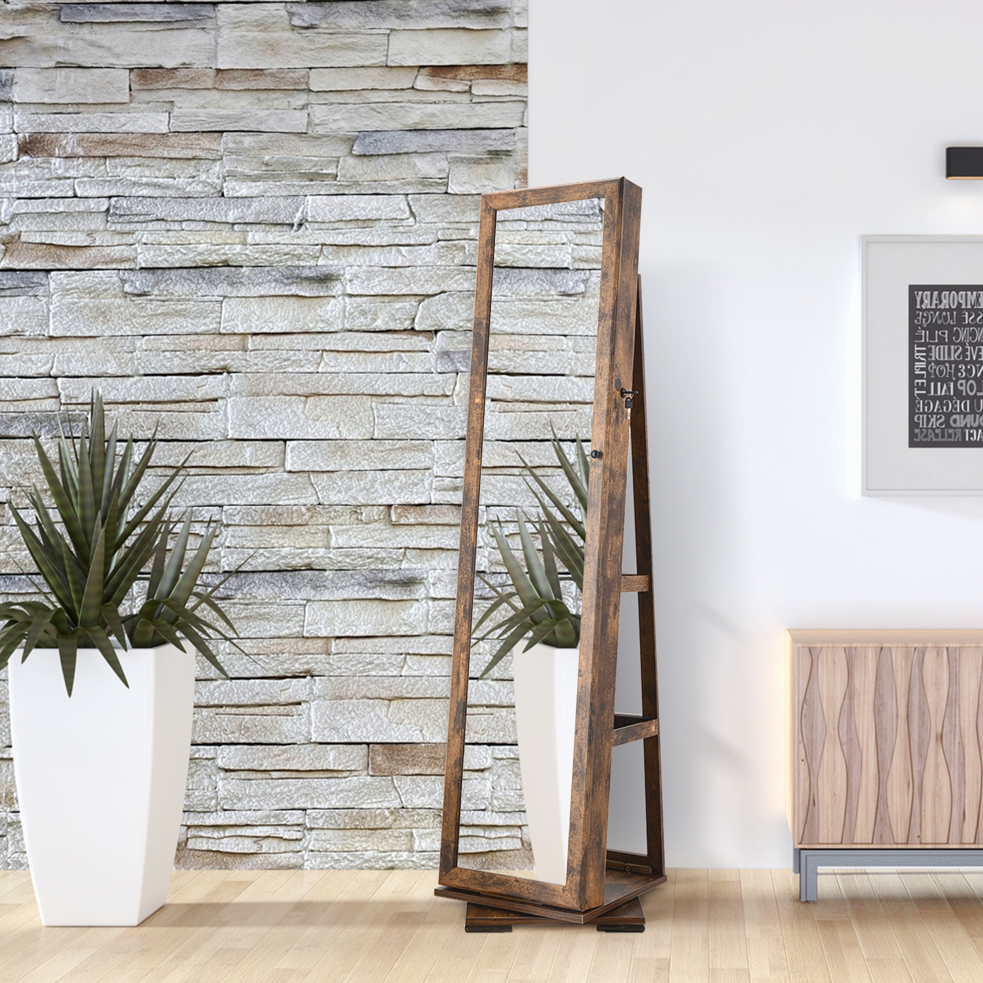 Woven Paths 360 Spinning Lockable Jewelry Armoire with Free-Standing Mirror, Brown