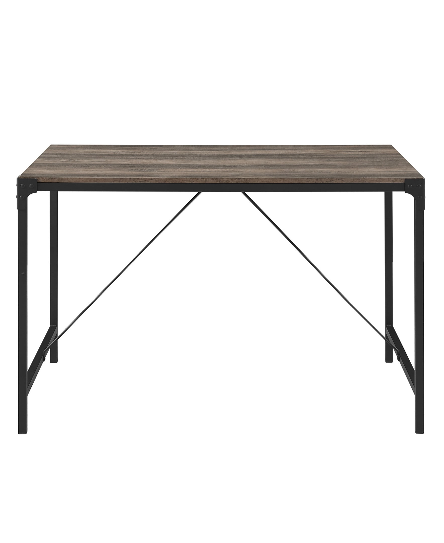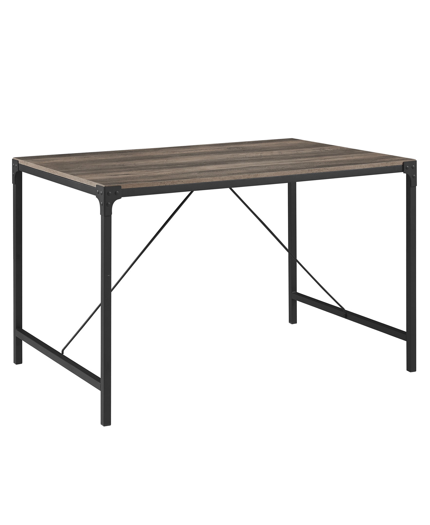 Woven Paths 48 Inches Angle Iron Rustic Wood Dining Table, Grey Wash: Industrial style Powder-coated metal legs and corner details Durable, long-lasting construction great for everyday use Perfect for your kitchen or dining room High-Grade MDF, Powder-Coated steel, Durable Laminate with melamine 30″ H x 48″ L x 32″ W 45 lbs Ships ready-to-assemble with step-by-step instructions