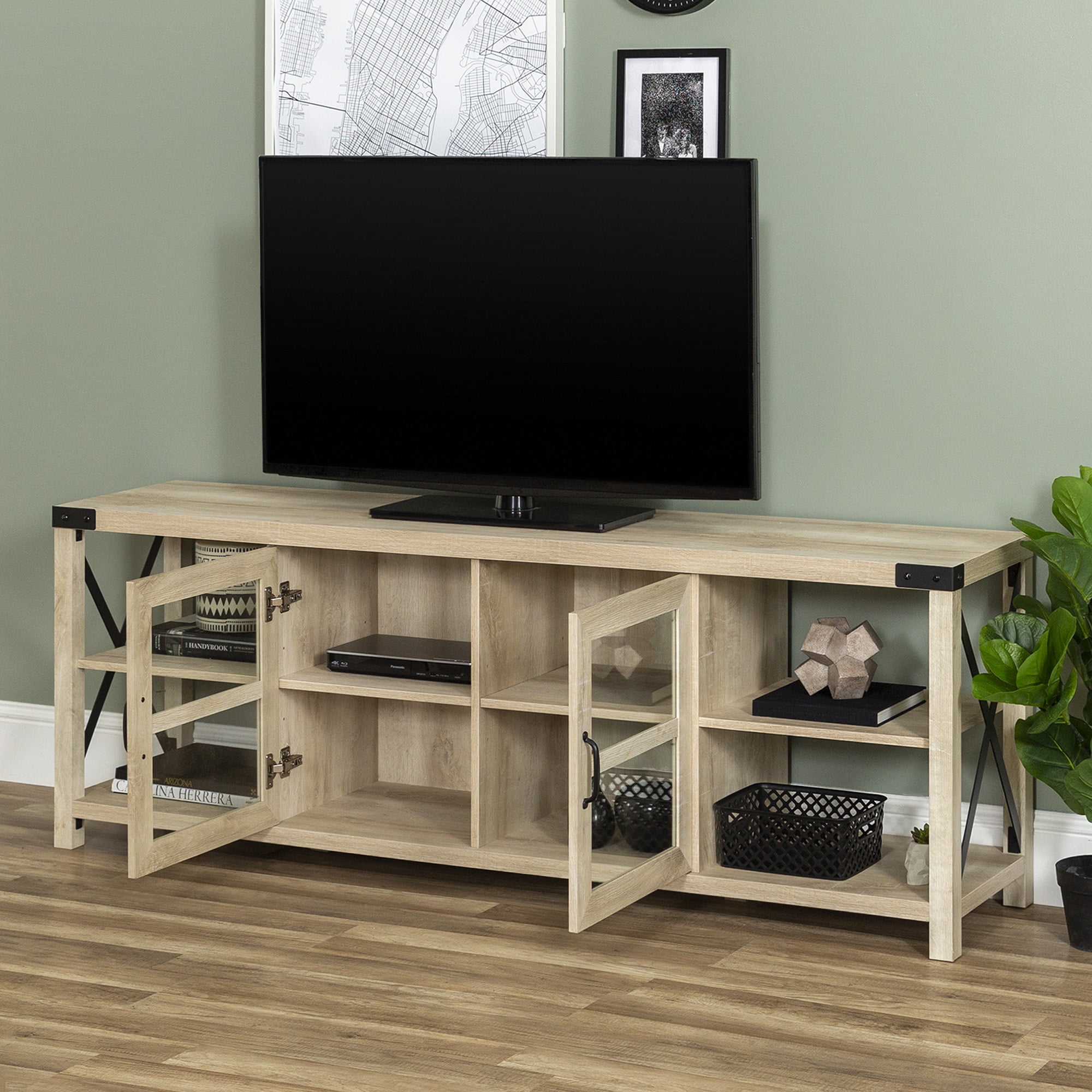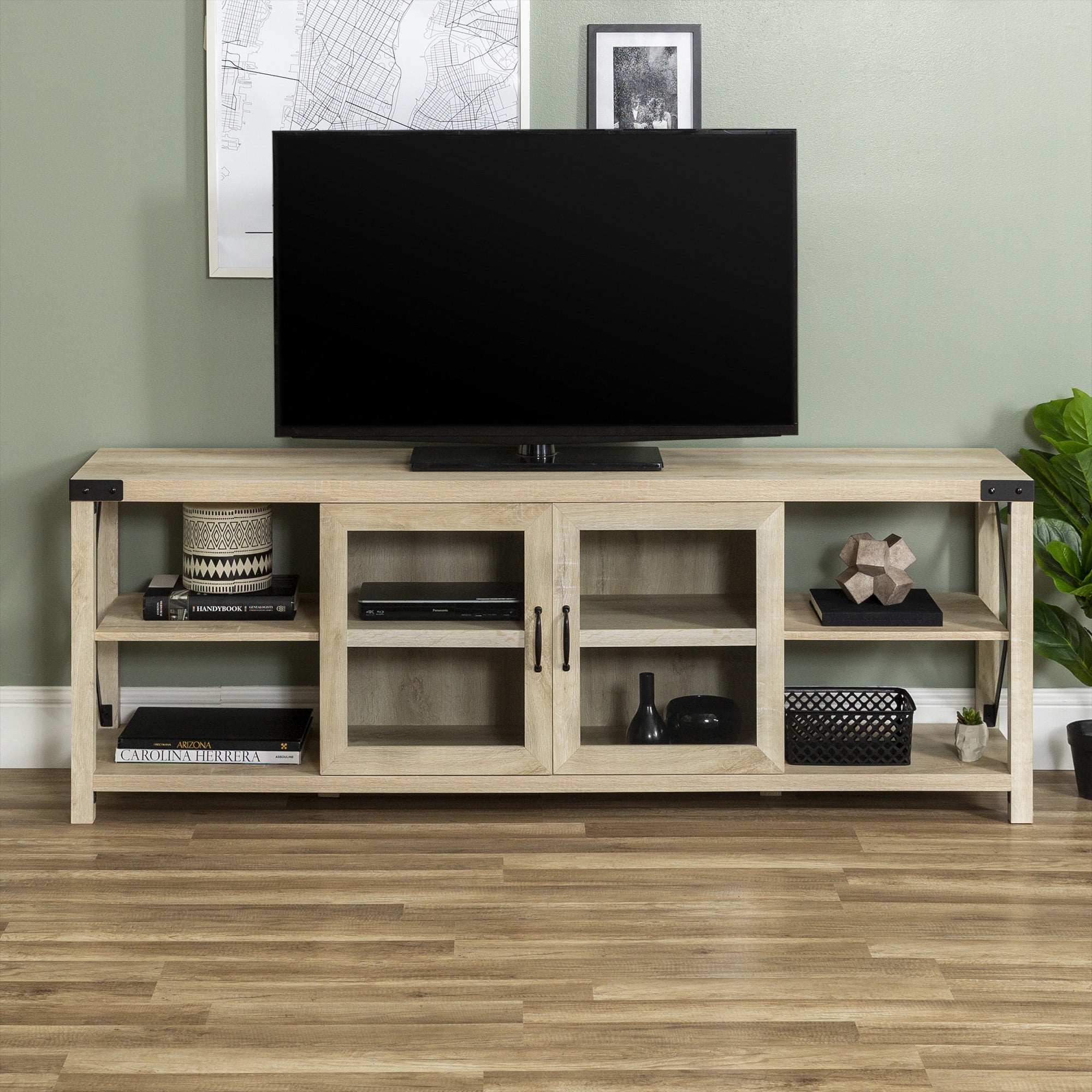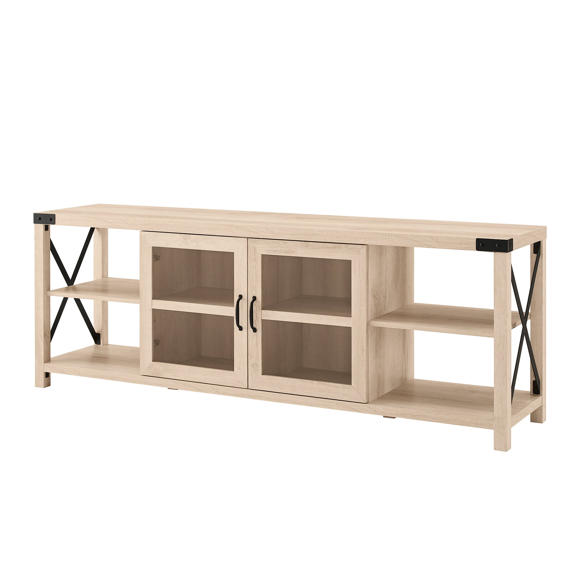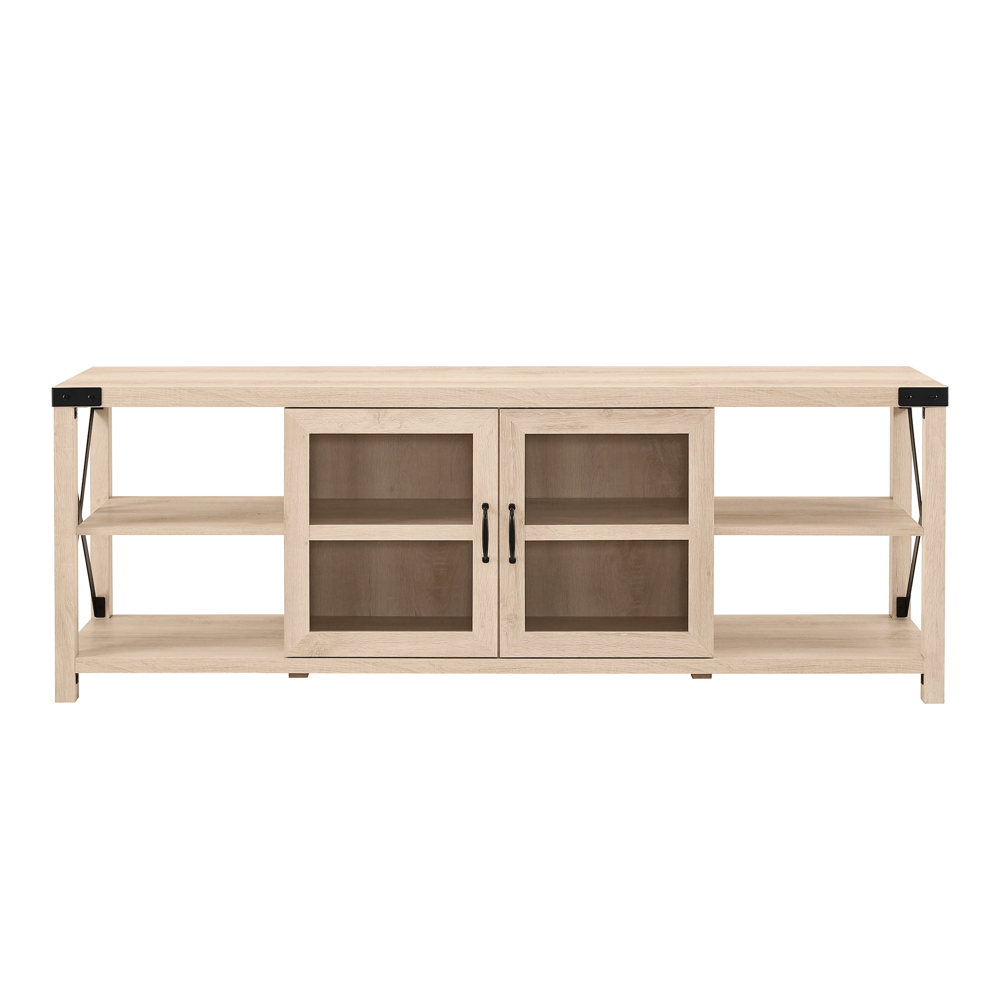 Woven Paths Farmhouse 2-Door Metal X TV Stand for TVs up to 80″, White Oak