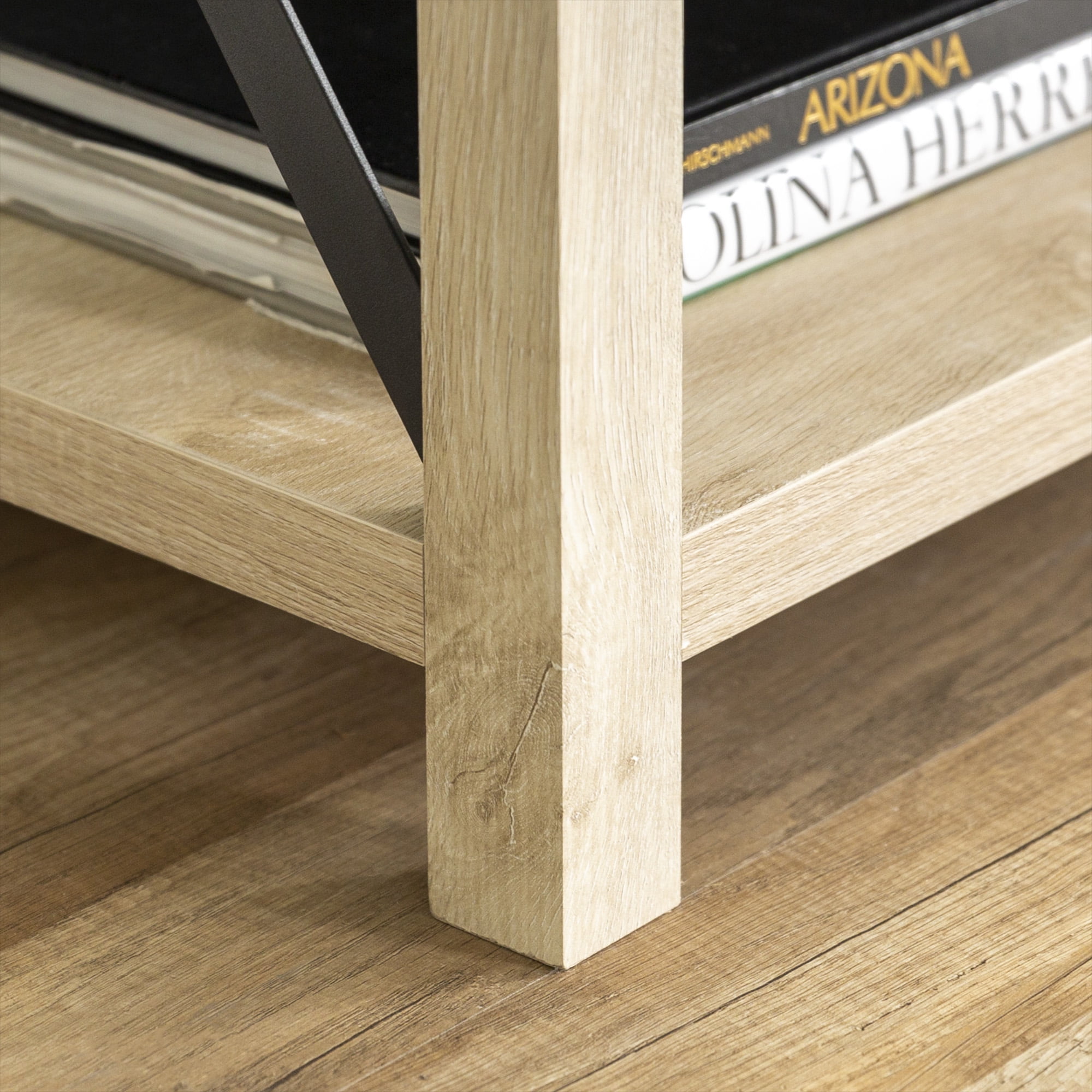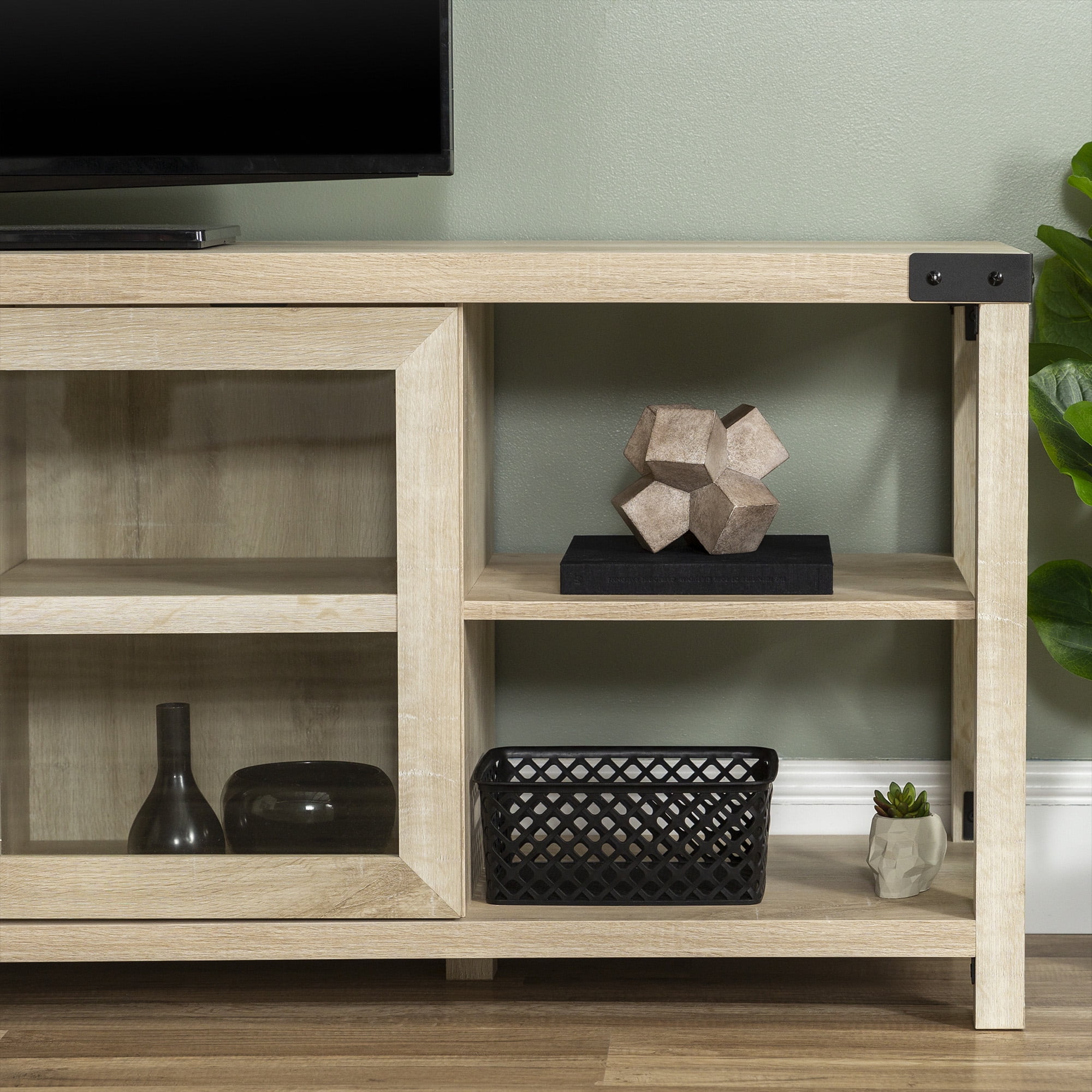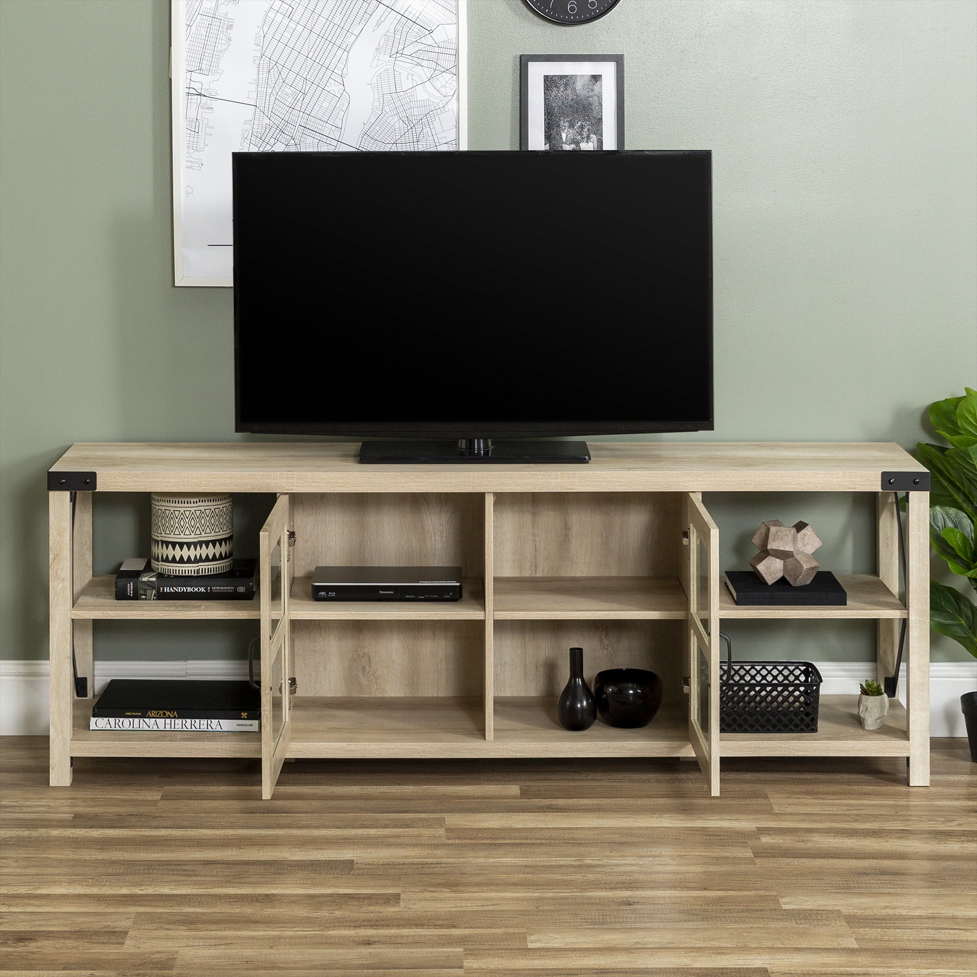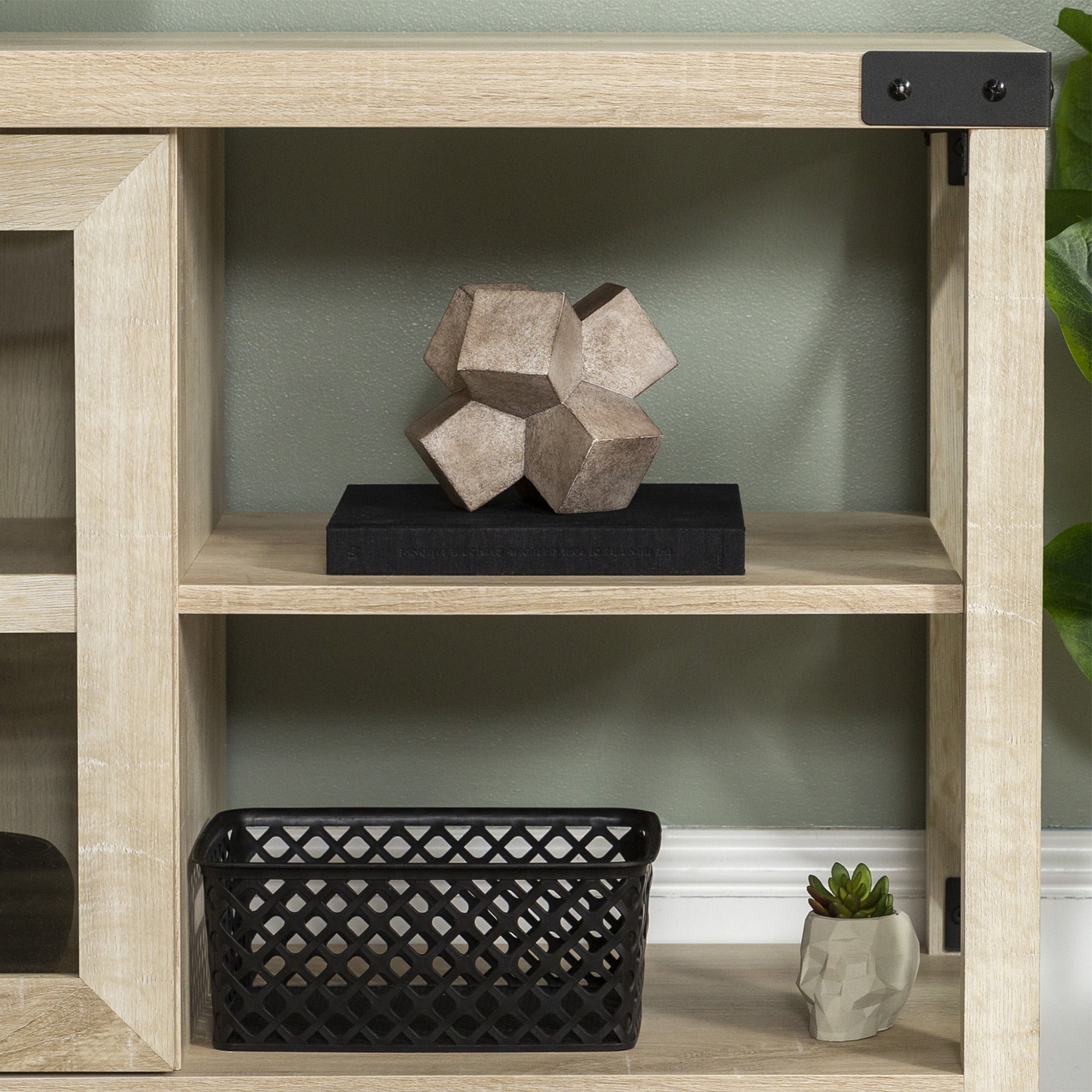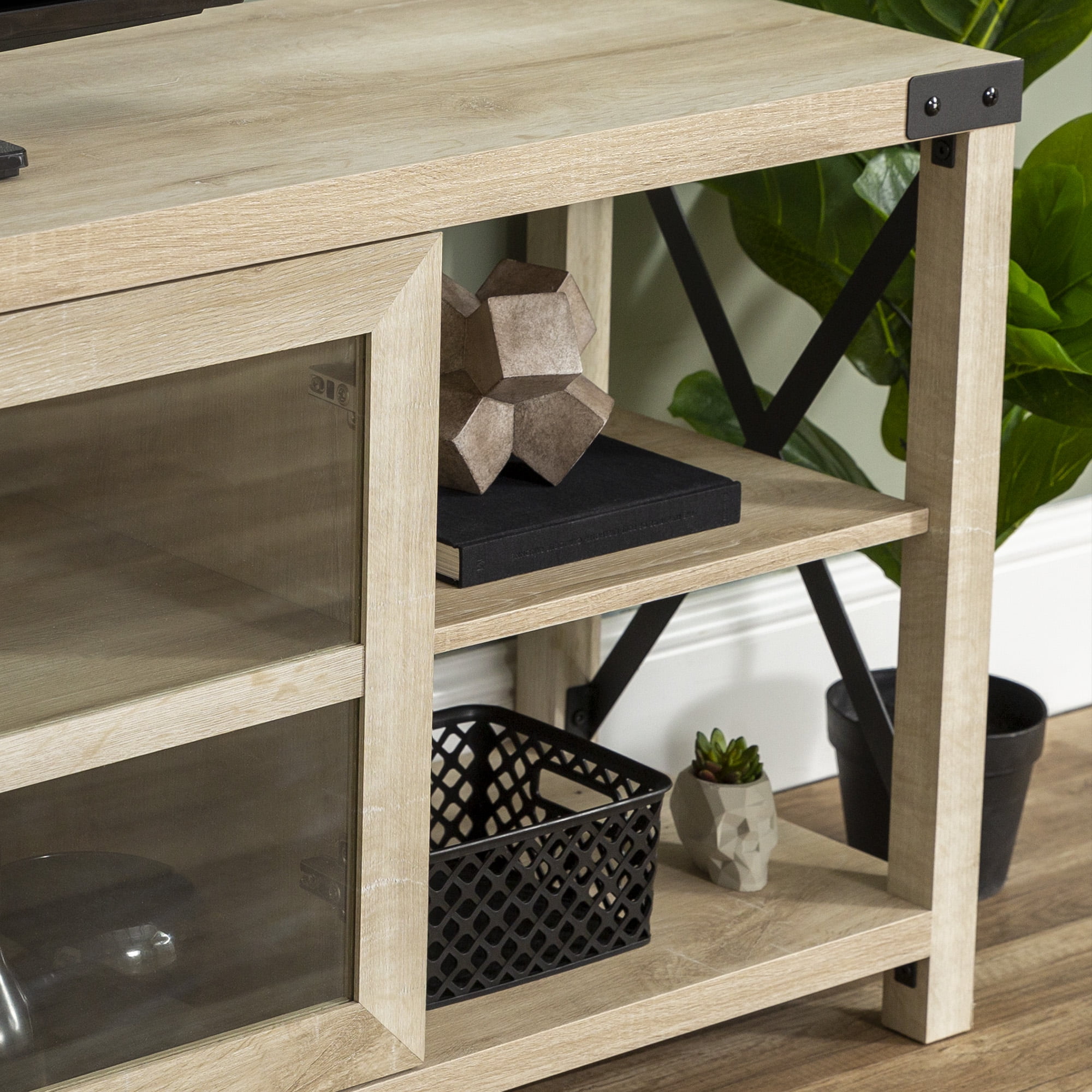 Woven Paths Farmhouse 2-Door Metal X TV Stand for TVs up to 80″, White Oak