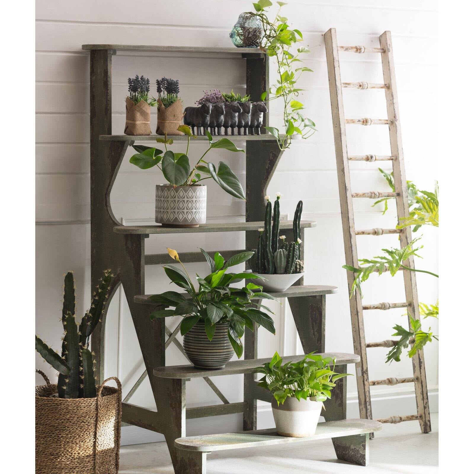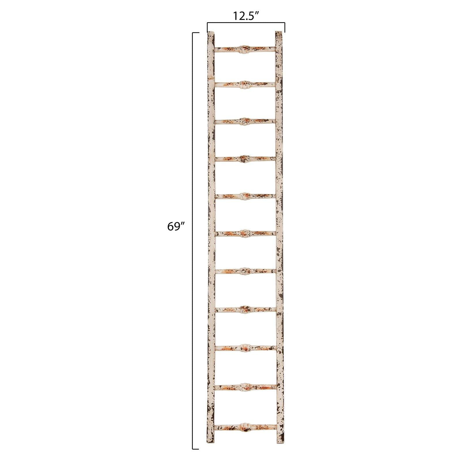 Woven Paths Farmhouse Distressed White Wood Ladder