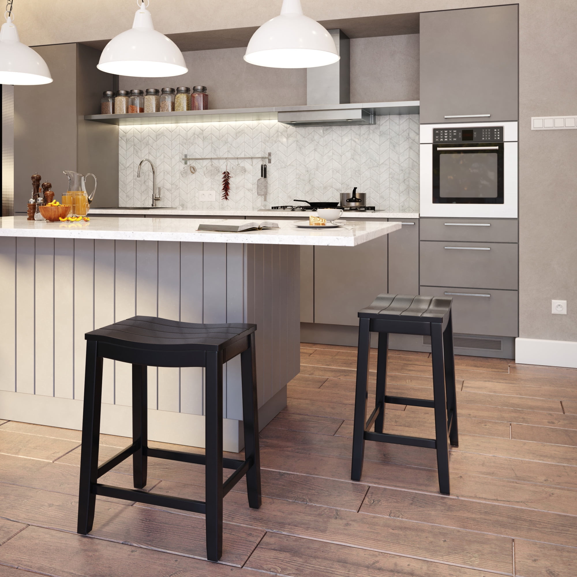 Woven Paths Fiddler Backless Wood Counter Height Stool, Black: Classic backless saddle wood counter height stool with grooved seat details Sturdy wood frame manufactured from rubberwood and MDF in black Perfectly placed footrest provide superior comfort Overall Dimensions: 24″ H x 18″ W x 12″ D Item will ship in one box Works best with counters that are 34 – 38 inches in seat height Dust and polish with non-abrasive cleaners Recommended Weight Limit: 250 lbs Residential use only