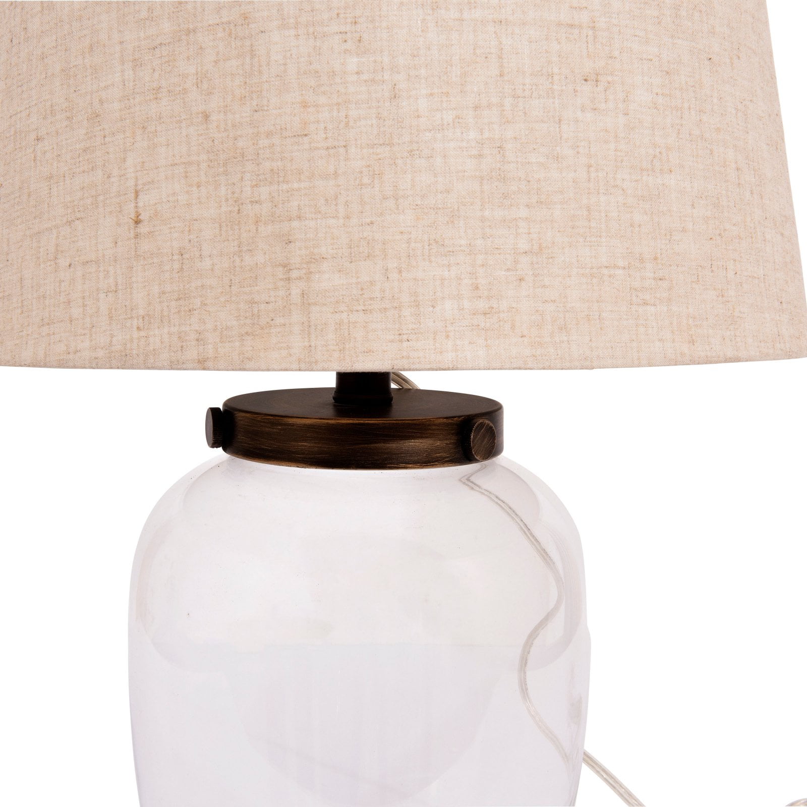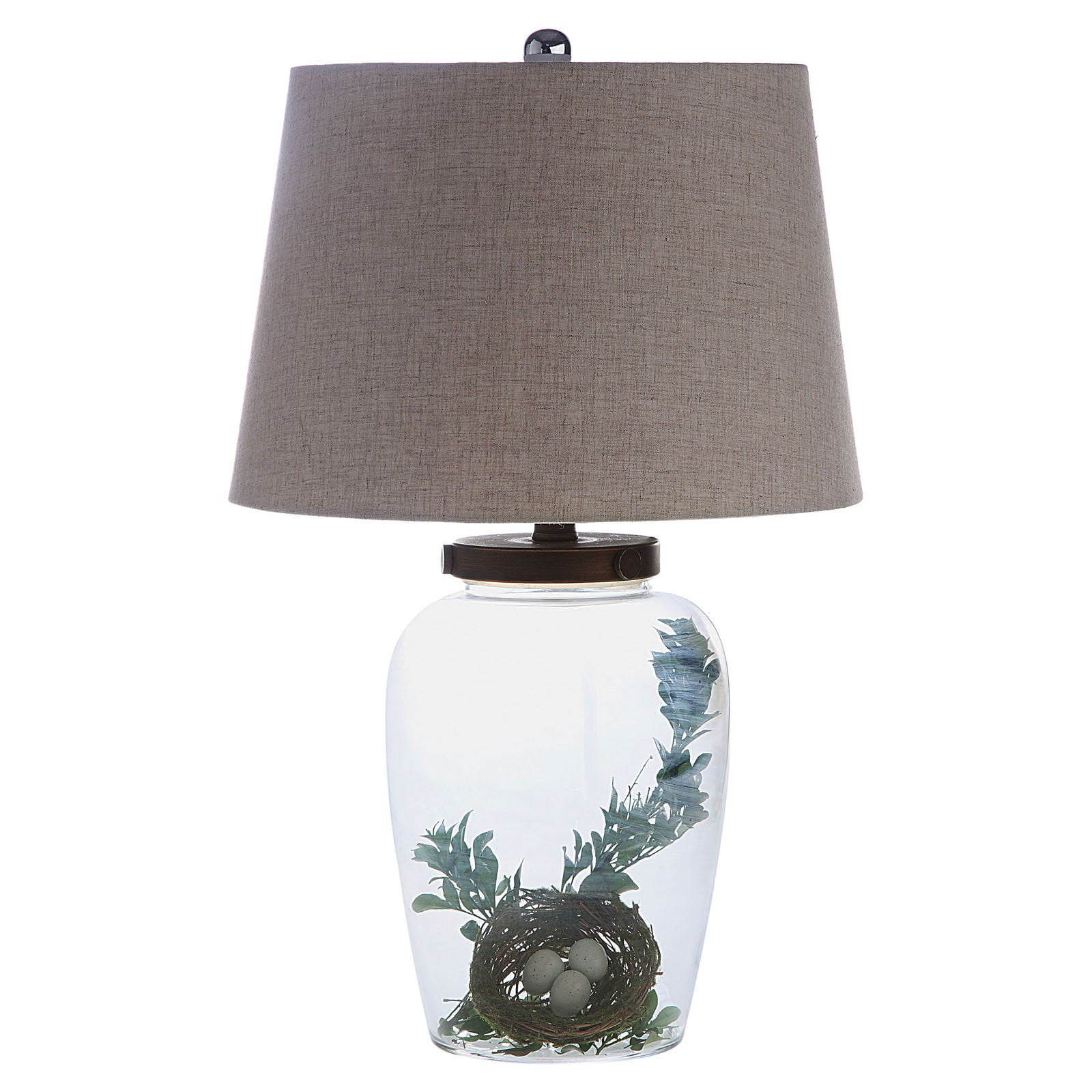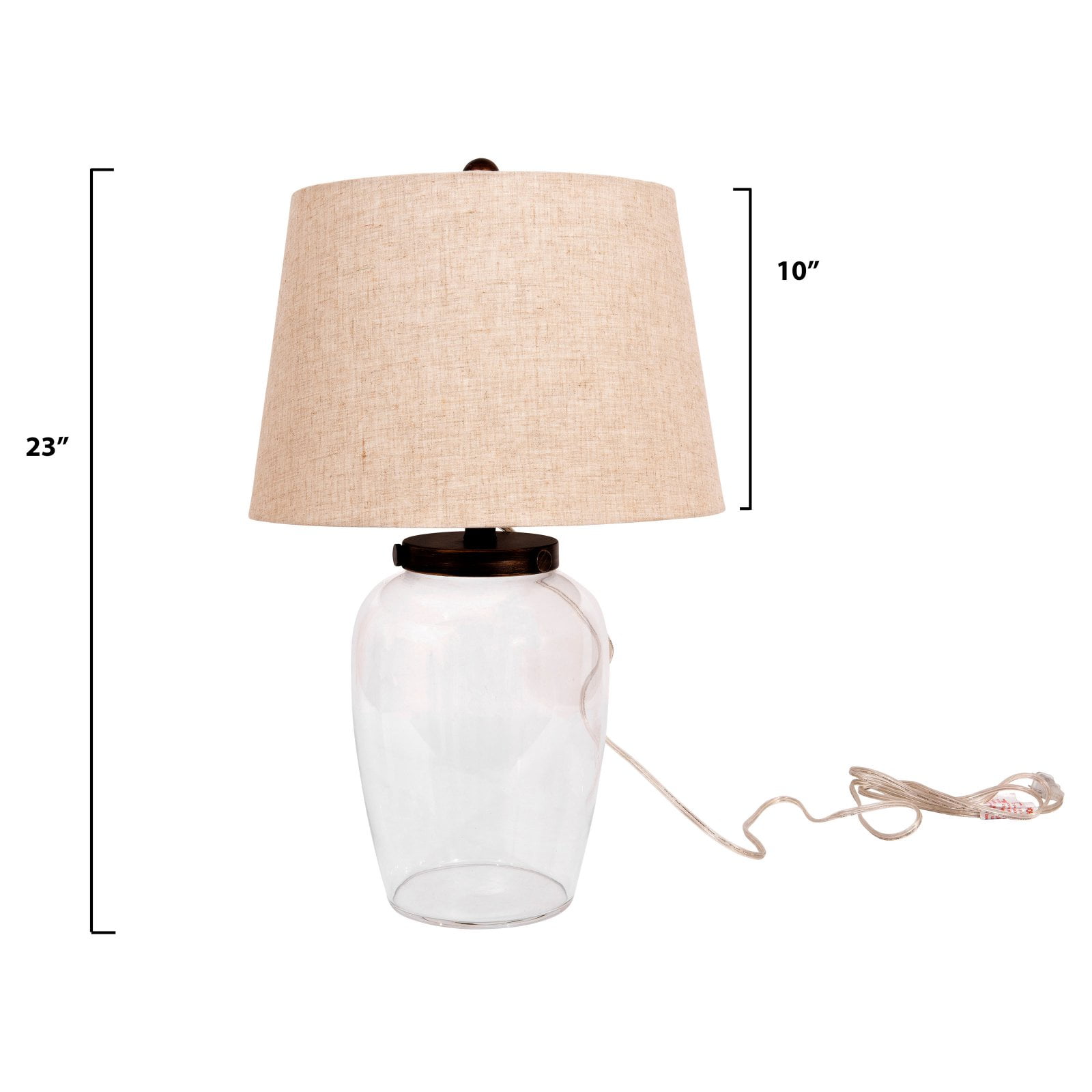 Create the exact look you want with the Woven Paths Fillable Clear Glass Table Lamp with Iron Accent and Linen Shade. Boasting a unique, customizable design, sleek silhouette, and modern flair, this accent lamp makes a brilliant complement to your room’s contemporary decor. A tan linen shade completes the look and creates the perfect ambiance. Insert glass stones or marbles, change it at Christmas and insert red and green garland or Thanksgiving with decorative fall leaves. If you change the color or theme of your room, this lamp can change right along with it. The Woven Paths Fillable Clear Glass Table Lamp with Iron Accent and Linen Shade is a fun and effortless way to add style as well as far-reaching illumination throughout your living room, office, or bedroom. The Woven Paths collection blends rustic farmhouse style with bohemian accents perfect for any season. This collection makes it easy and affordable to brighten up any room with cozy, vibrant, quality pieces.