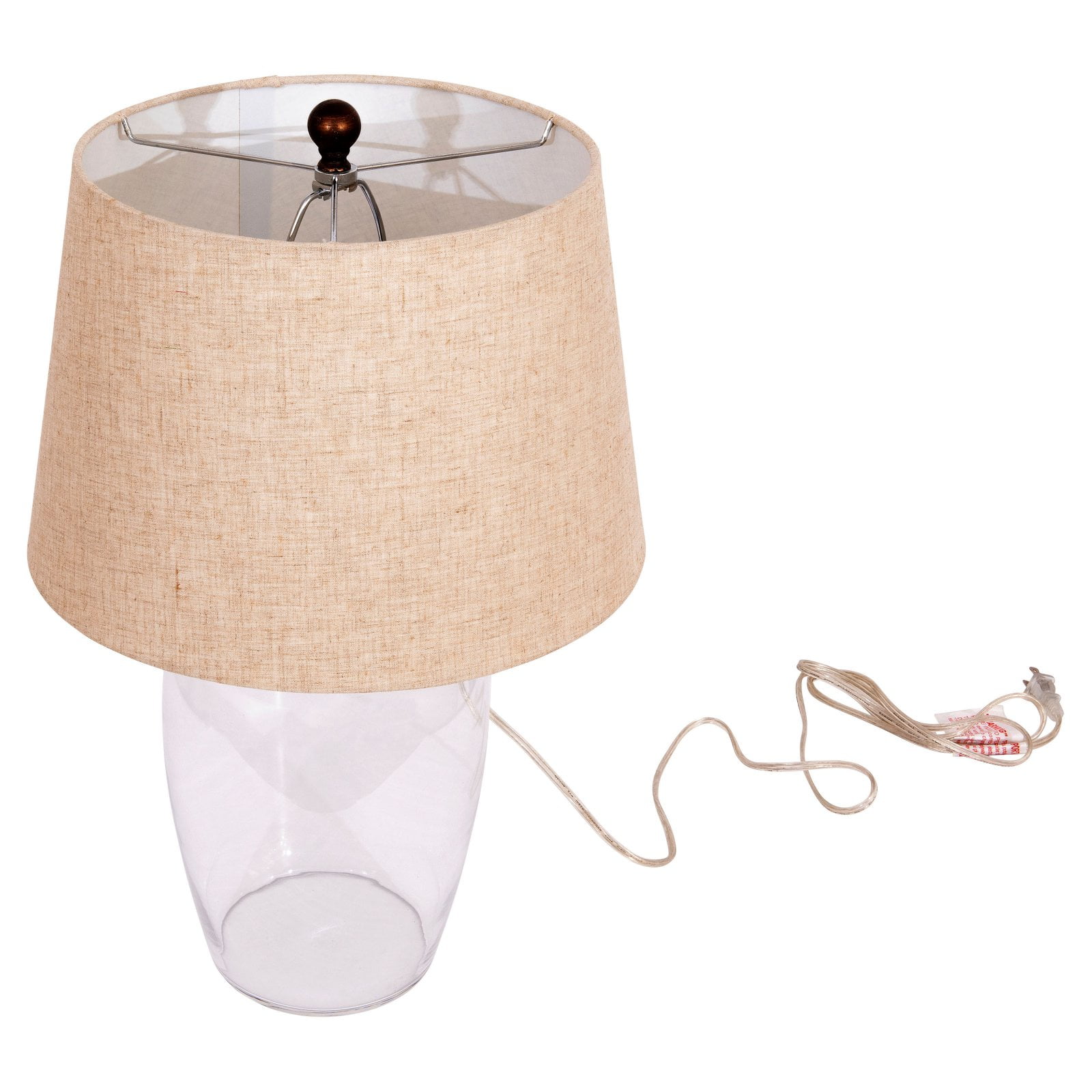 Woven Paths Fillable Clear Glass Table Lamp with Iron Accent and Linen Shade, 24″: Fillable design allows you to create the exact look you want Boasts a sleek silhouette and modern flair Perfect complement to your home’s contemporary decor Includes a tan linen shade to complete the look Fun and effortless way to add style to your living room, office or bedroom Just insert glass stones or marbles to customize the lamp’s look