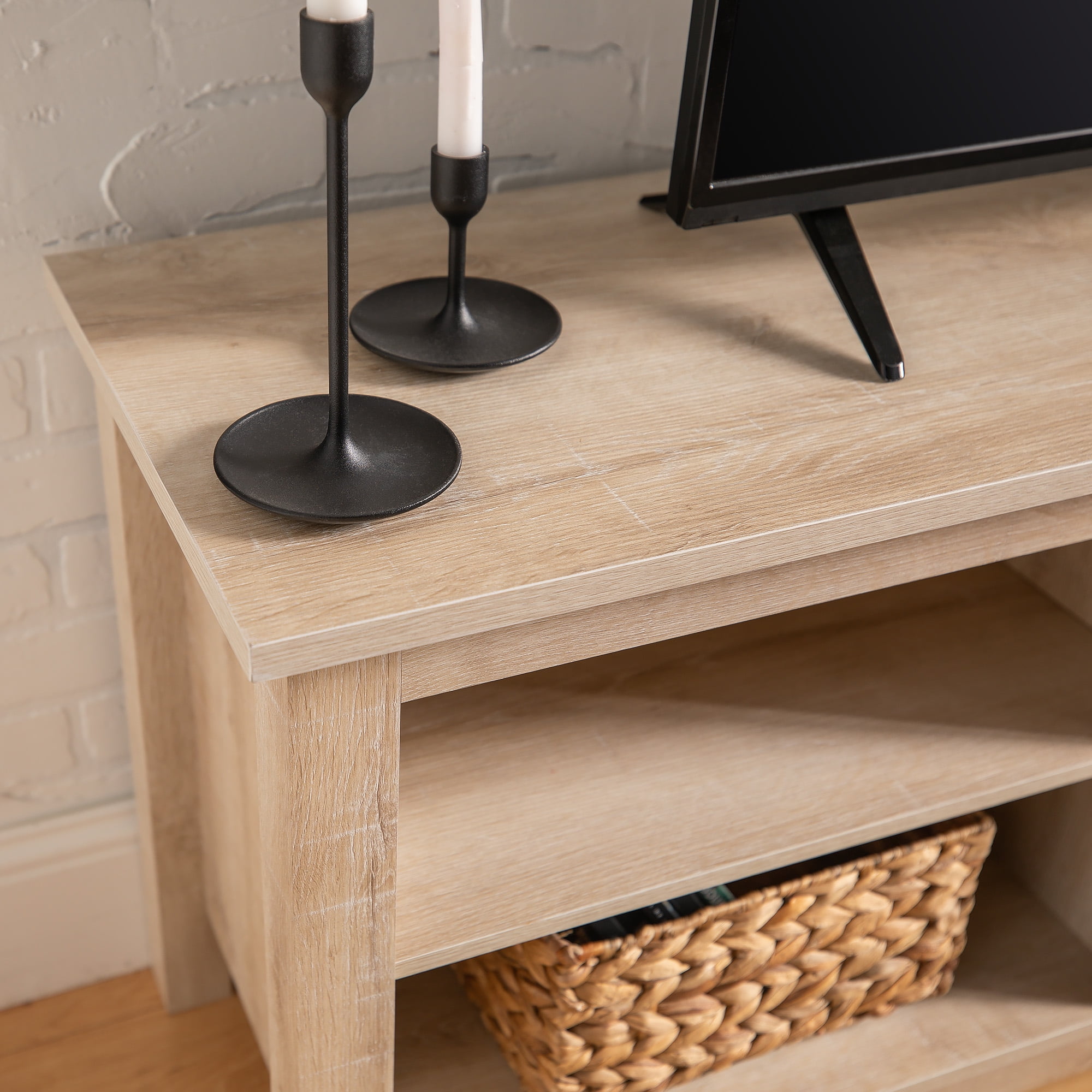 Woven Paths Open Storage TV Stand for TVs up to 80″, White Oak