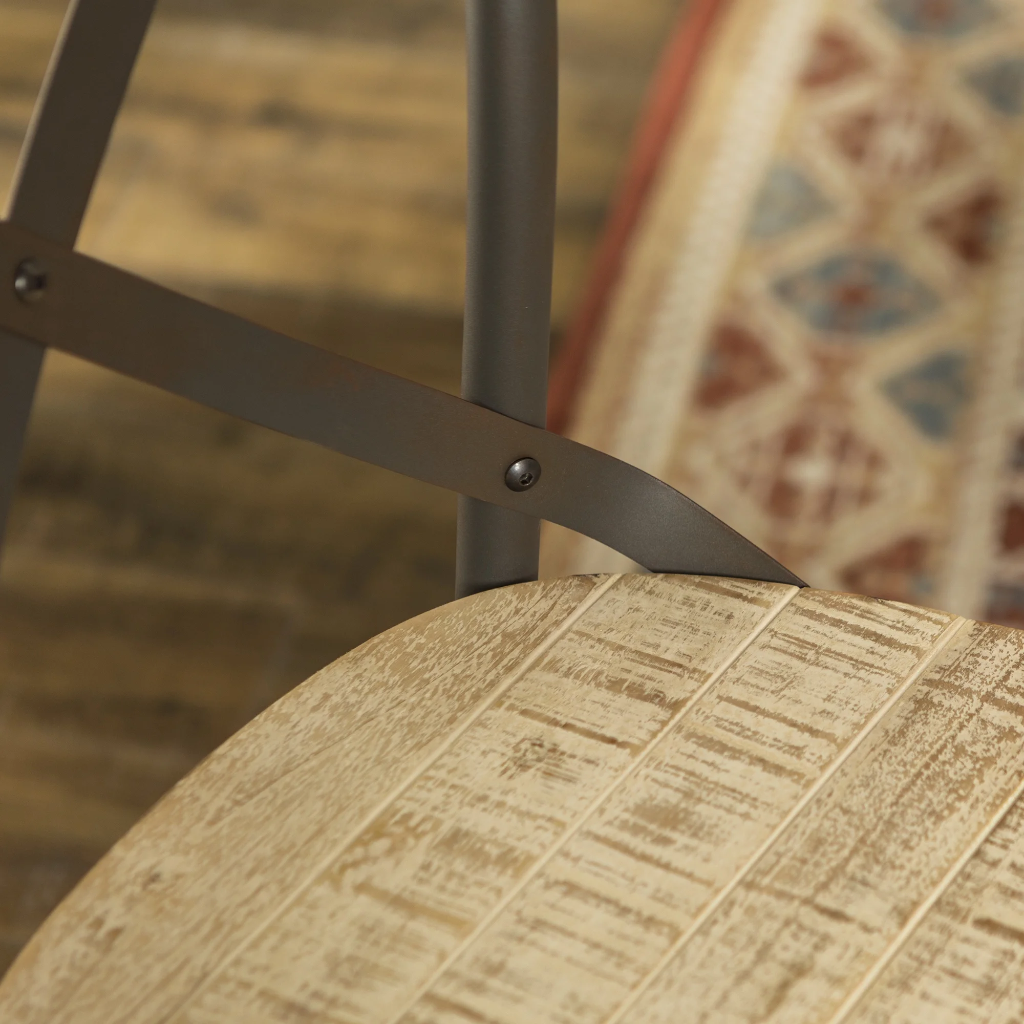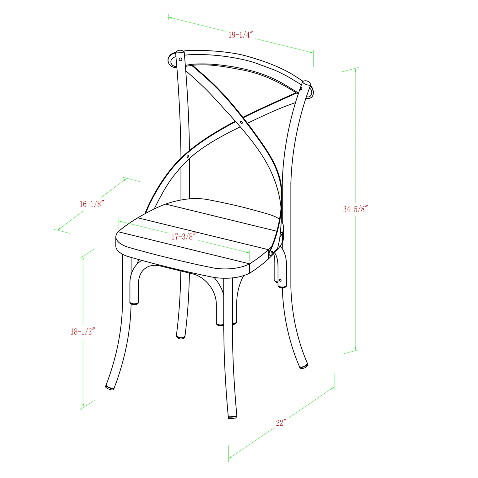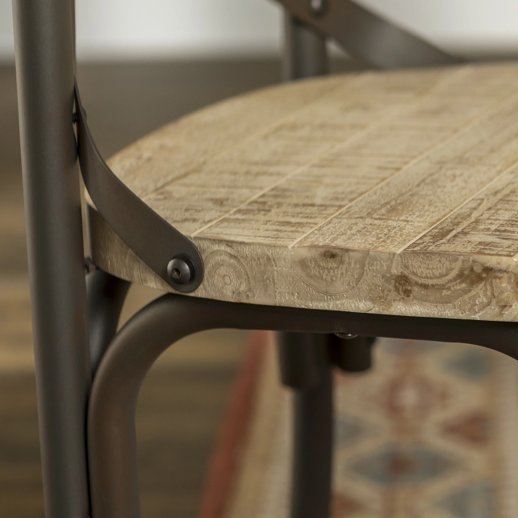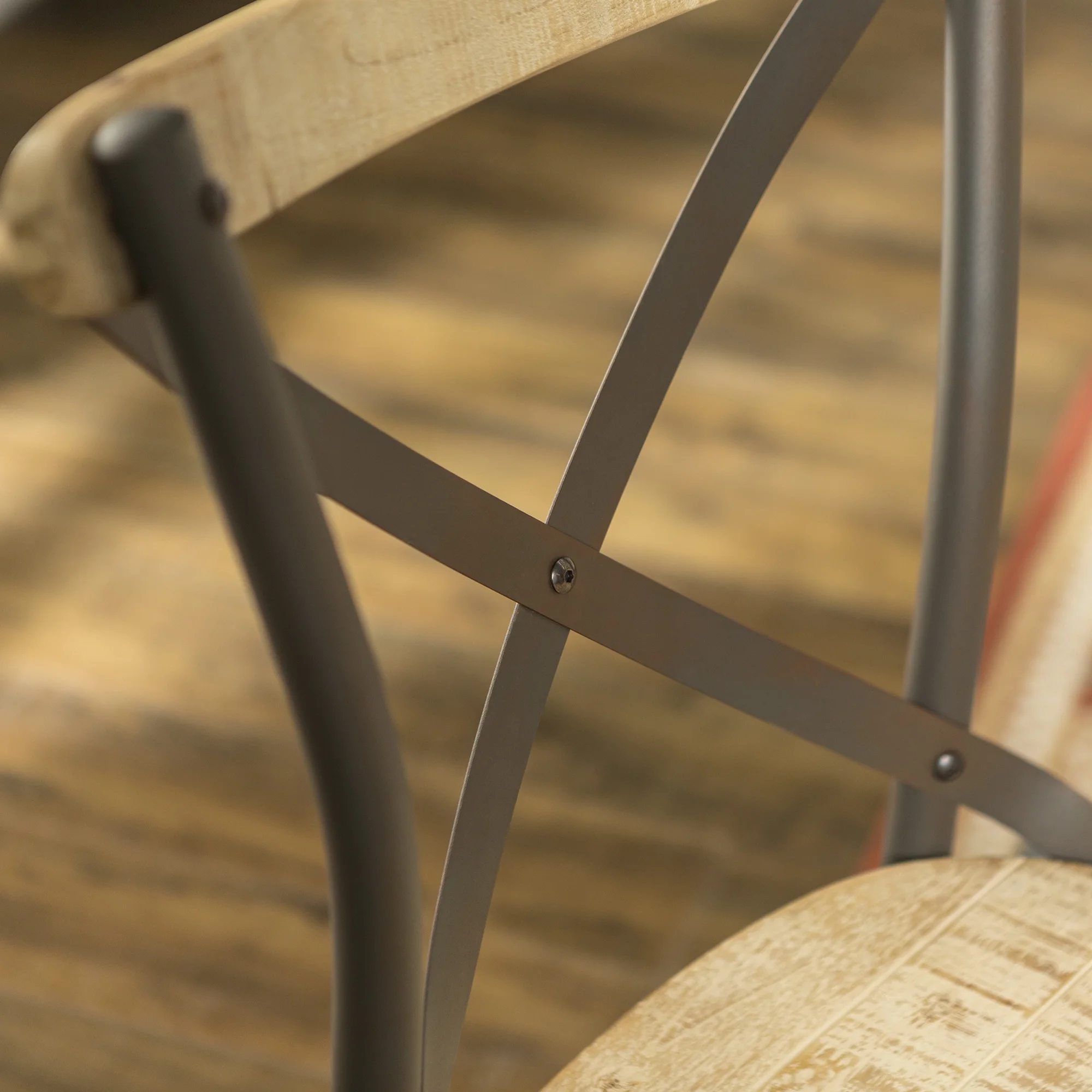 Give your dining room or kitchen beautiful seating with this set of two Woven Paths Rustic Solid Wood and Metal Dining Chairs. Sit comfortably in their strong, antiqued metal frames with cross backs and distressed solid wood accents. The reclaimed, industrial design creates the perfect centerpiece for any dining room, kitchen, or sitting area. Bring rustic charm to your home with the set of two Woven Paths Rustic Solid Wood and Metal Dining Chairs. The Woven Paths collection lends rustic farmhouse style with bohemian accents perfect for any season. This collection makes it easy and affordable to brighten up any room with cozy, vibrant, quality pieces.
