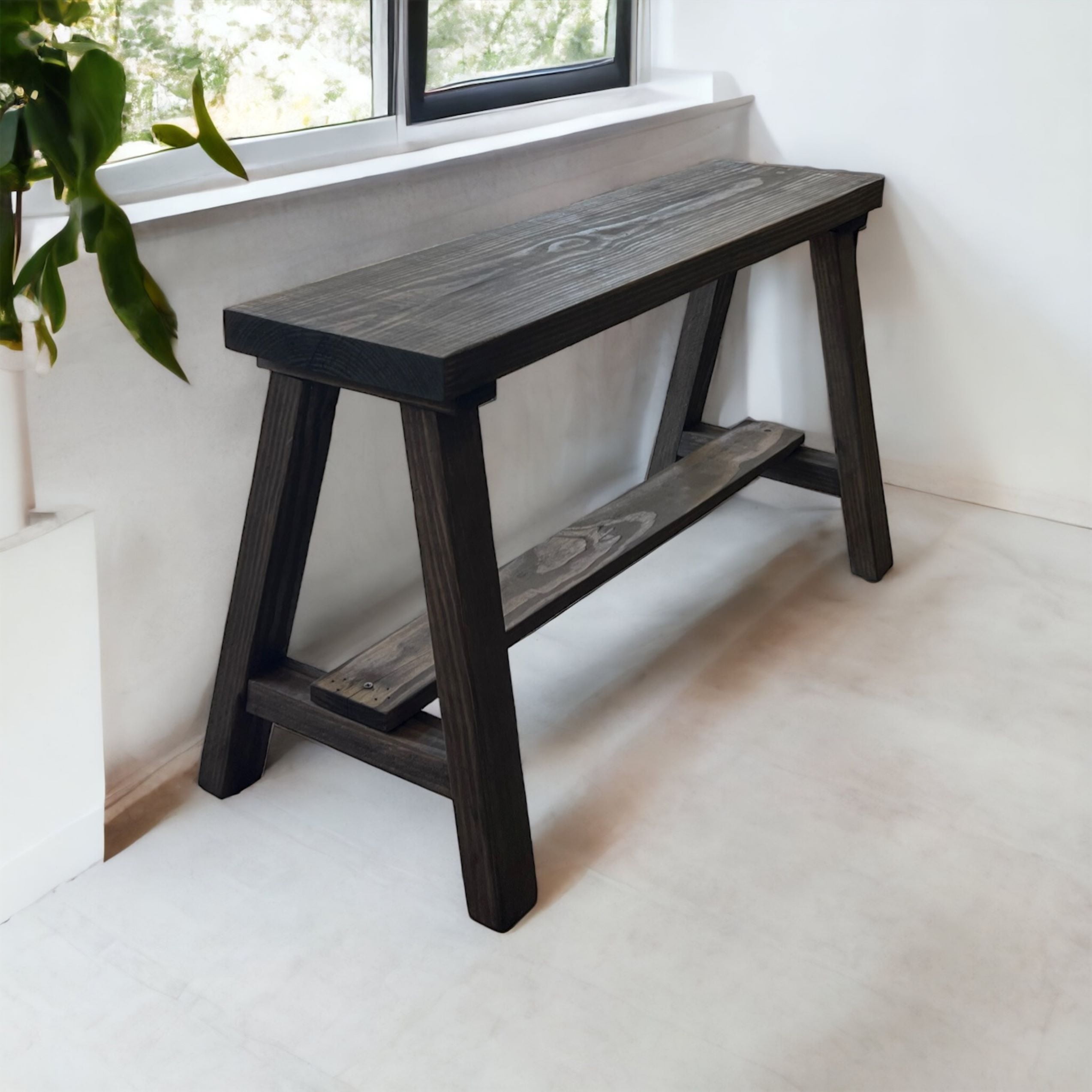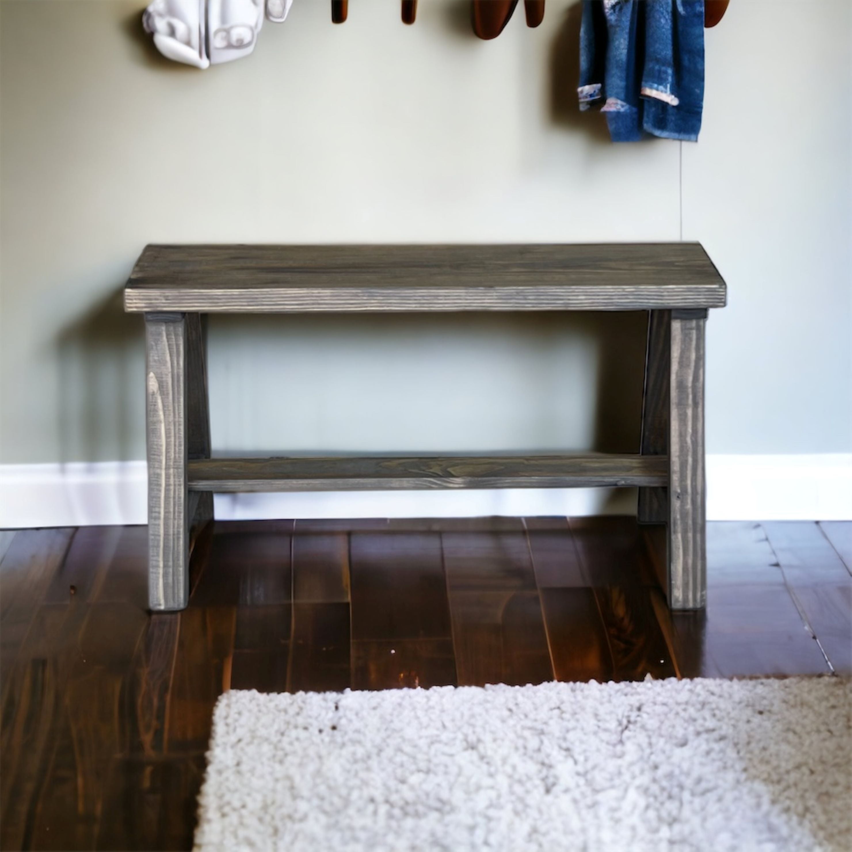 Woven Paths Solid Pine wood Entryway Bench, Dark Brown Sturdy, solid wood construction adds contemporary farmhouse style Clean lines with a touch of rustic charm Adds extra seating for guests with a simple home upgrade Entry bench with a simple design Fully assembled and ready to use