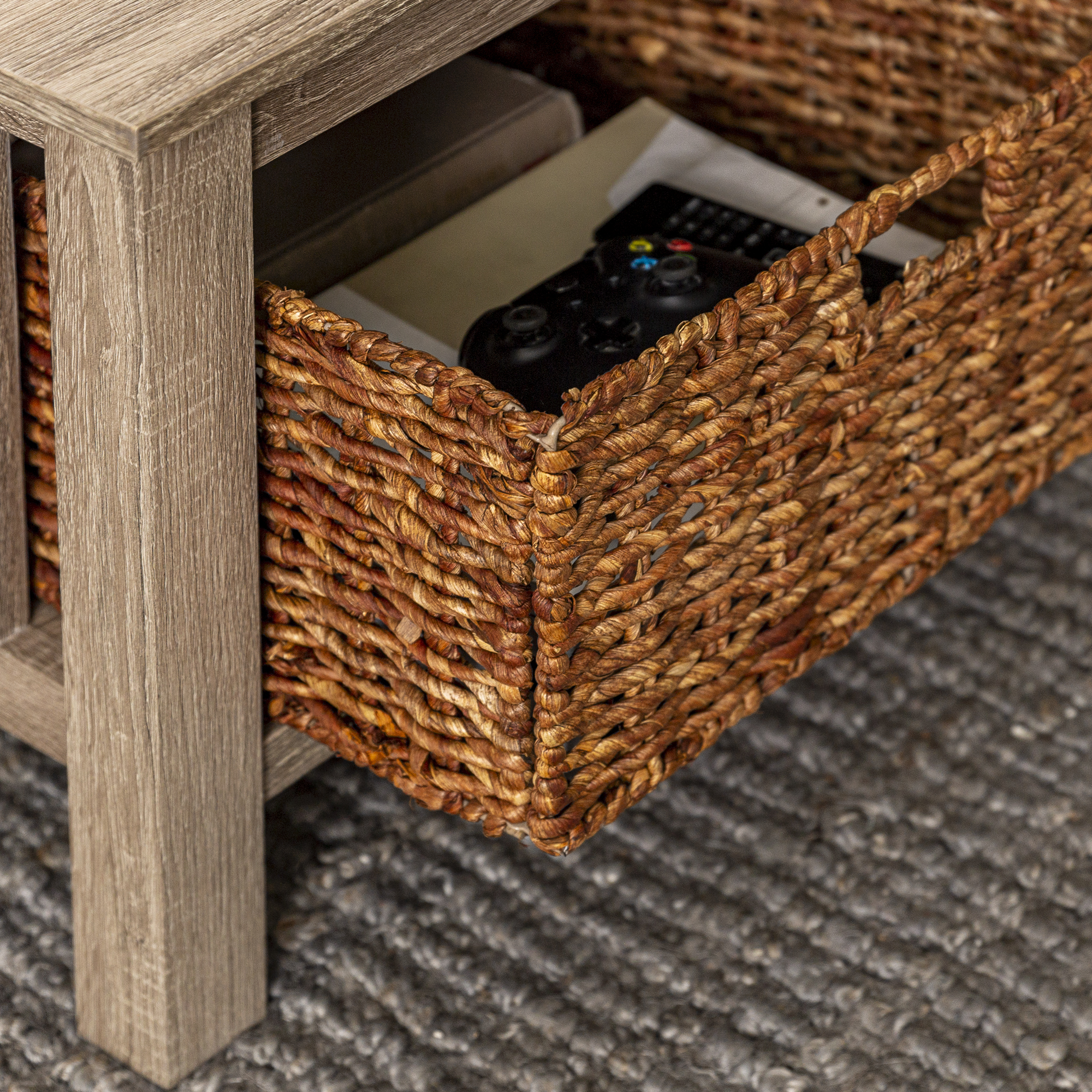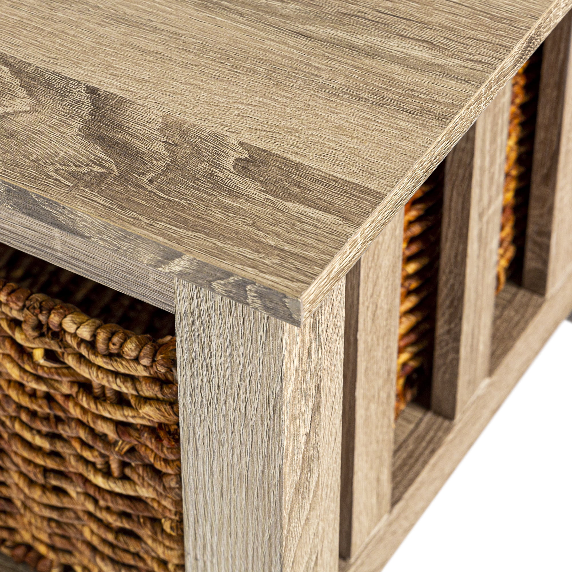 Woven Paths Traditional Storage Coffee Table with Bins, Driftwood