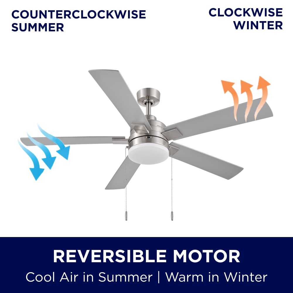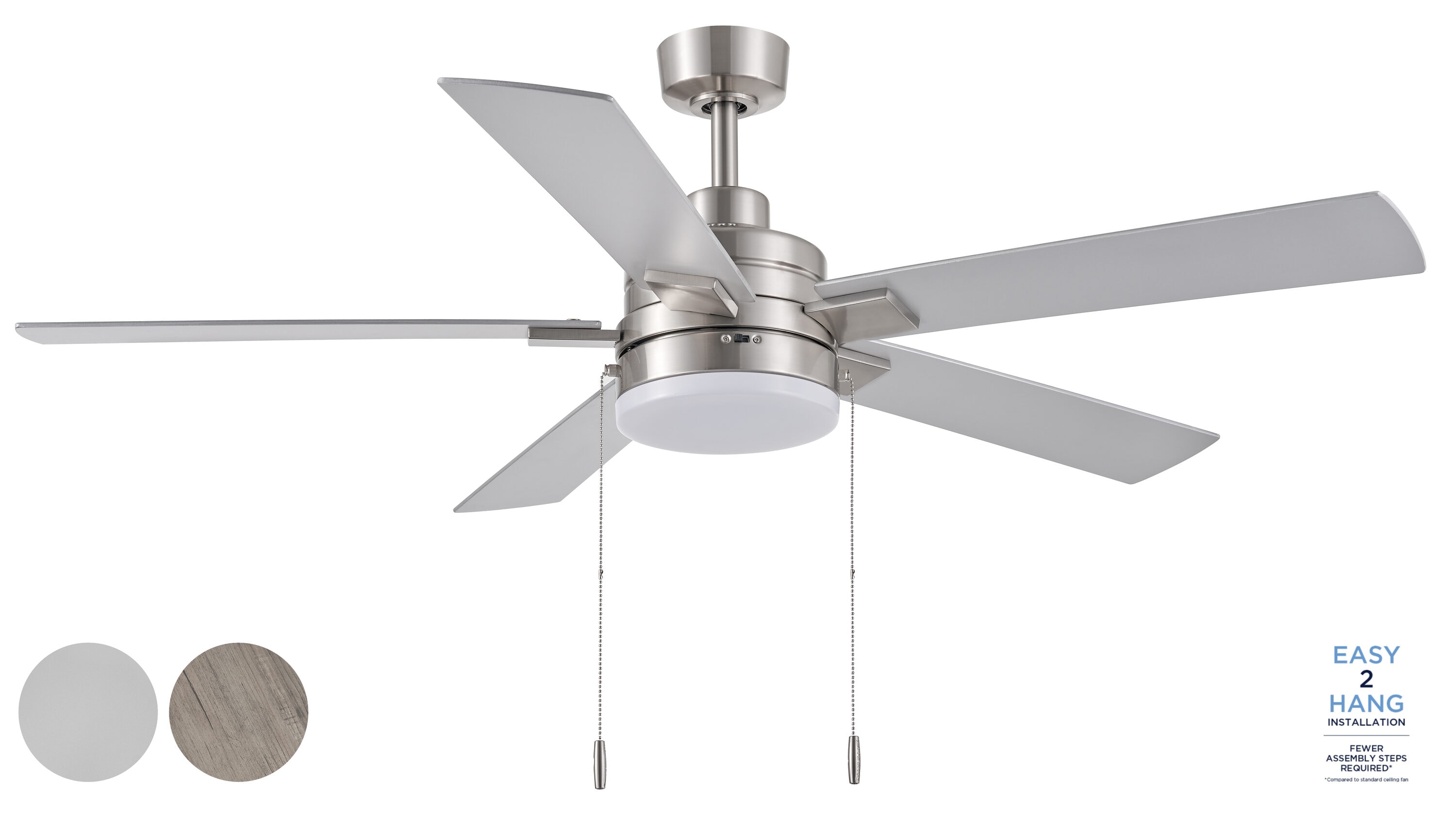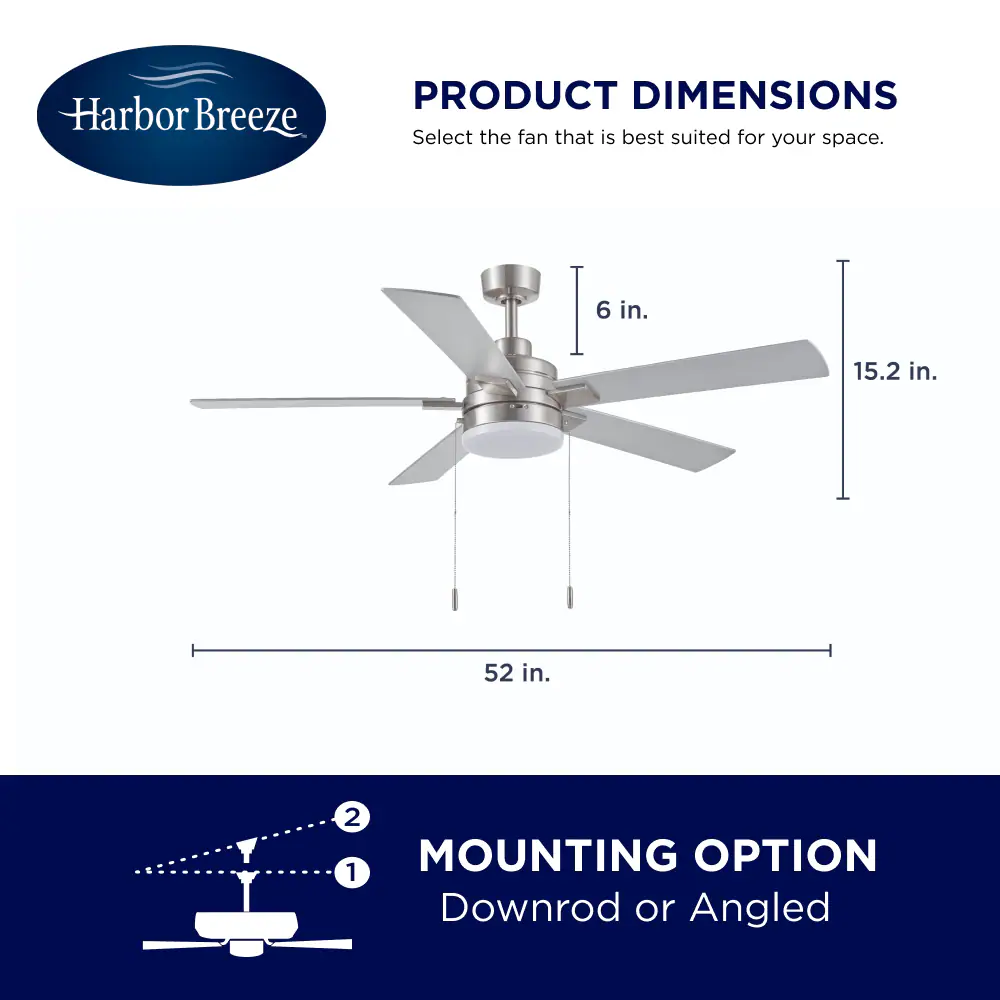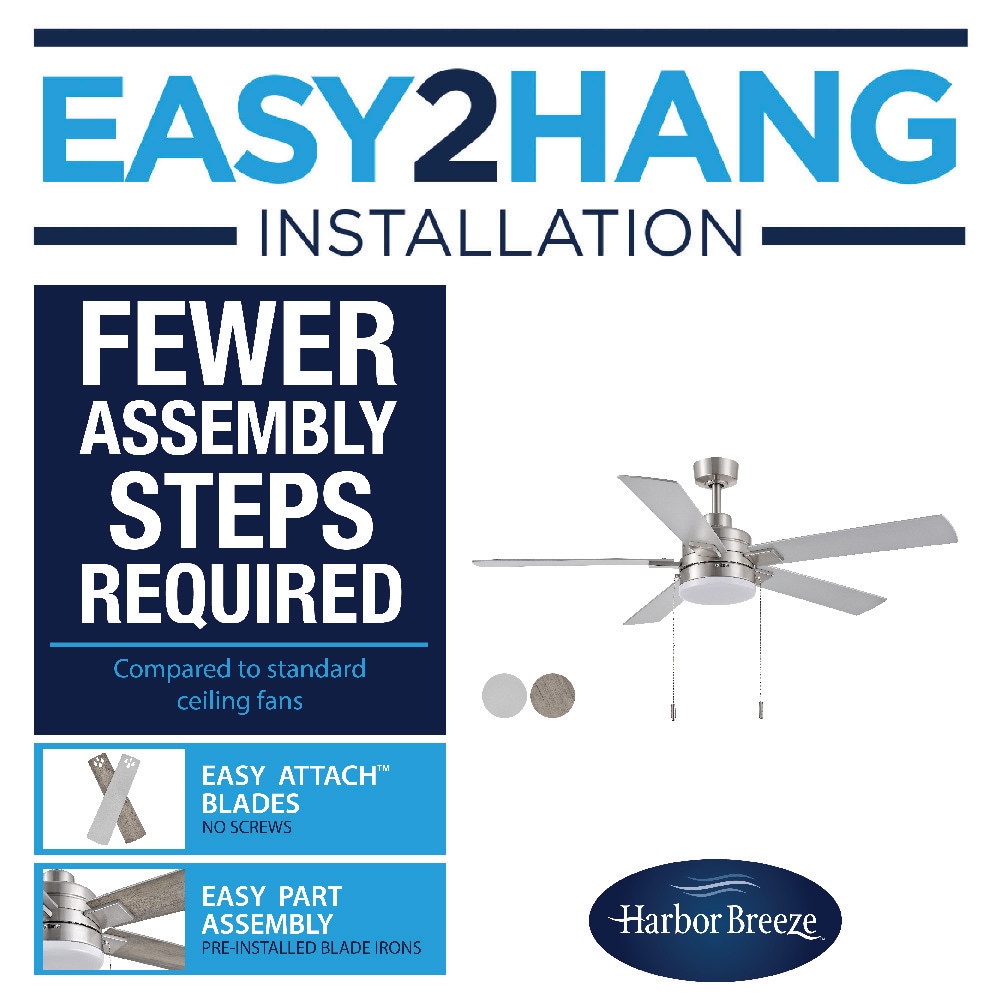 The Harbor Breeze Wrightsville is a 52-inch white pull-chain ceiling fan with integrated LED light. The 5 reversible blades are designed with easy-to-attach blades for Easy2Hang installation. It’s the perfect size for any indoor room up to 400-sqft. With its three-speed reversible motor, it will provide comforting air circulation year-round. Harbor Breeze ceiling fans provide style, function, and illumination to help make your house a home.