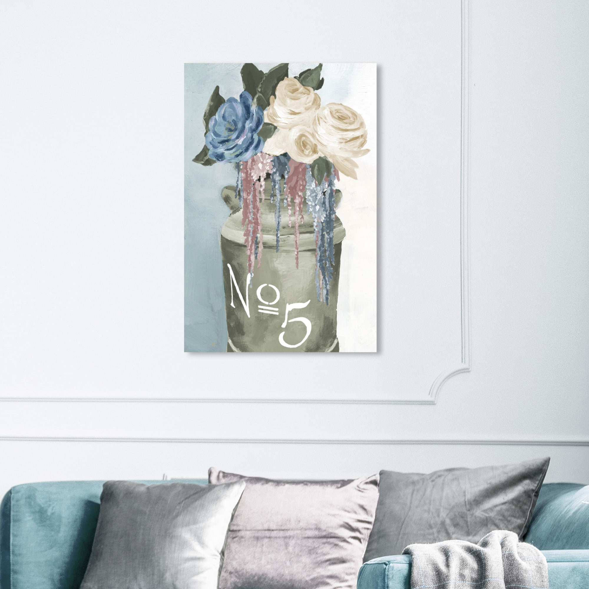 Wynwood Studio ‘Big Flower Jar’ Floral and Botanical Wall Art Canvas Print – Green, Blue, 24″ x 36″