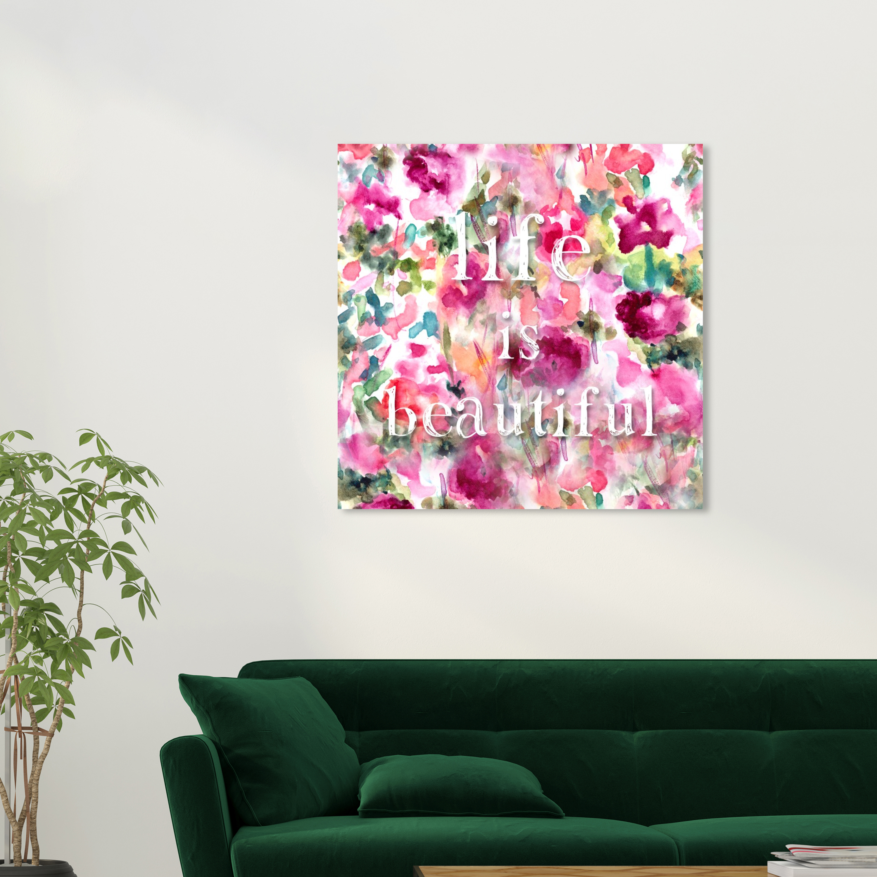 Wynwood Studio Canvas Life is Beautiful Floral and Botanical Florals Wall Art Canvas Print Pink Dark Pink 30×30