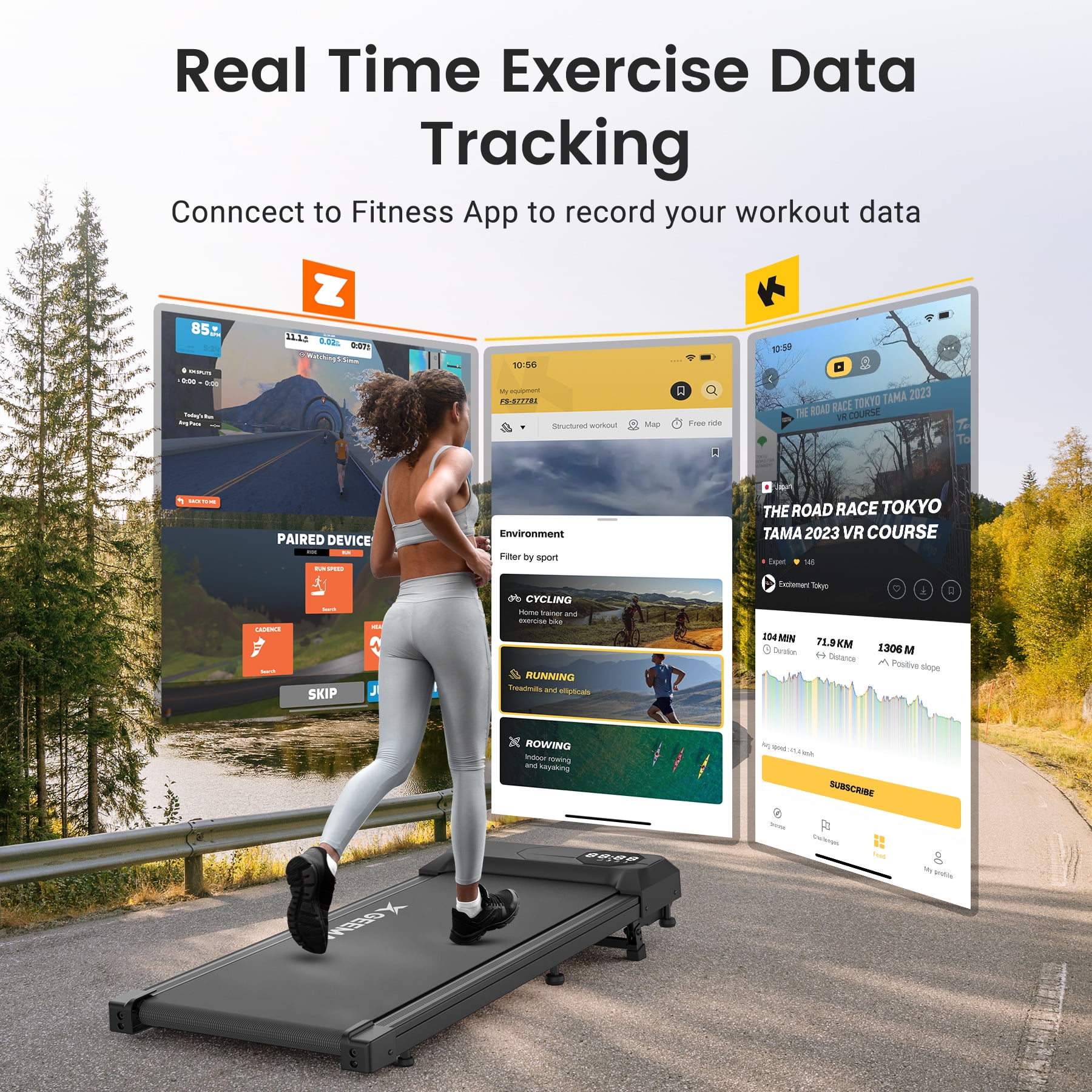X GEEMAX Walking Pad with 10% Incline, Under Desk Treadmill with ZWIFT KINOMAP APP, 2.5HP Portable Walking Treadmill Quiet for Home/Office, 300lbs Weight Capacity, Remote Control LED Display